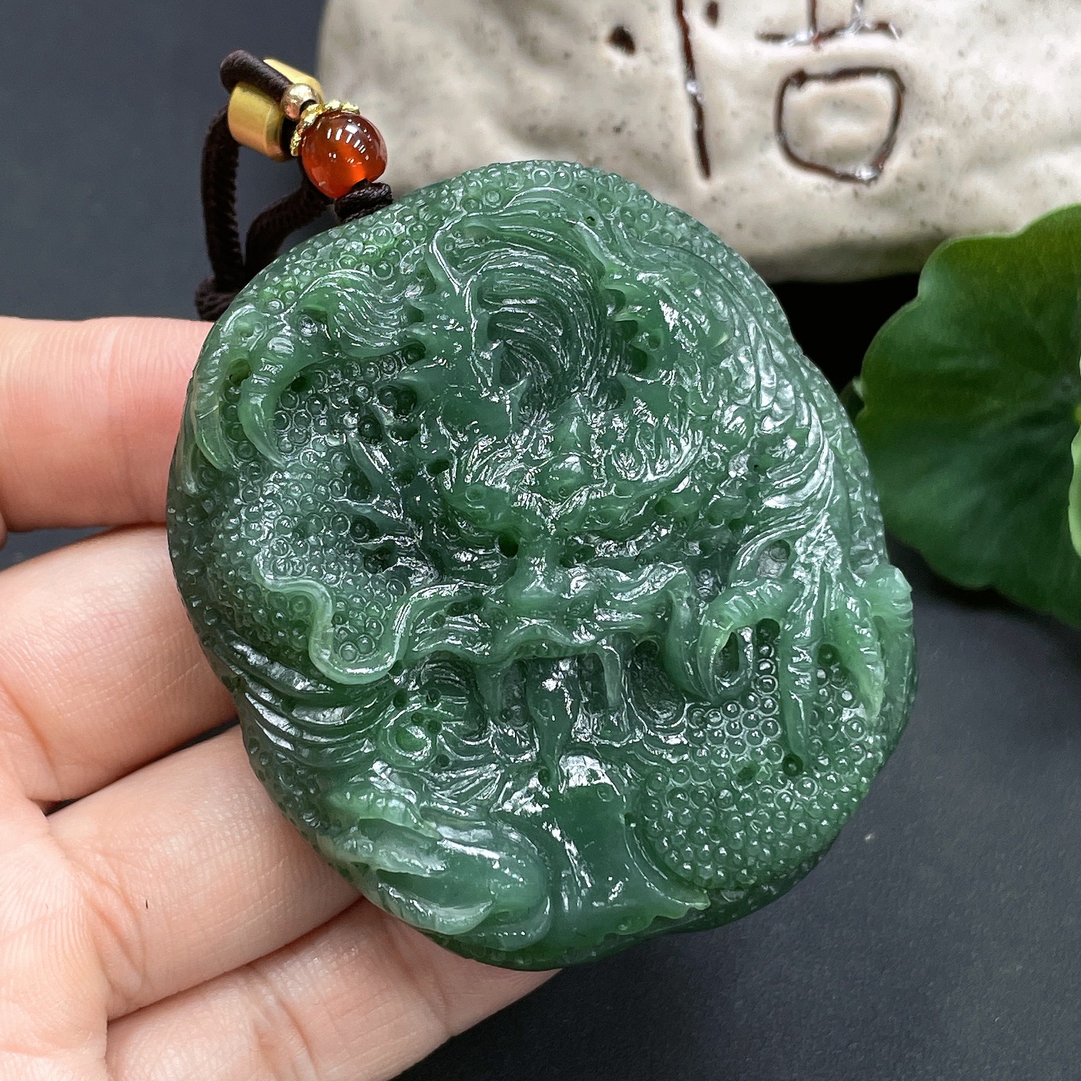 Trezaar - Hetian Jade Handheld Carving Dragon Total Weight (including rope) 95.3g