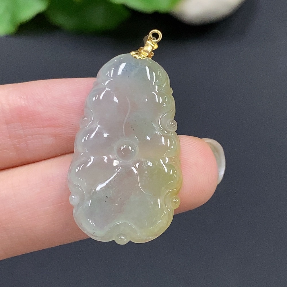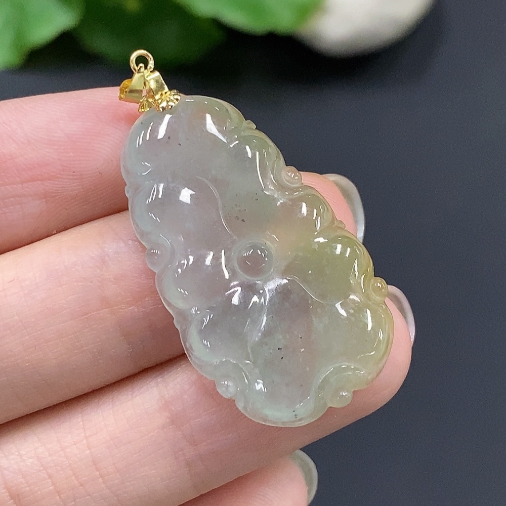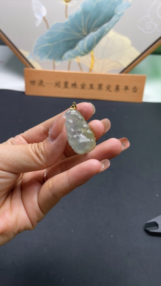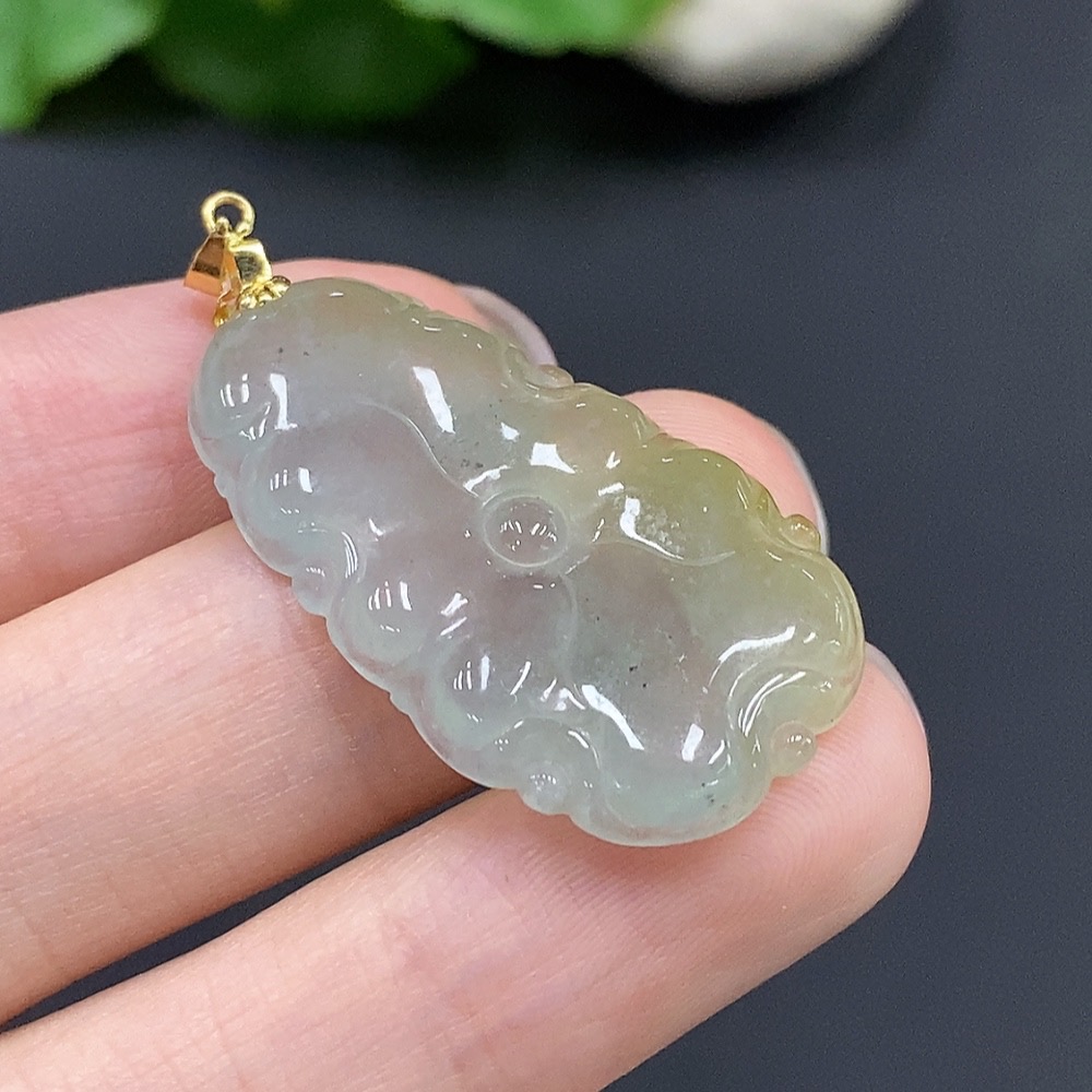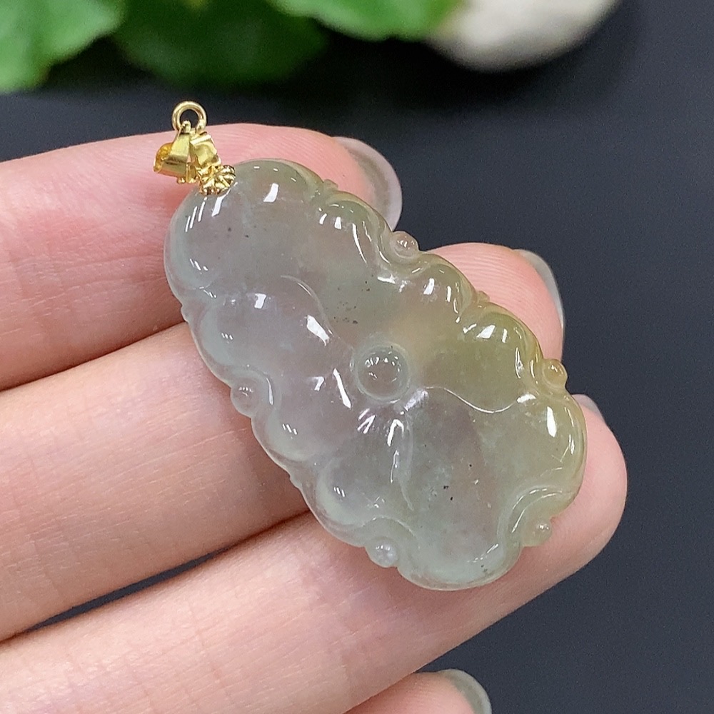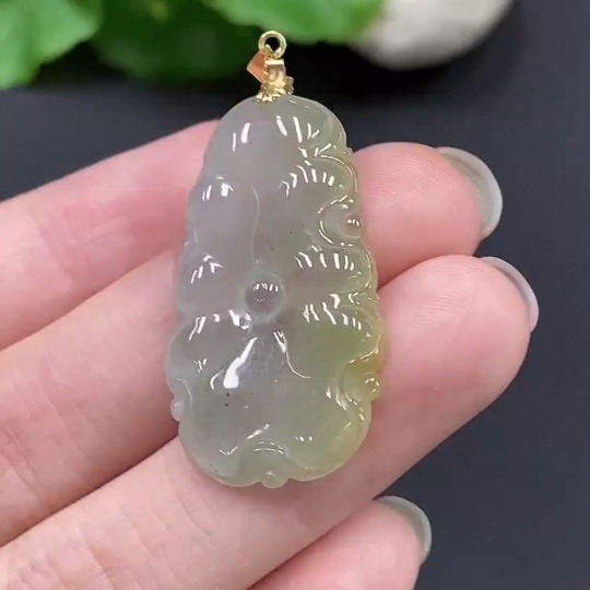 Jadeite Lotus Leaf Pendant with 18K Gold Clasp, Total Weight 5.091g