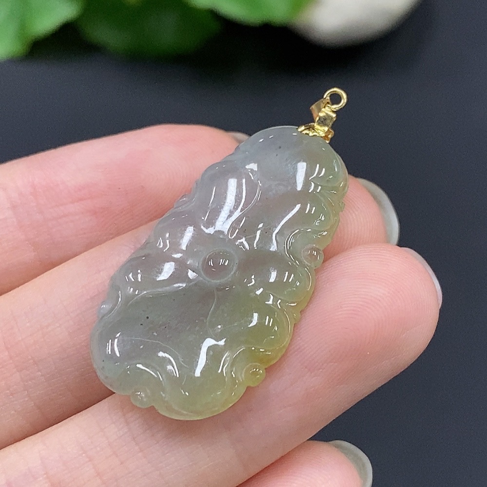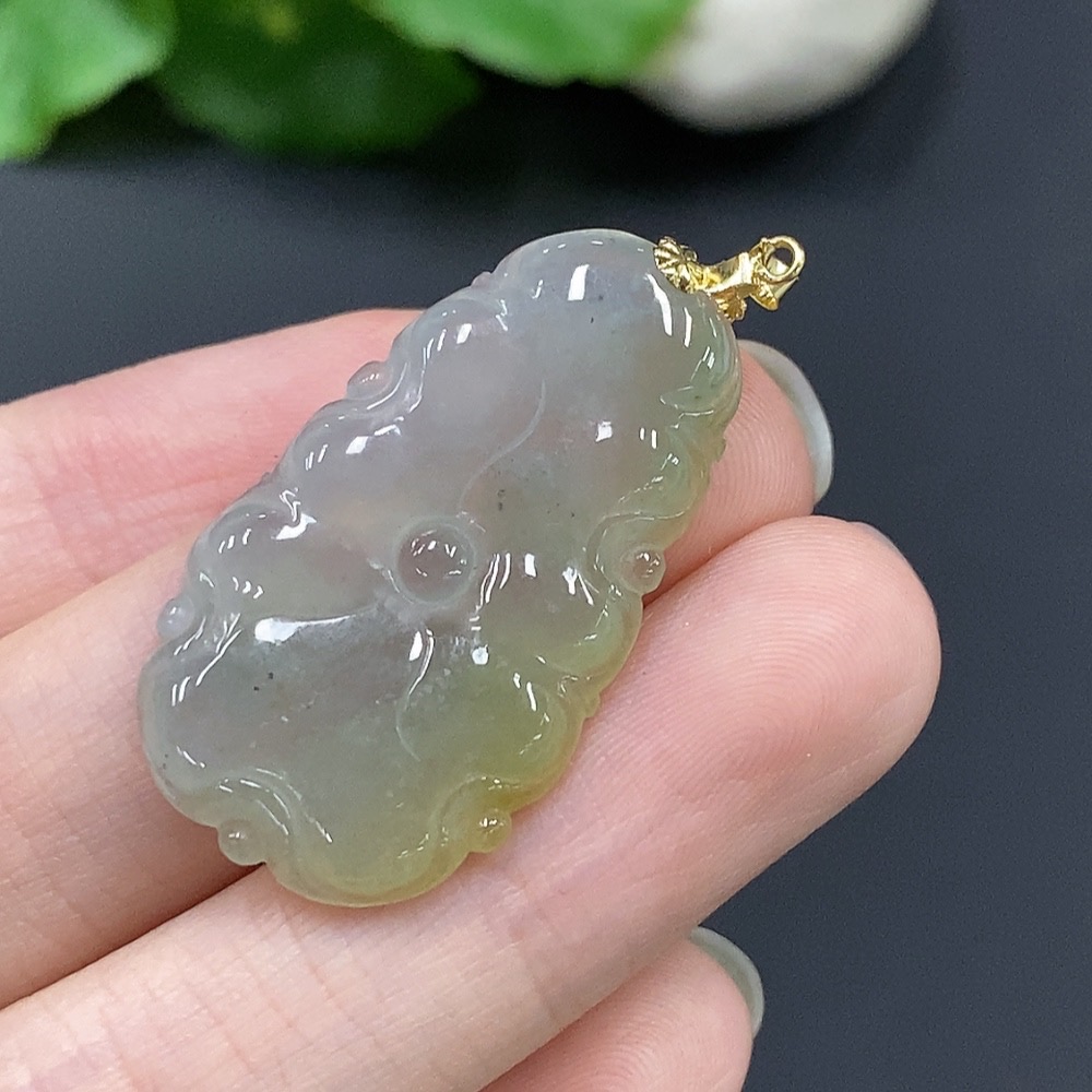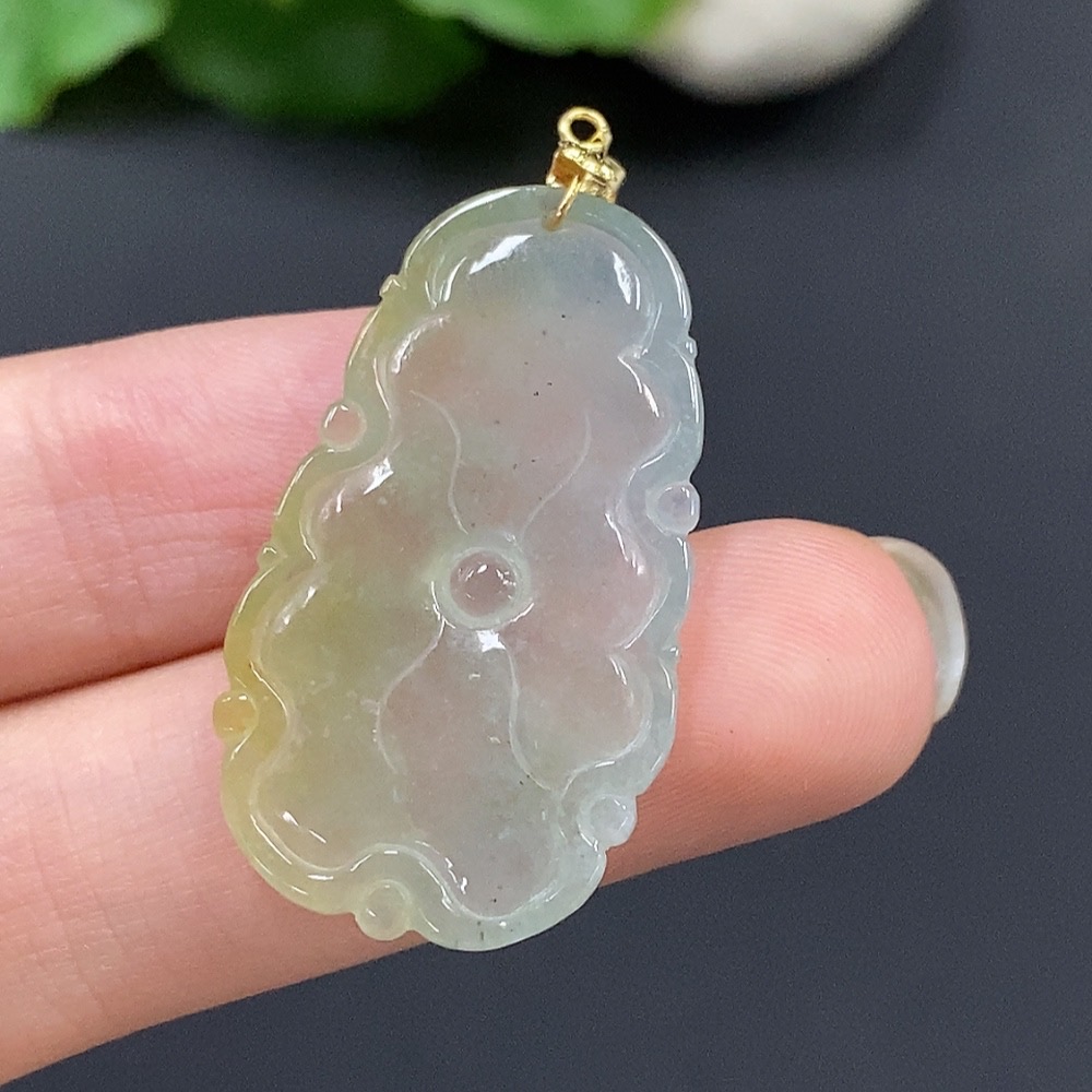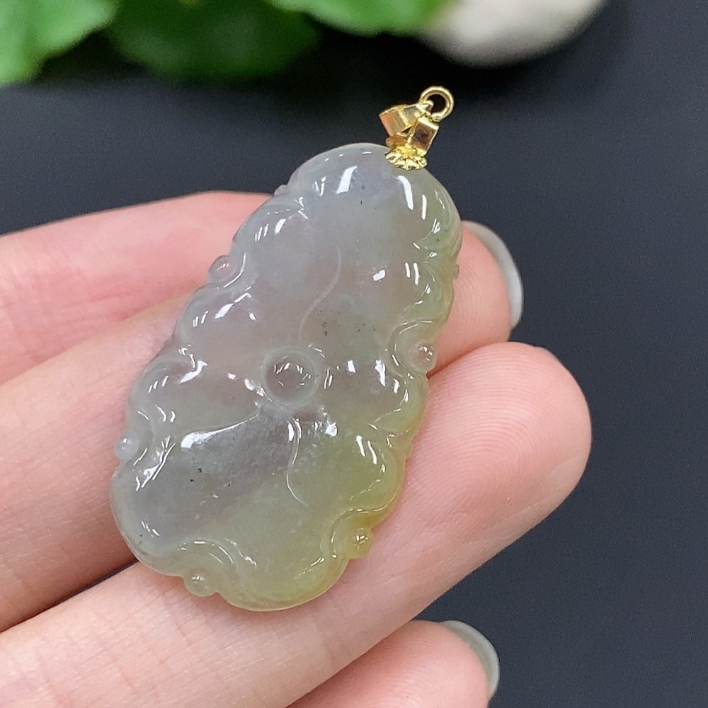 Jadeite Lotus Leaf Pendant with 18K Gold Clasp, Total Weight 5.091g