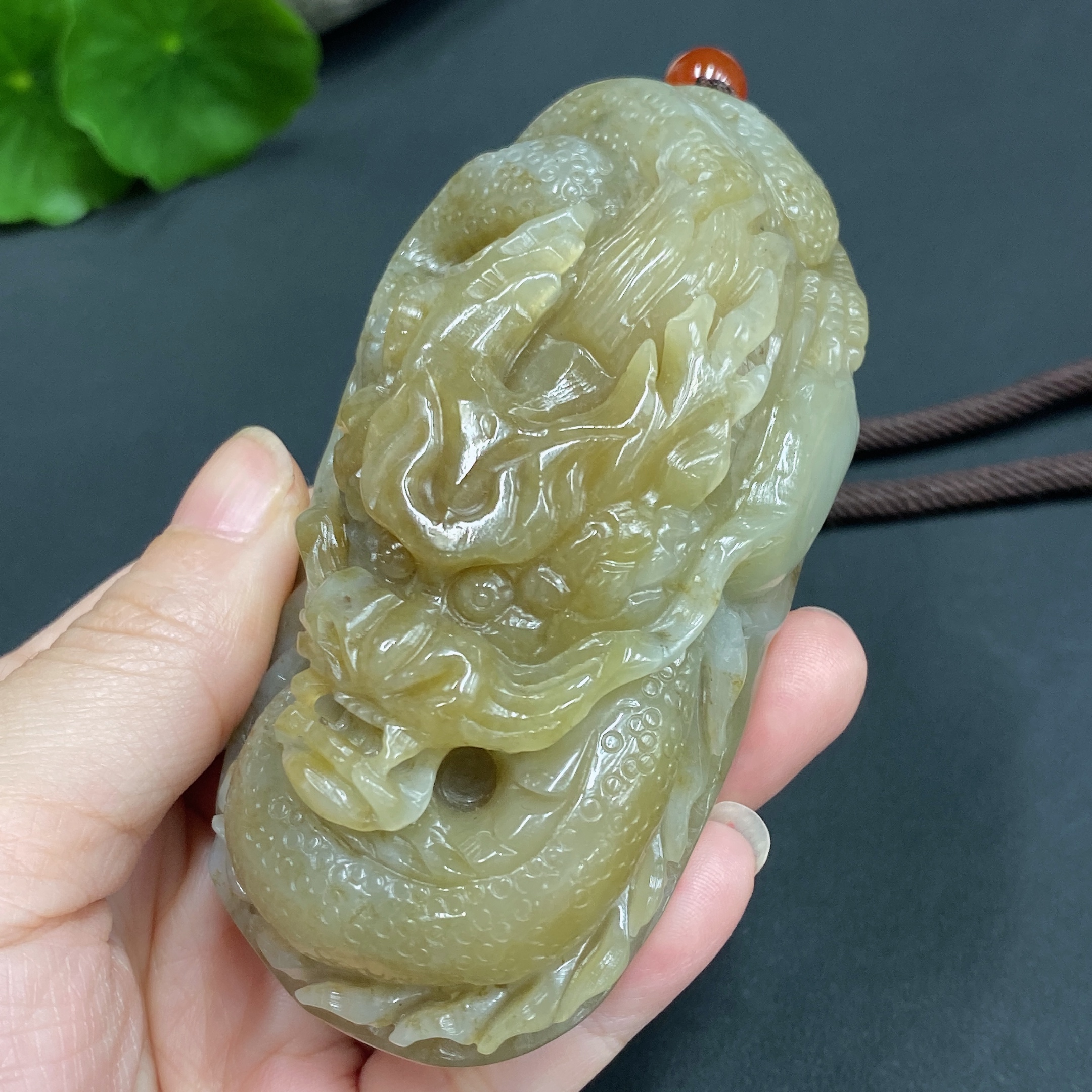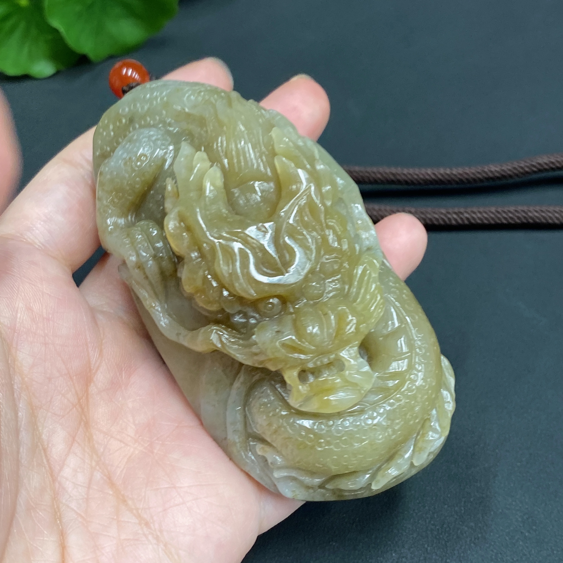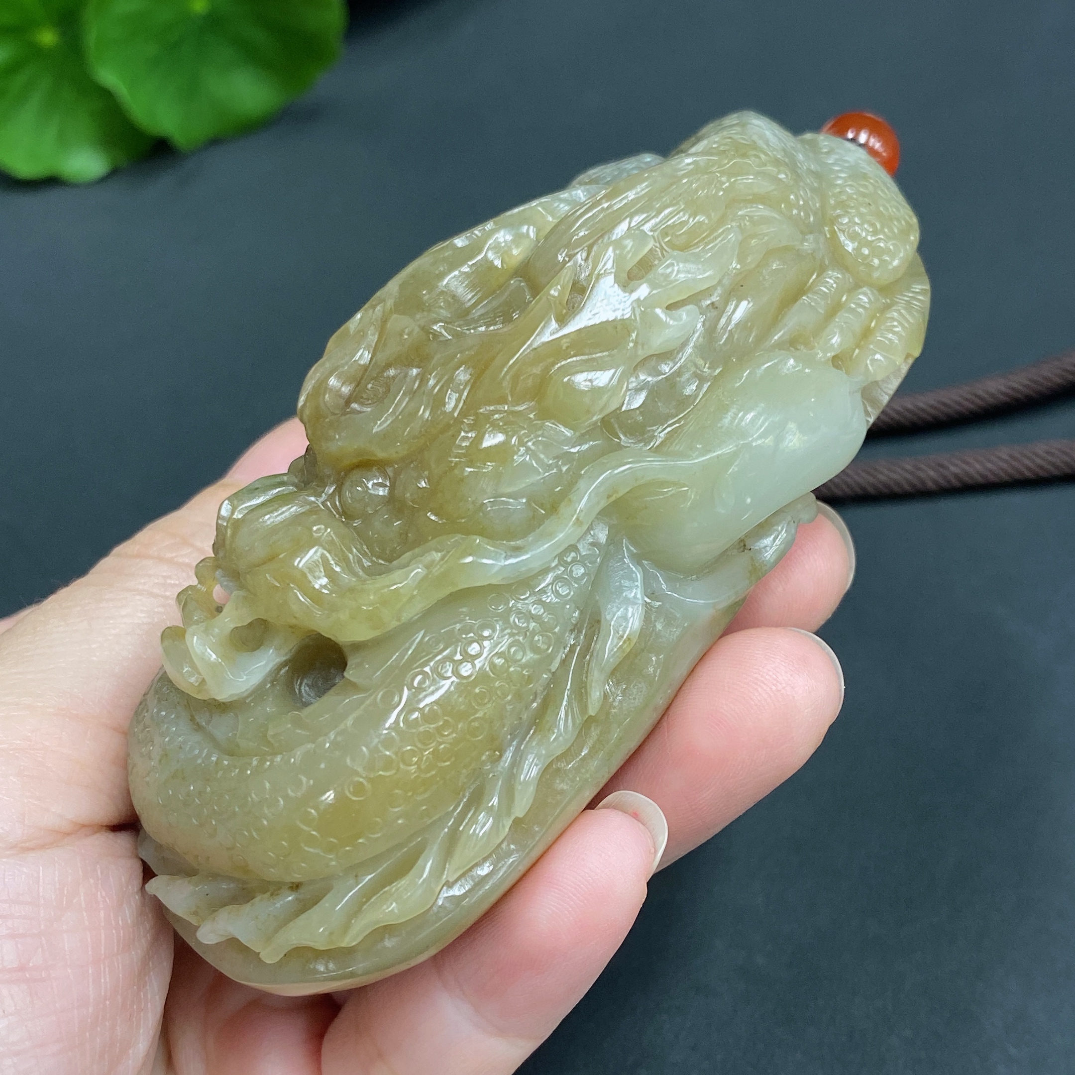 Hetian Jade Handheld Carving Dragon Total Weight (with rope) 189g