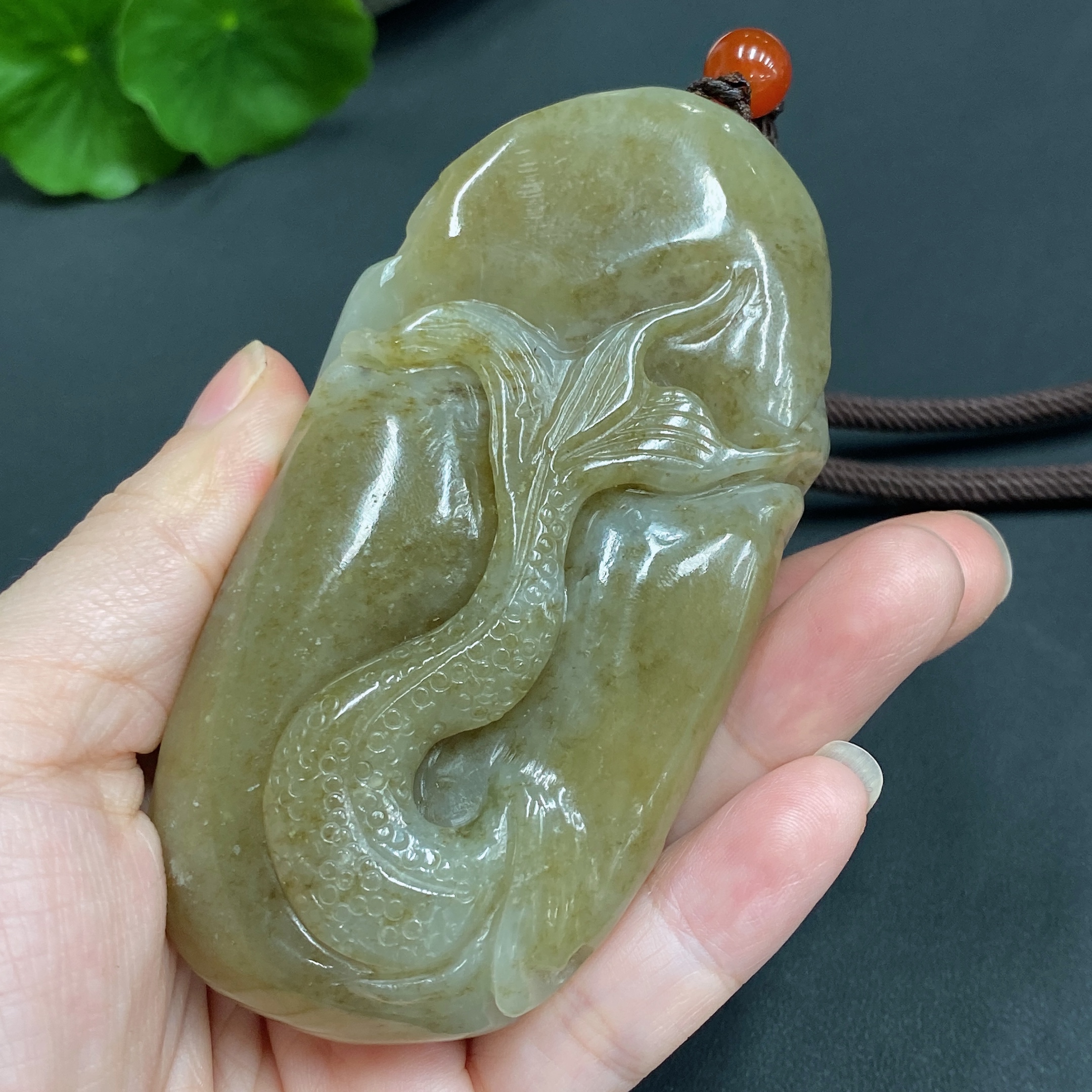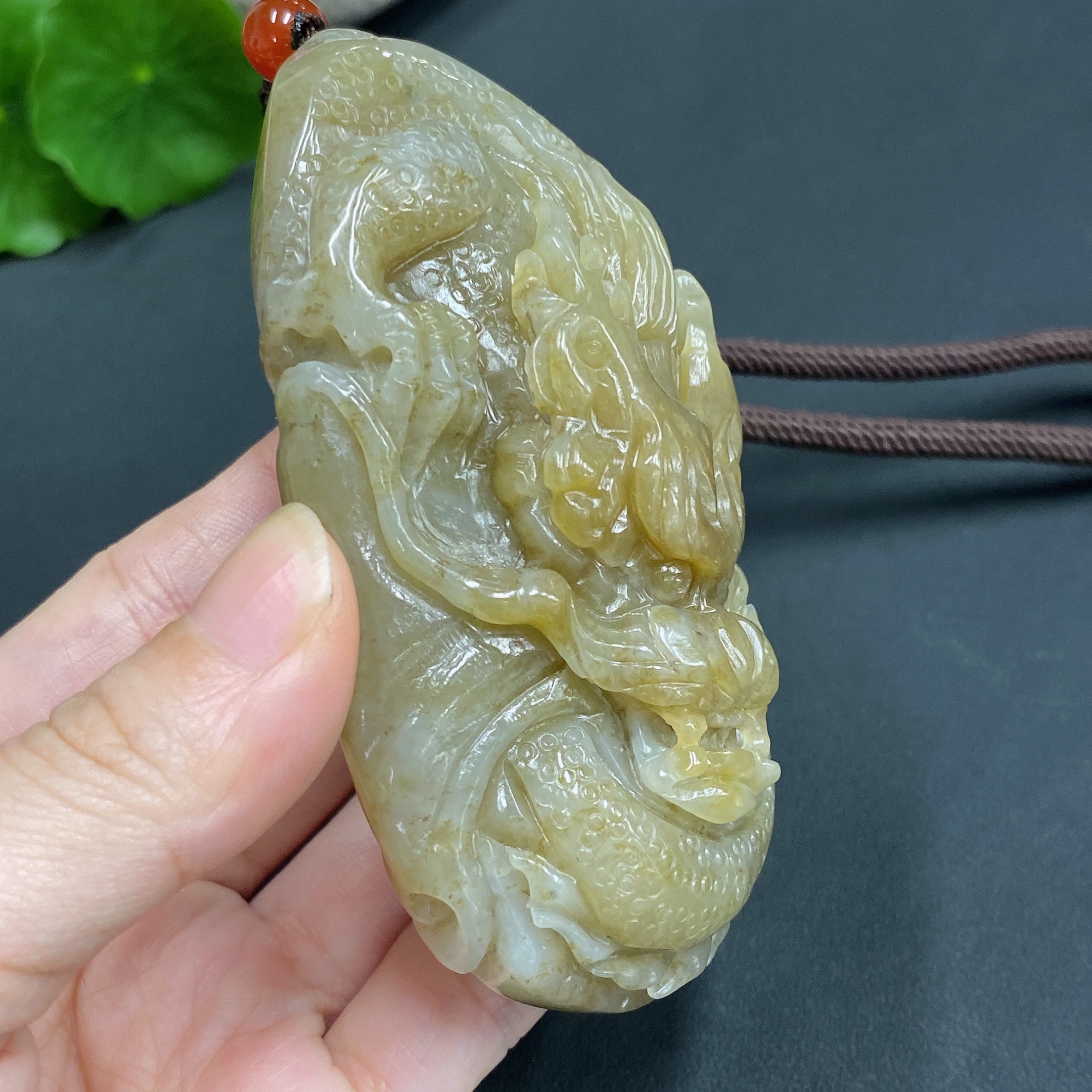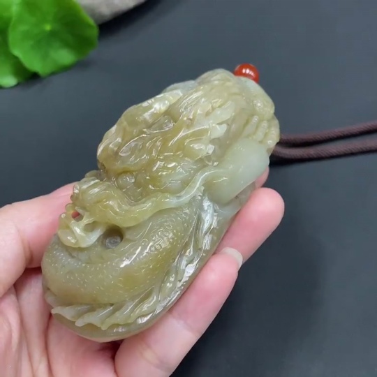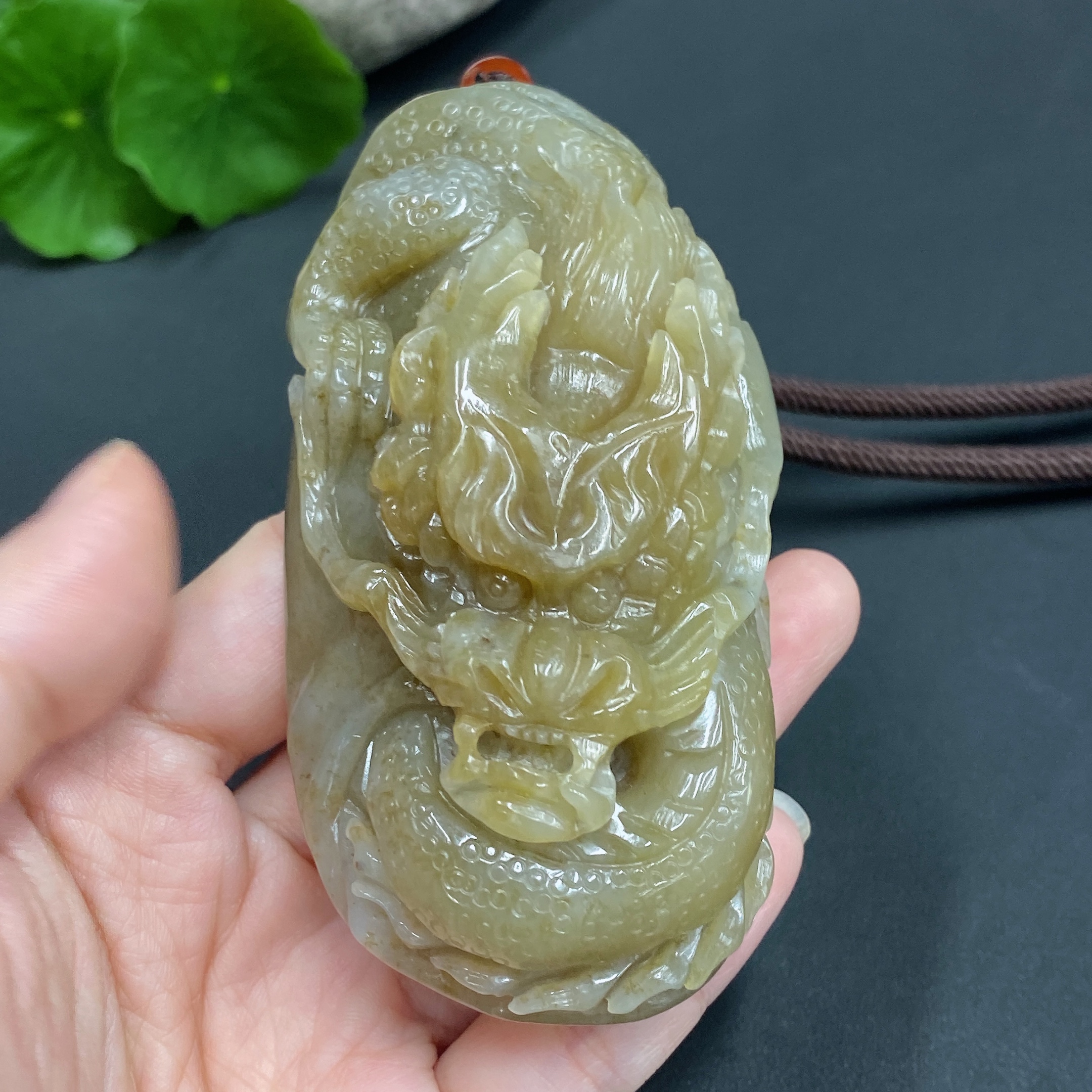 Hetian Jade Handheld Carving Dragon Total Weight (with rope) 189g