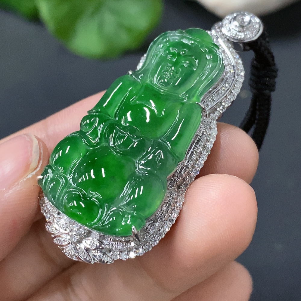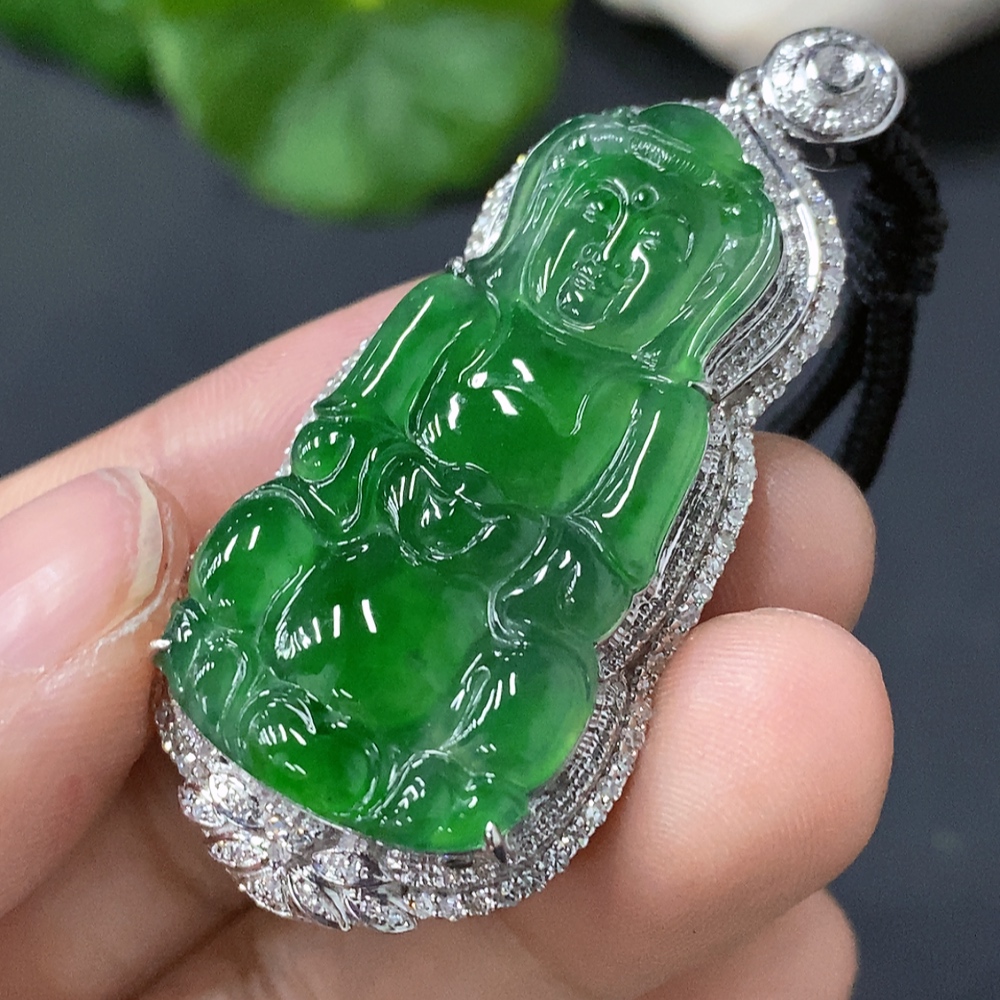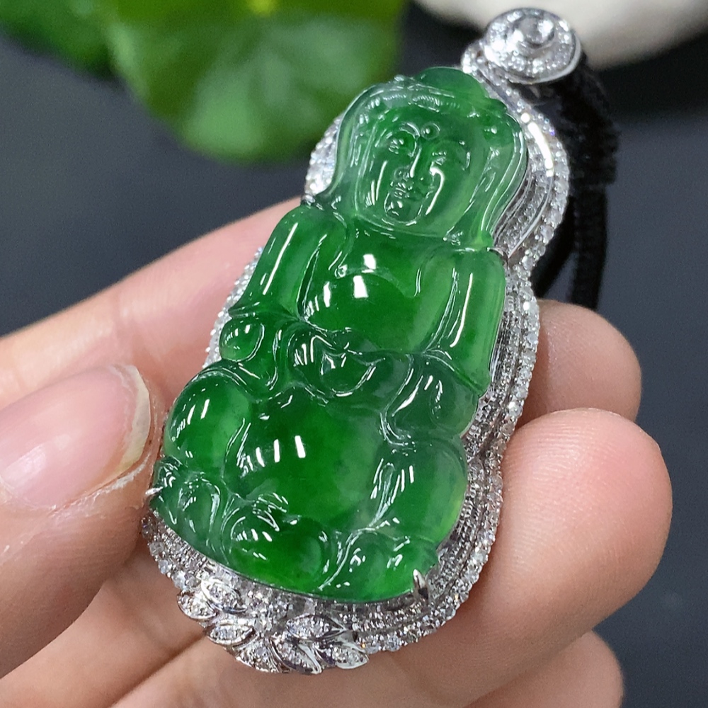 Jadeite Guanyin Inlaid Pendant 18k Gold Inlaid Total Weight Approx. 15.7g (Including Cord)