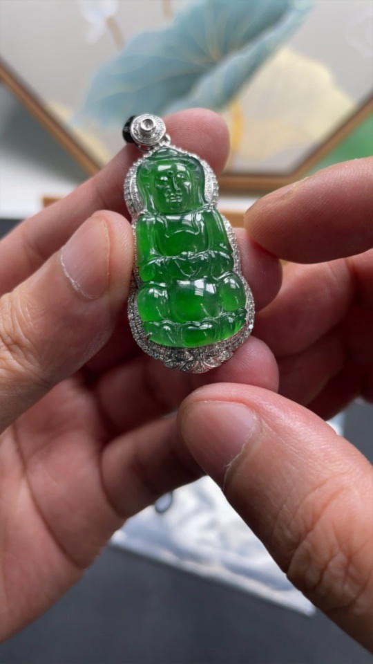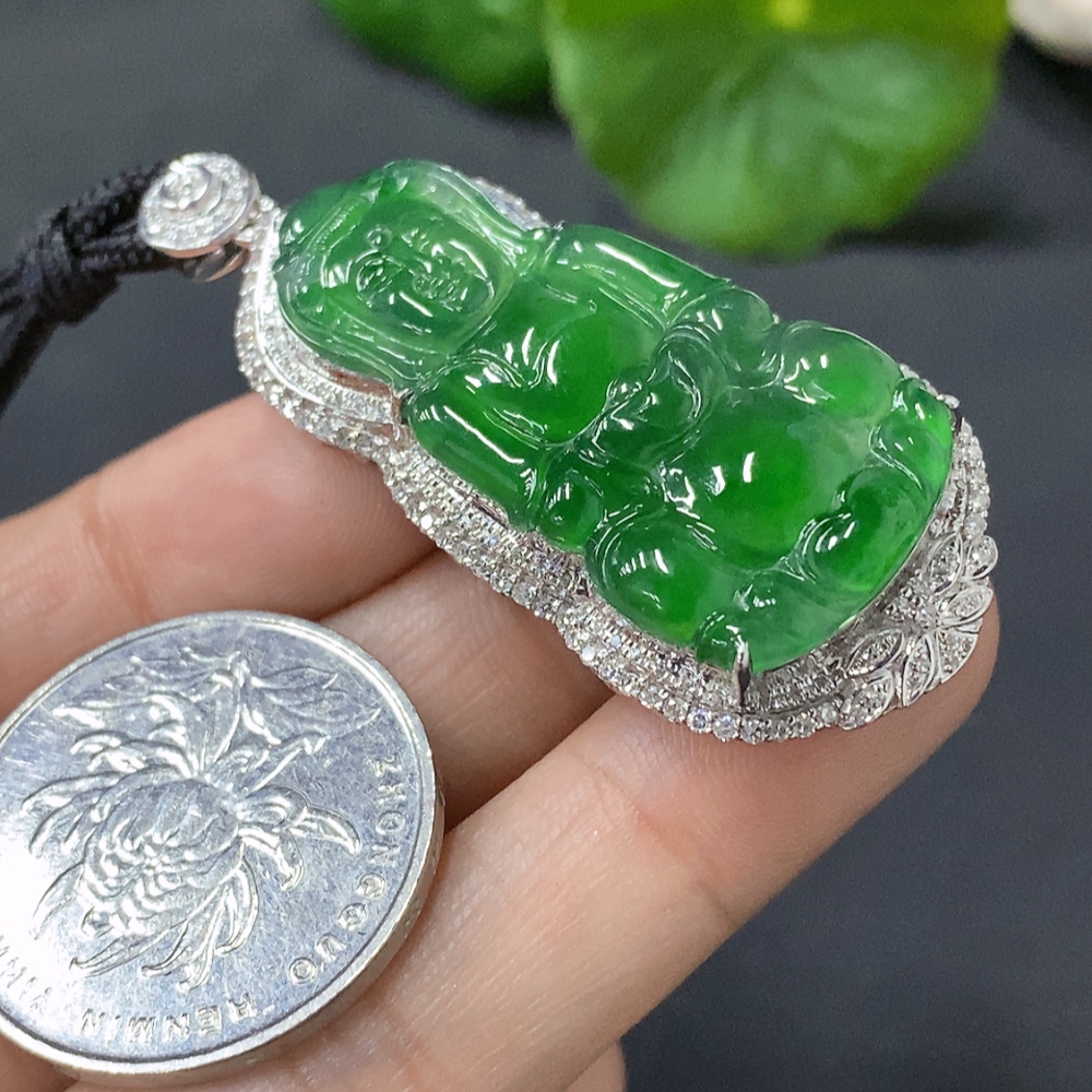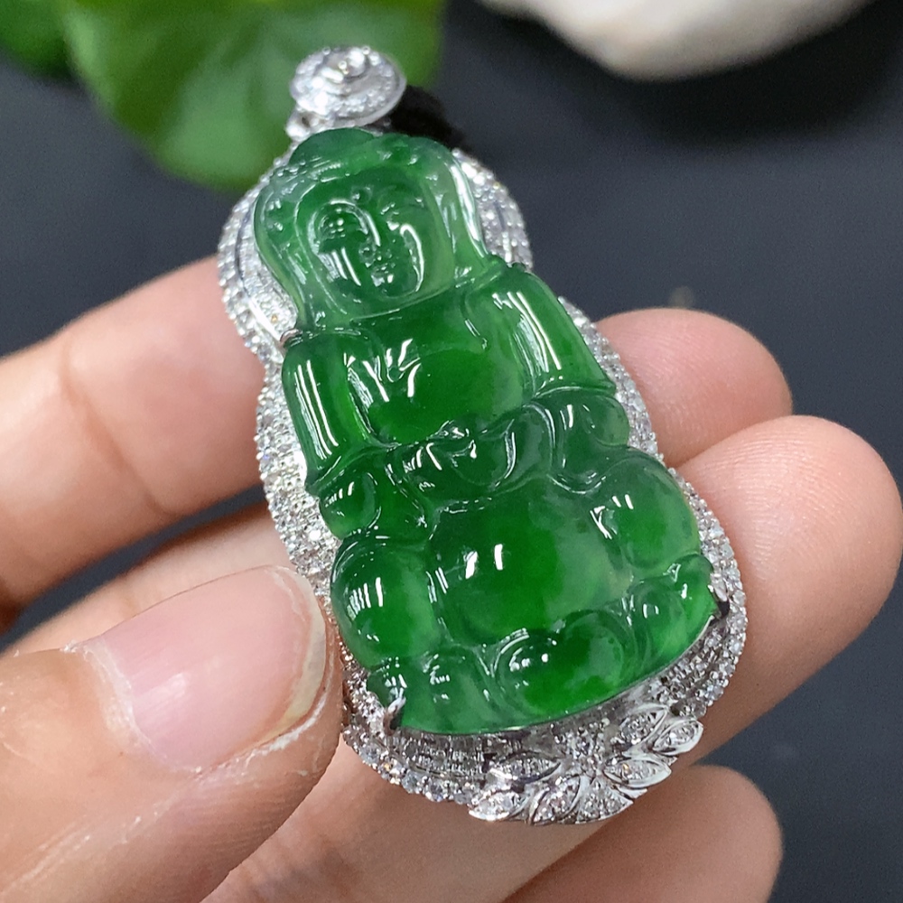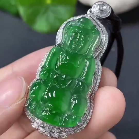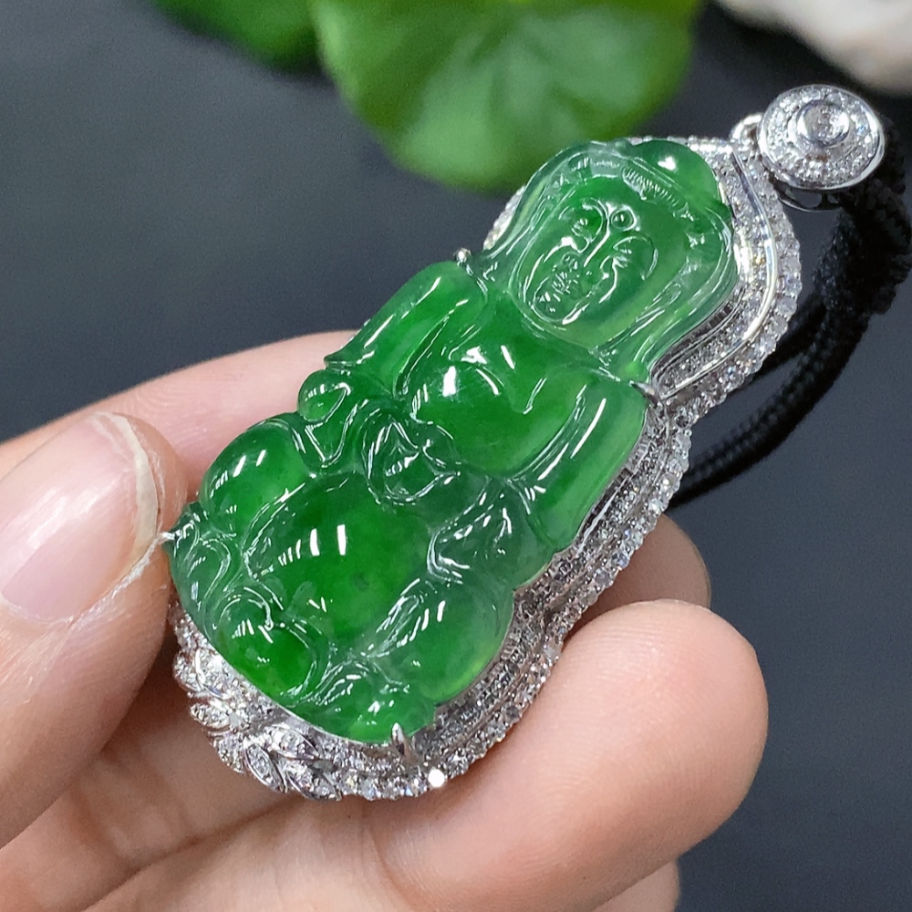 Jadeite Guanyin Inlaid Pendant 18k Gold Inlaid Total Weight Approx. 15.7g (Including Cord)