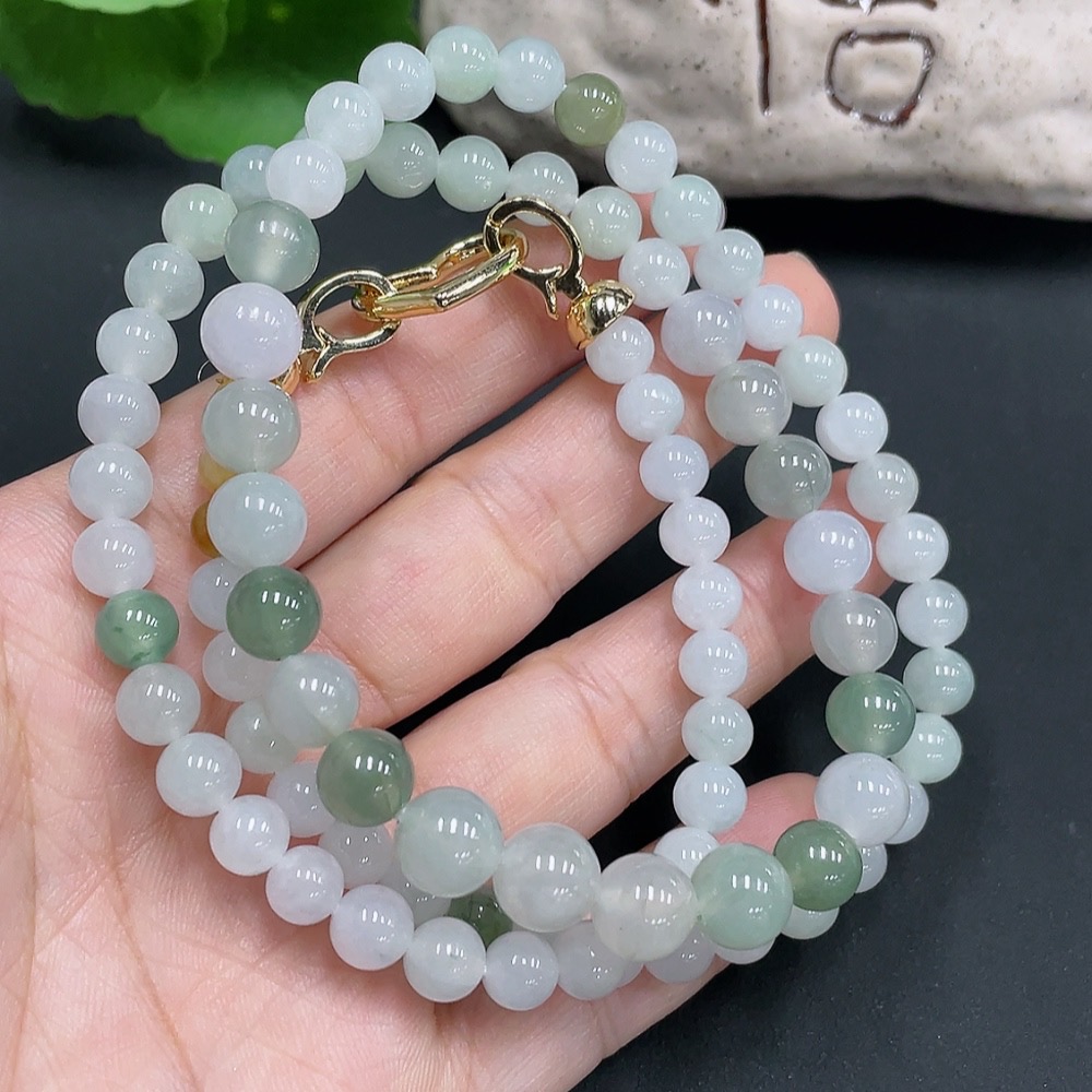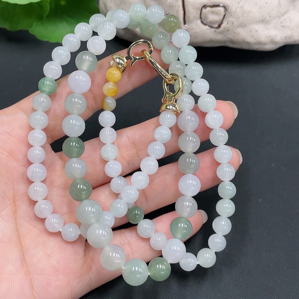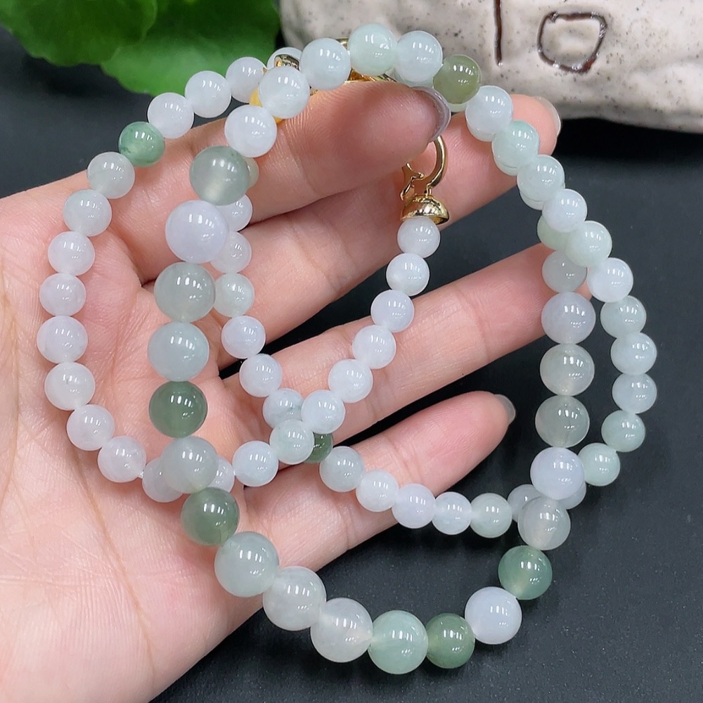 Jadeite Bead Necklace Approx. 7mm Diameter Undetermined Color Origin