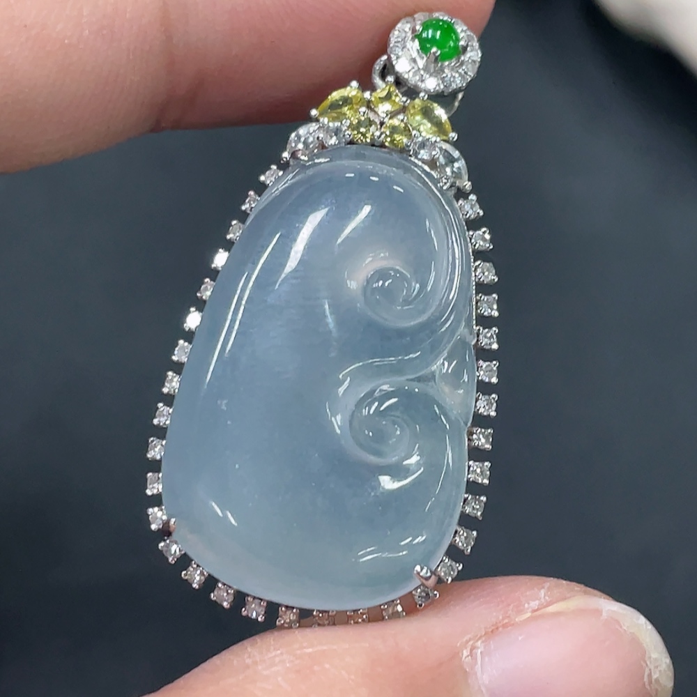 Jadeite Ruyi Inlay Piece 18k Gold Inlaid Total Weight Approx. 6.93g