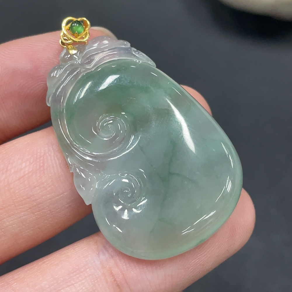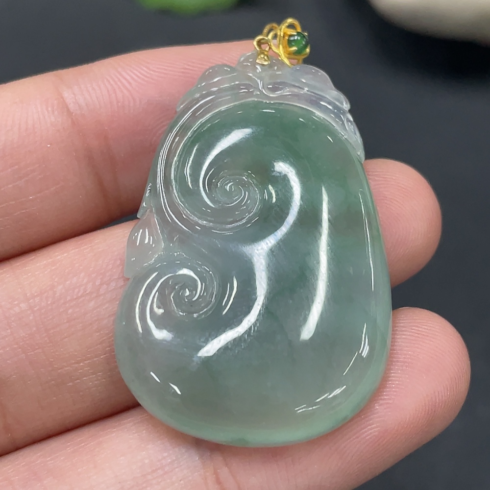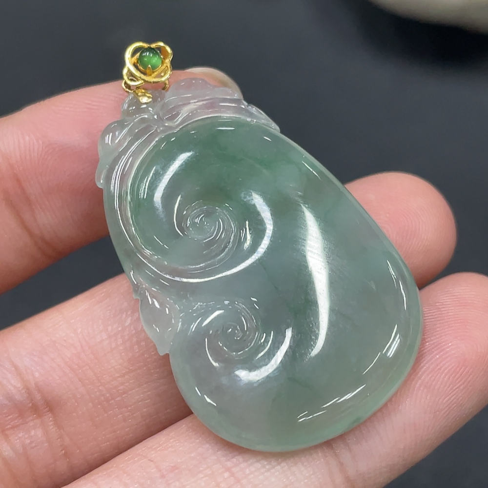 Jadeite Ruyi Pendant with 18k Bezel, Total Weight 8.681g