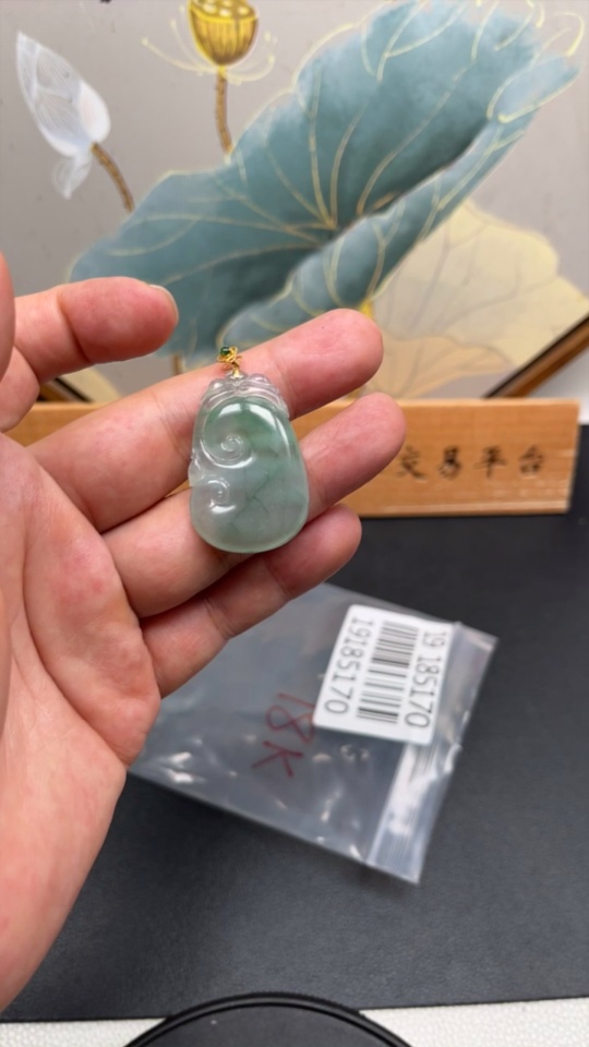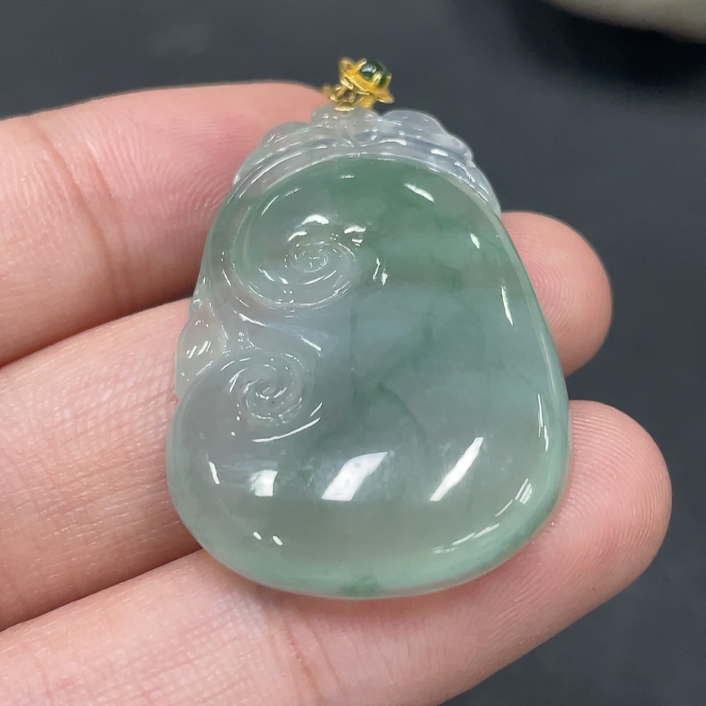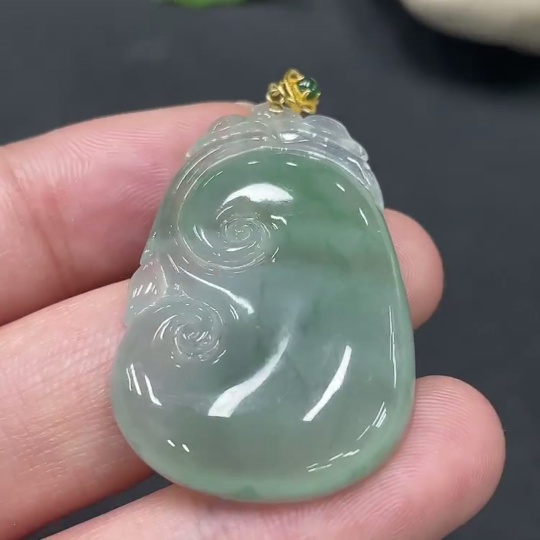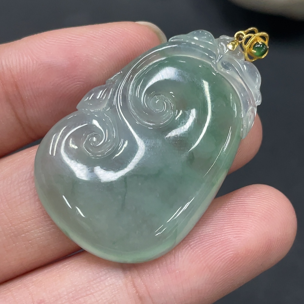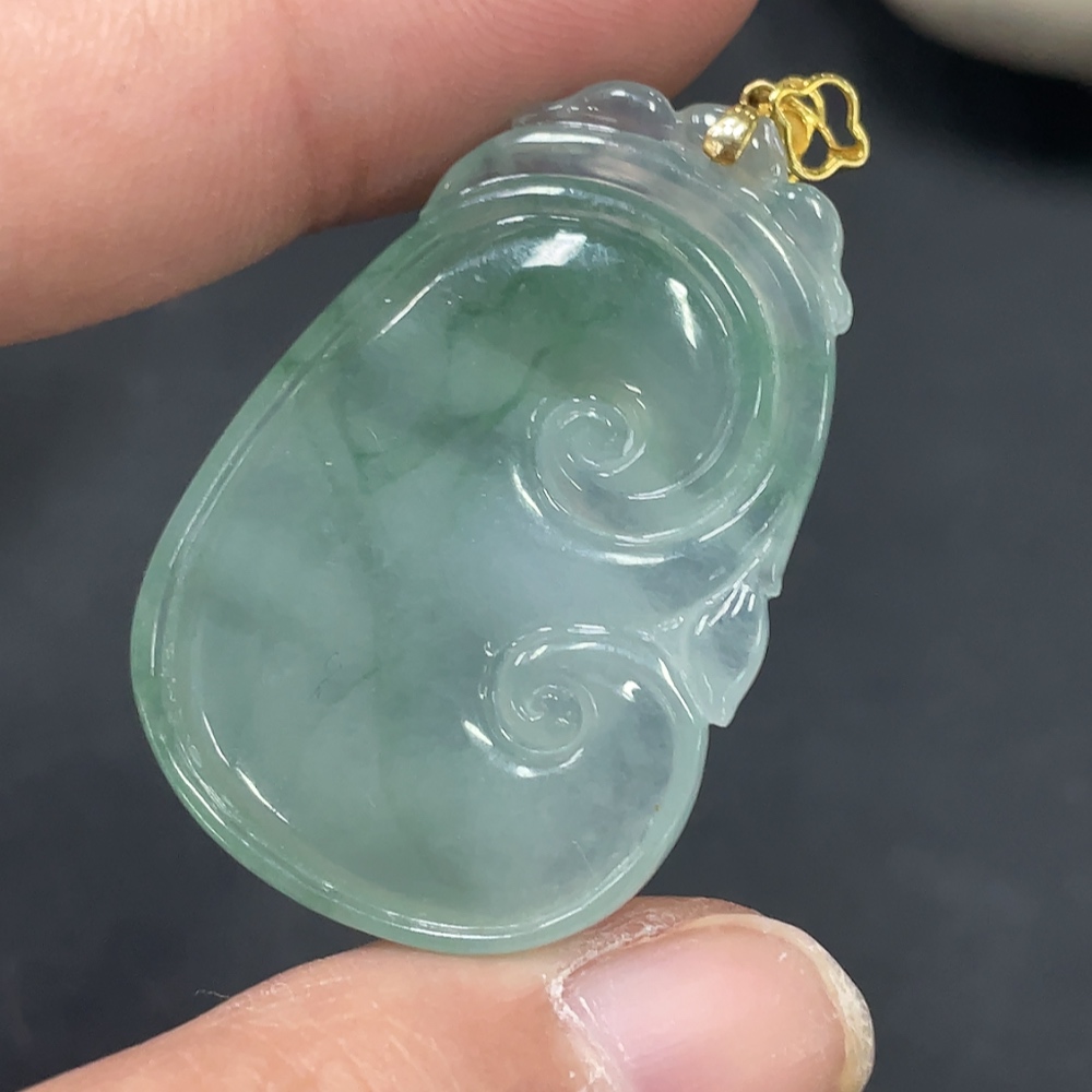 Jadeite Ruyi Pendant with 18k Bezel, Total Weight 8.681g