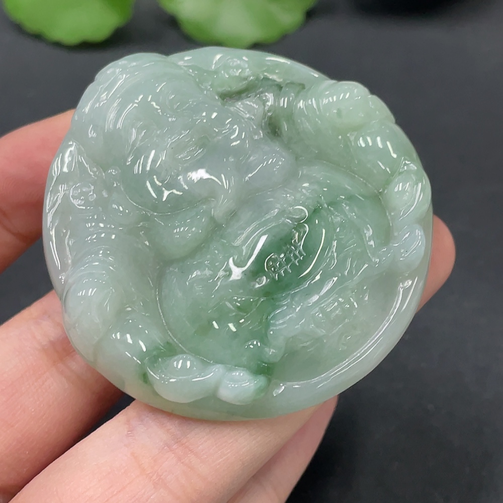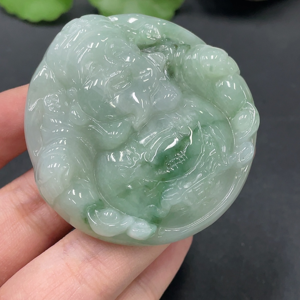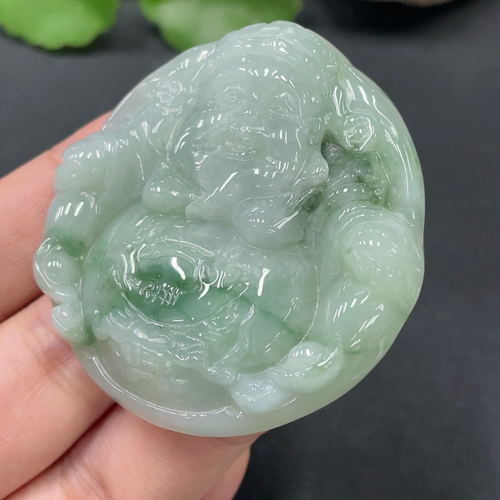 Jadeite Caishen Pendant Total Weight: 52.620g