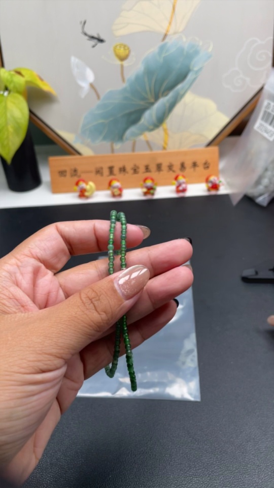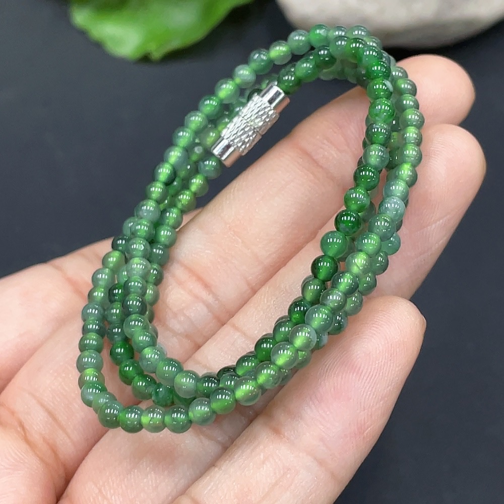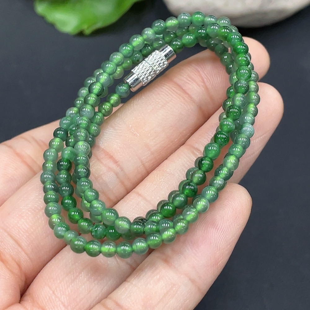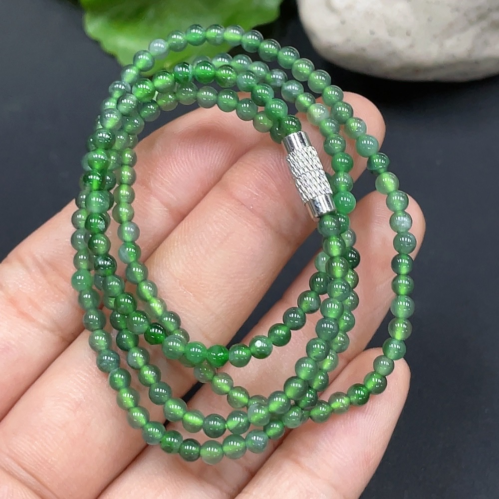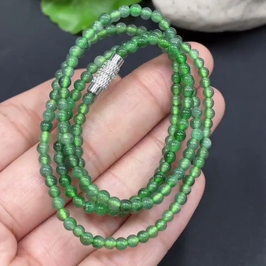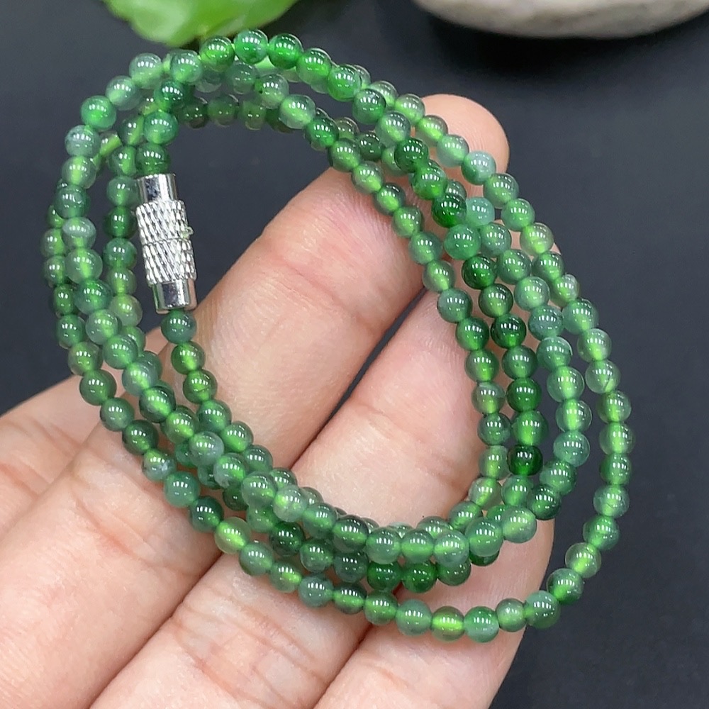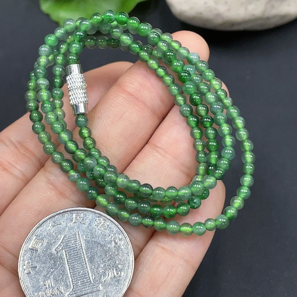 Jadeite Bead Necklace Approx. 3mm Non-Gold Setting Total Weight 8.651g