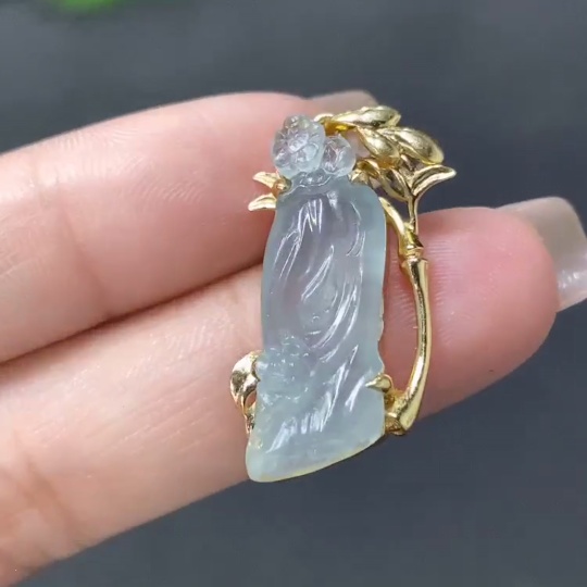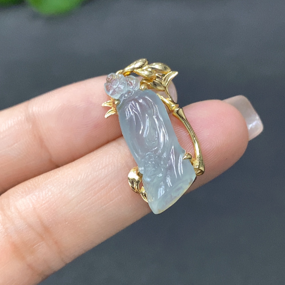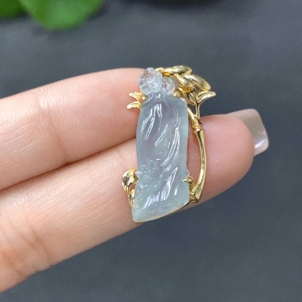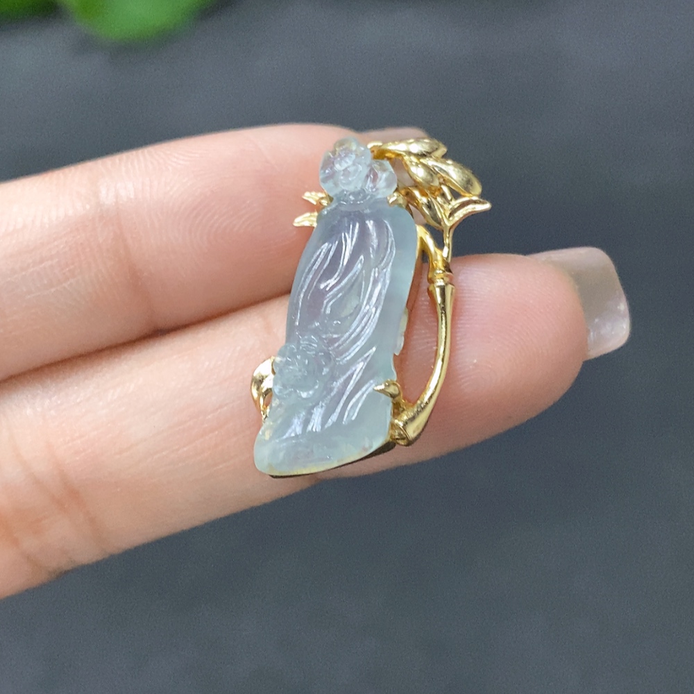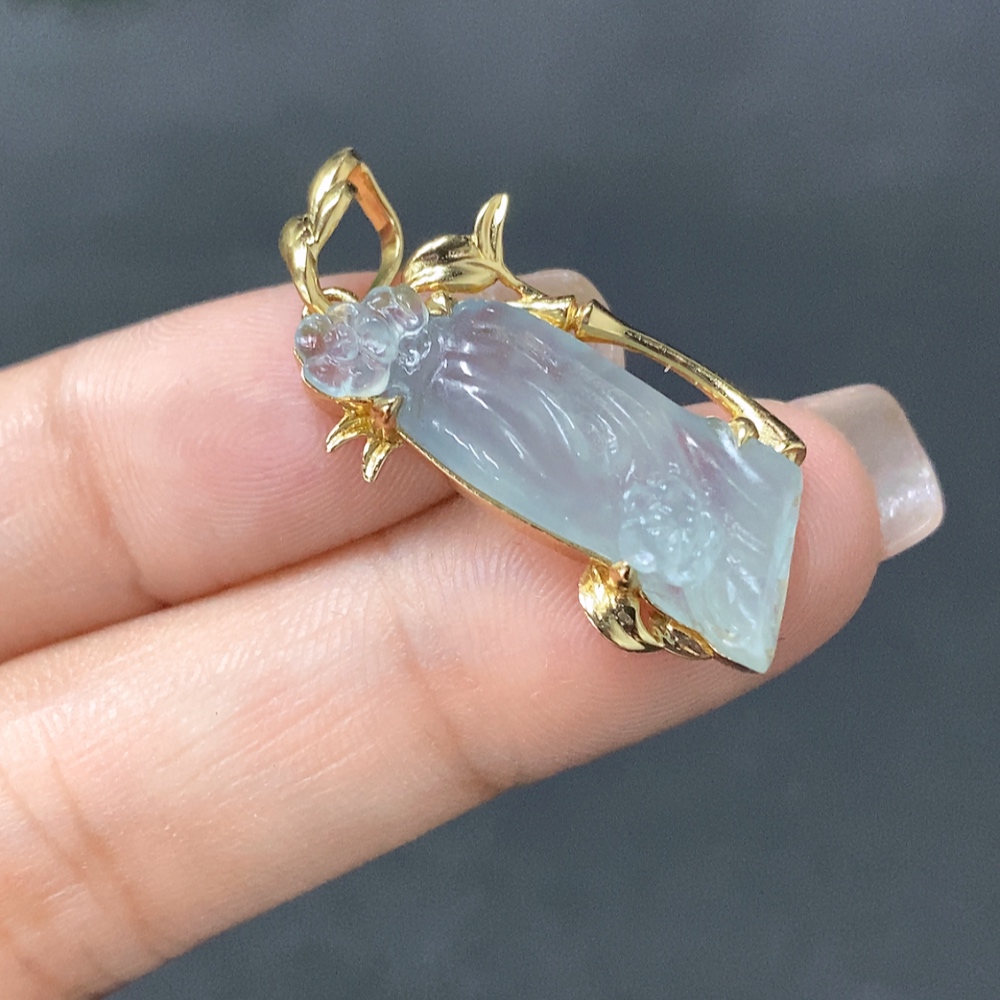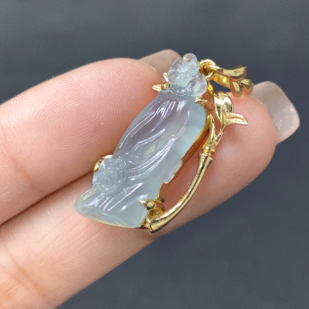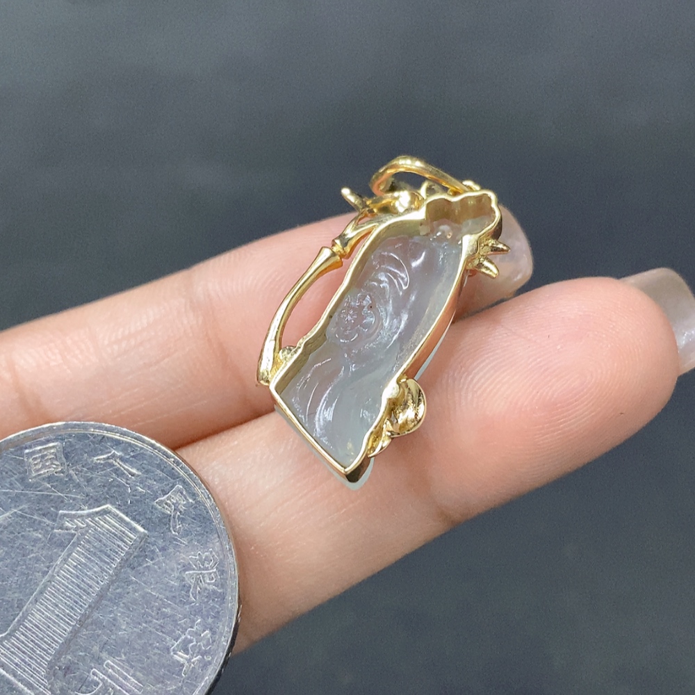 Jadeite Pendant with 18K Gold Setting, Total Weight Approx. 3.8g