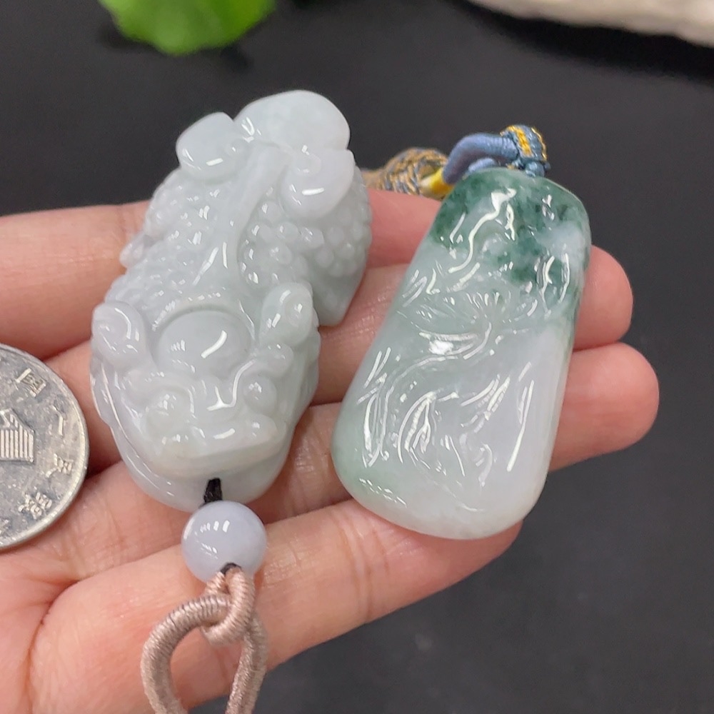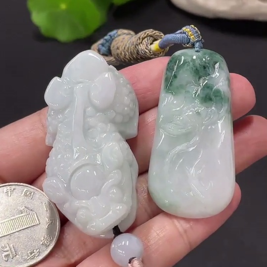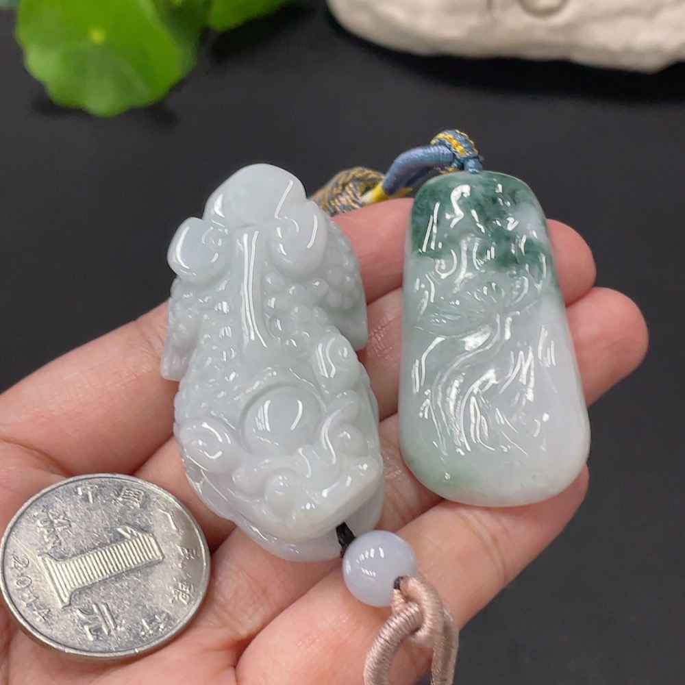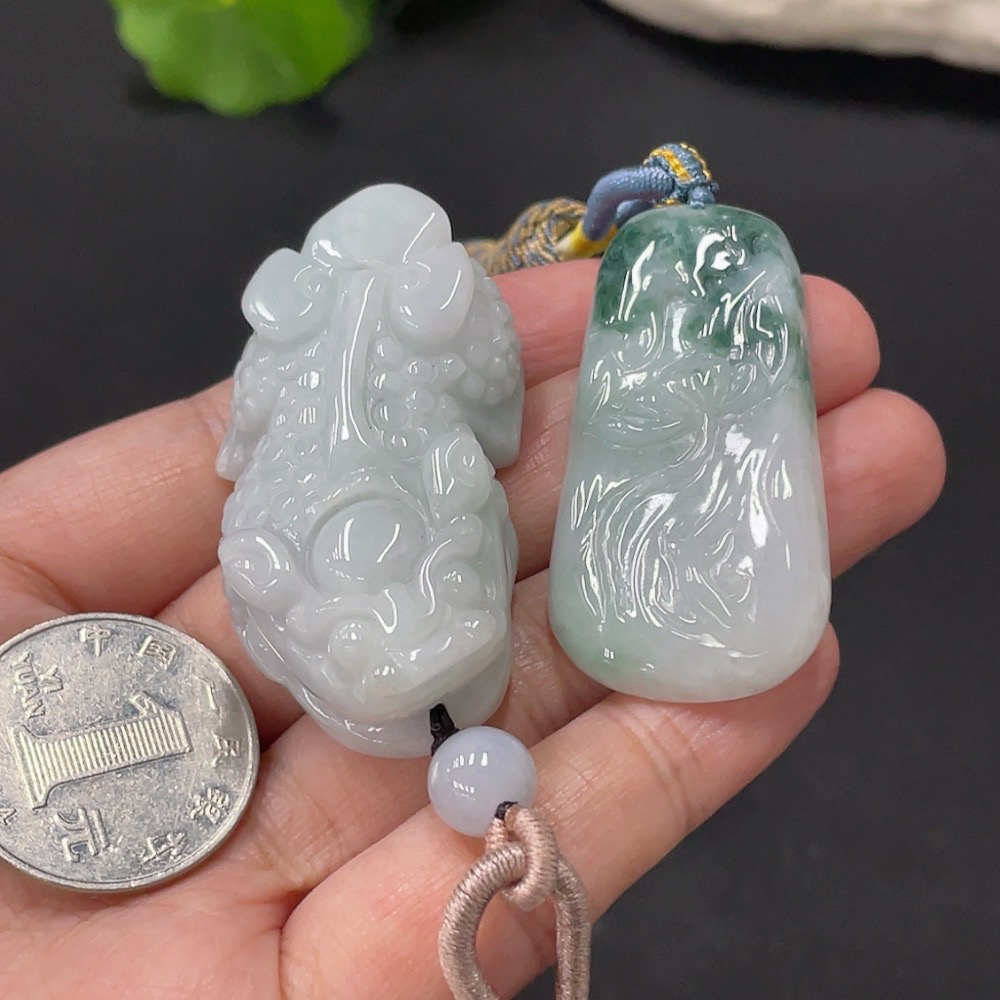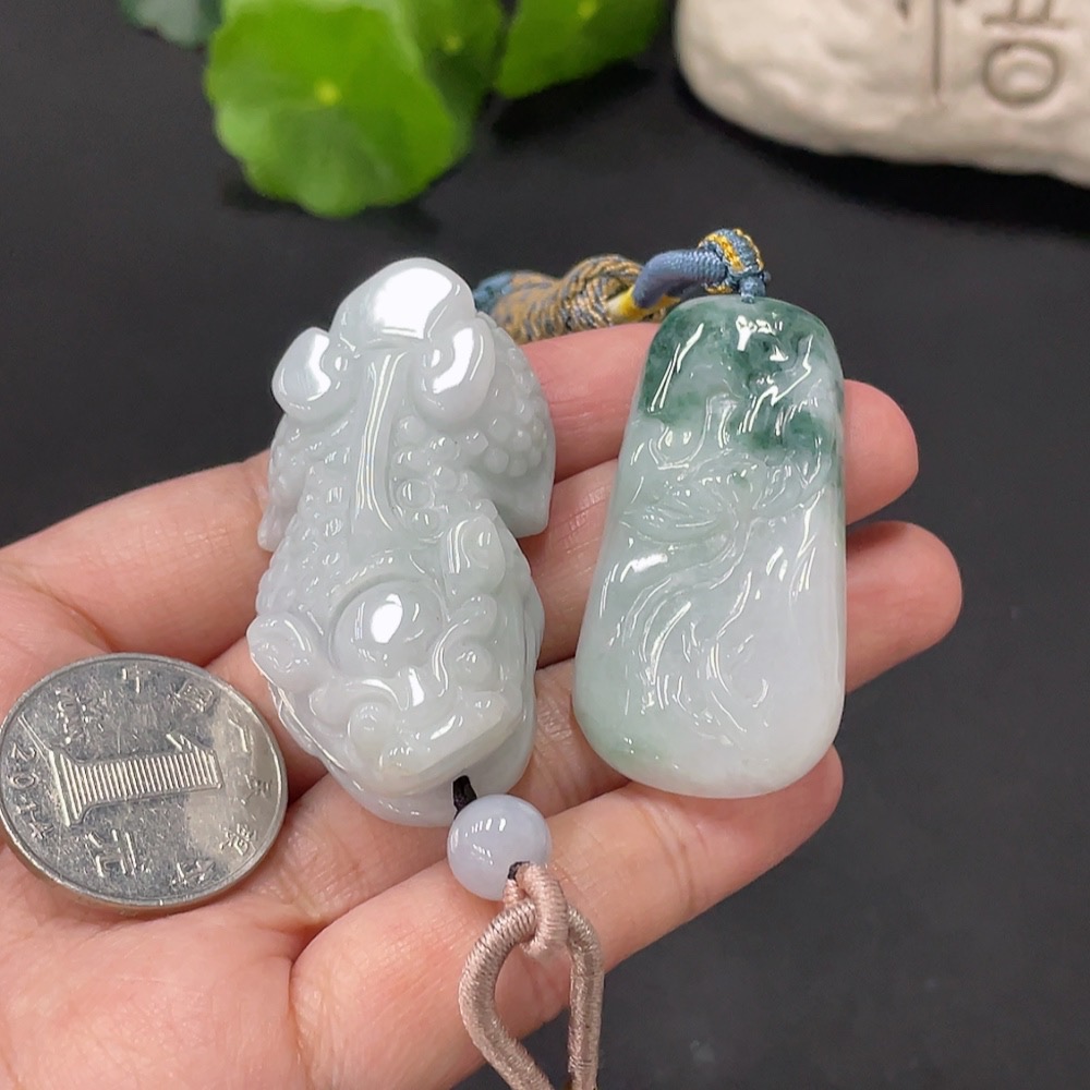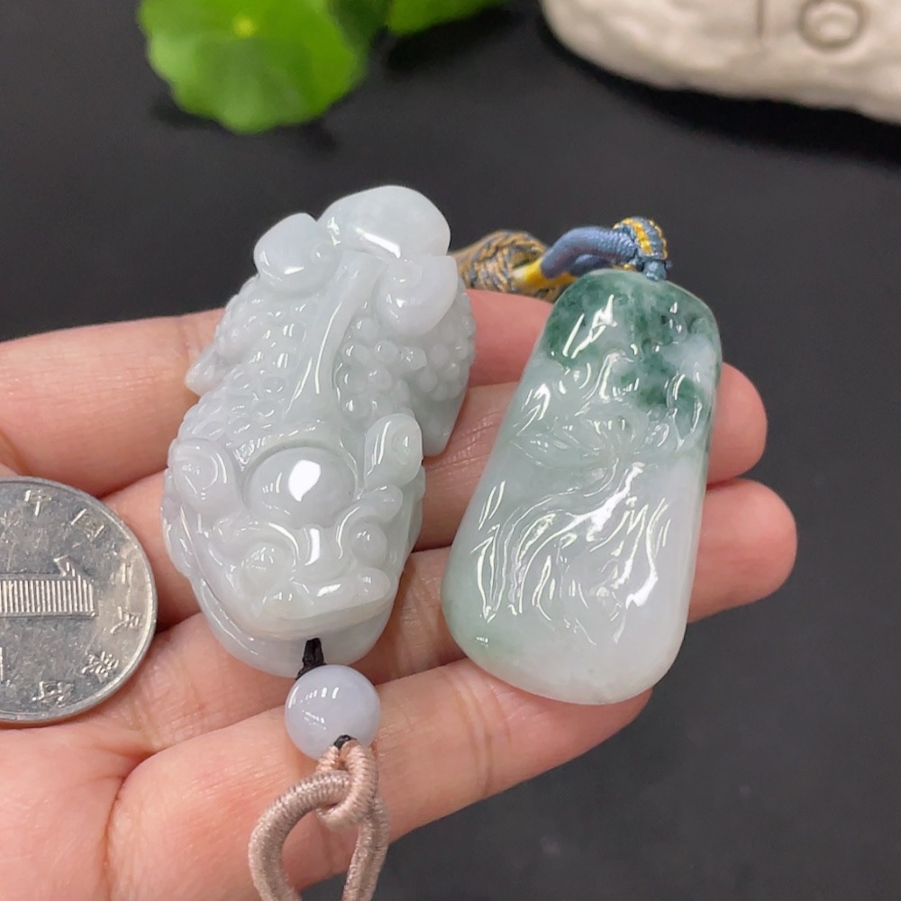 Jadeite Pendant Pixiu Lotus and Fish Abundance