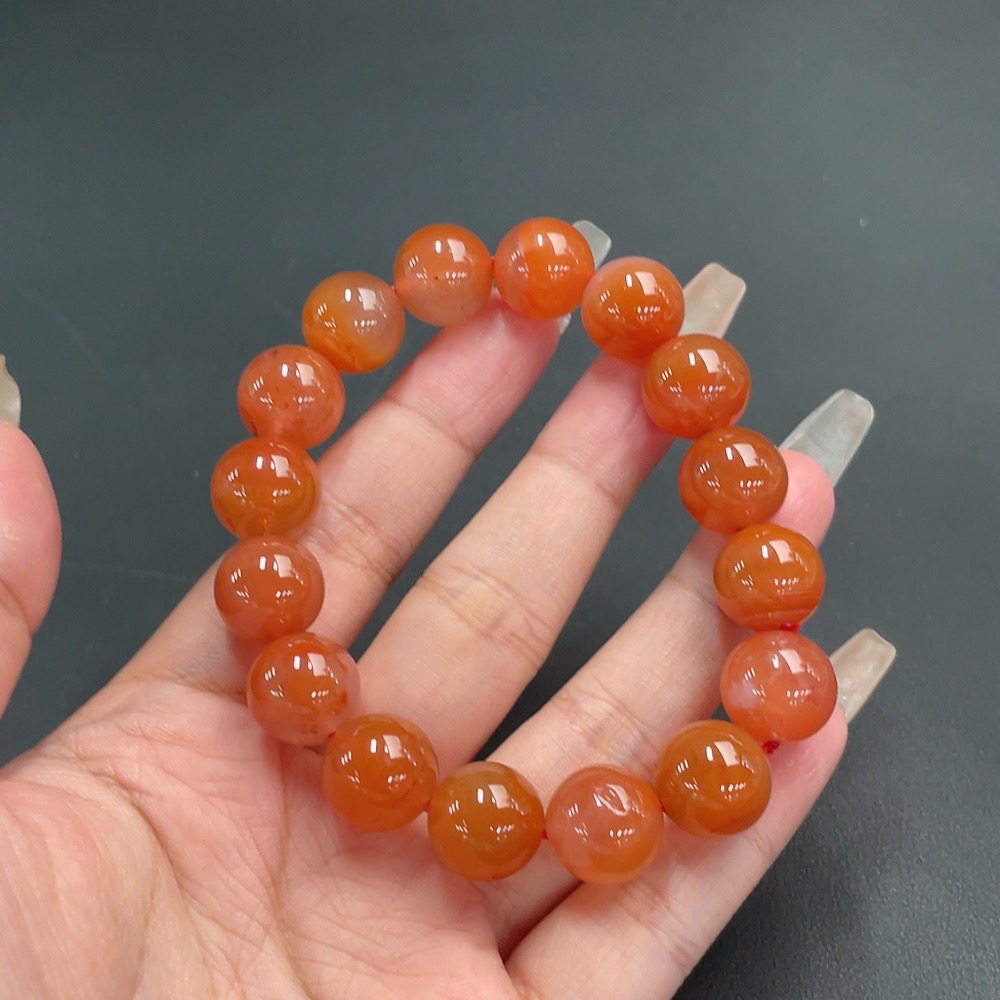 Red Agate Bracelet, approx. 13mm beads, total weight approx. 50.48g, visible organic inclusions