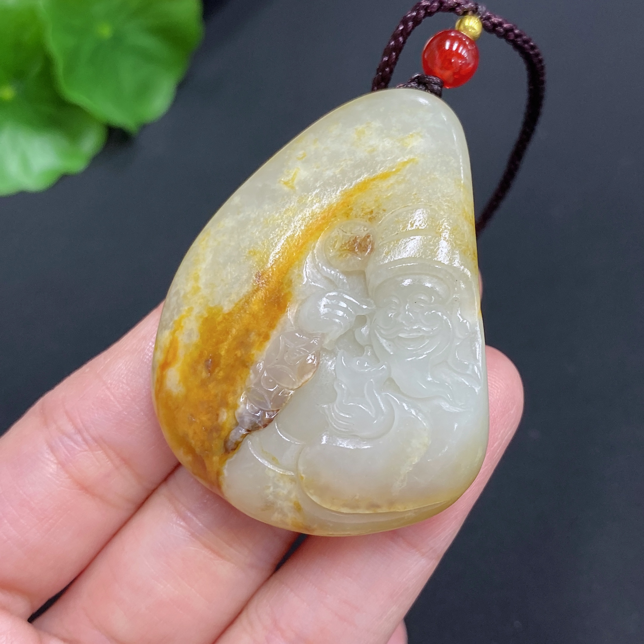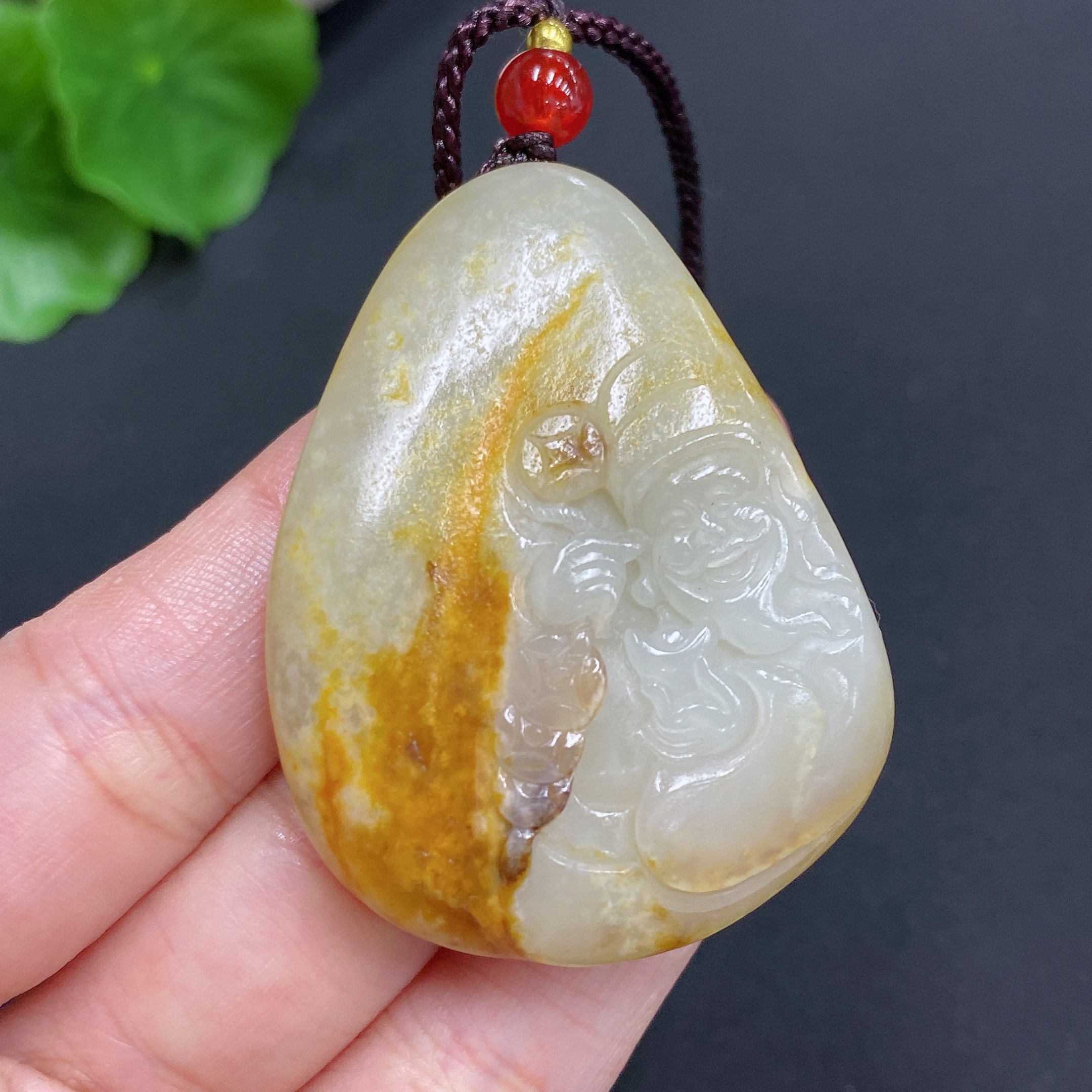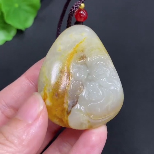 Hetian Jade Pendant God of Wealth Total Weight (including rope): 35.1g Undetermined skin color cause