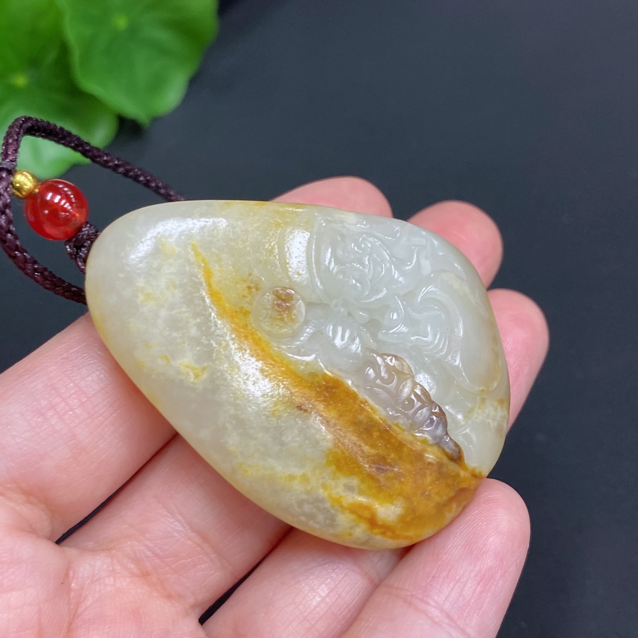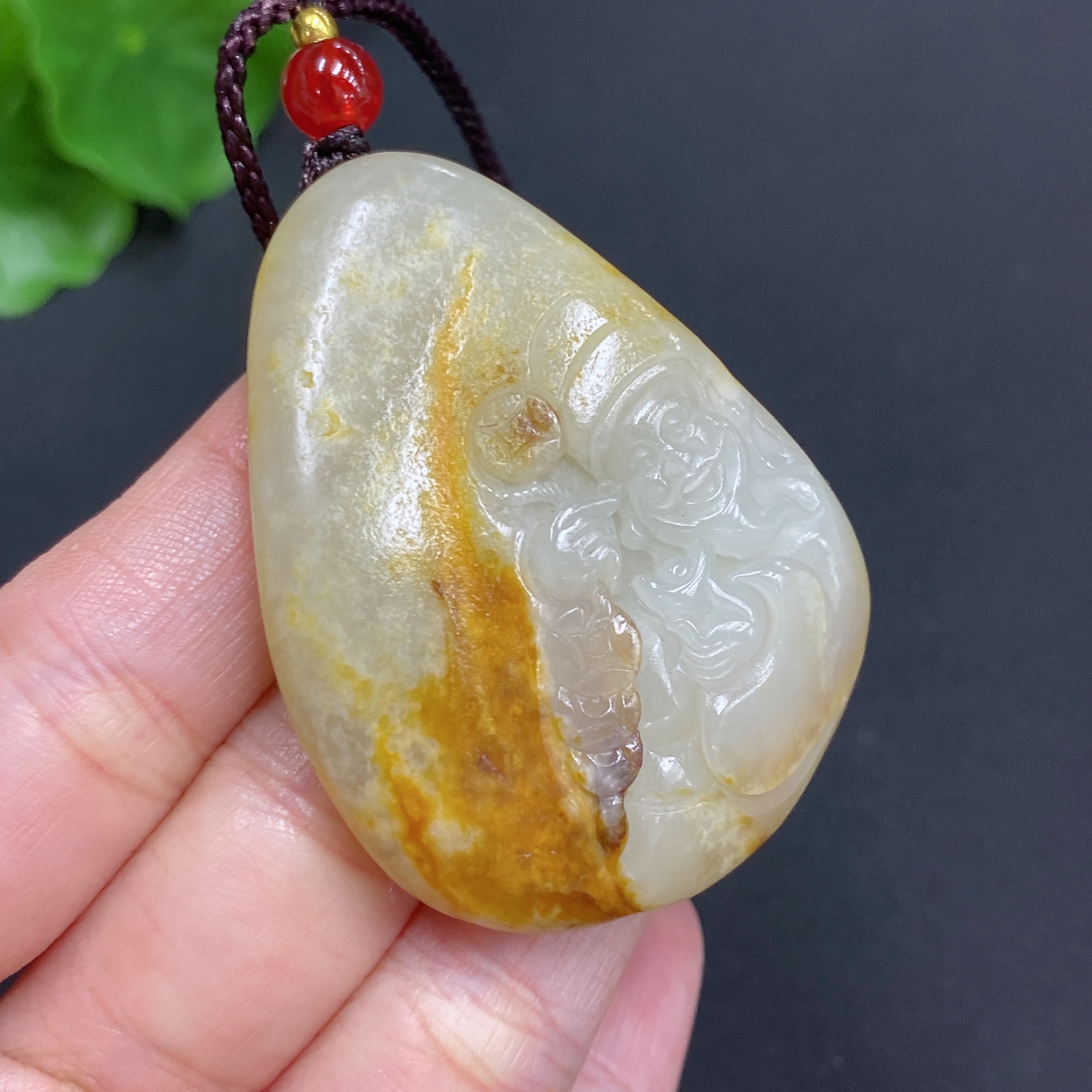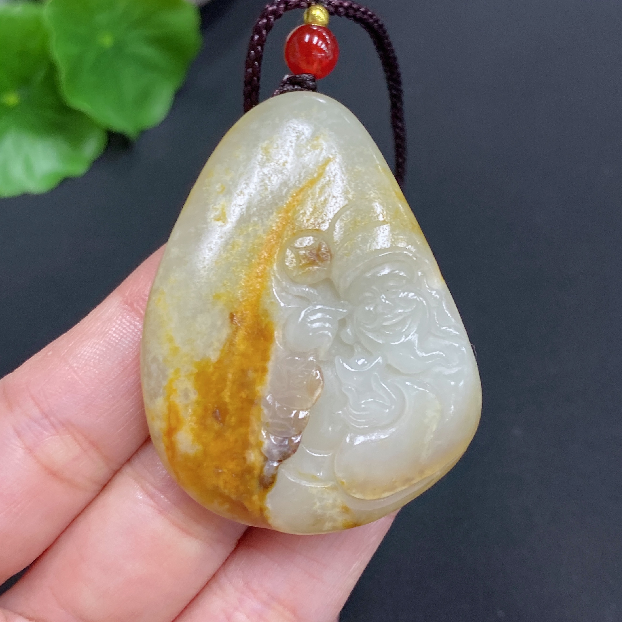 Hetian Jade Pendant God of Wealth Total Weight (including rope): 35.1g Undetermined skin color cause