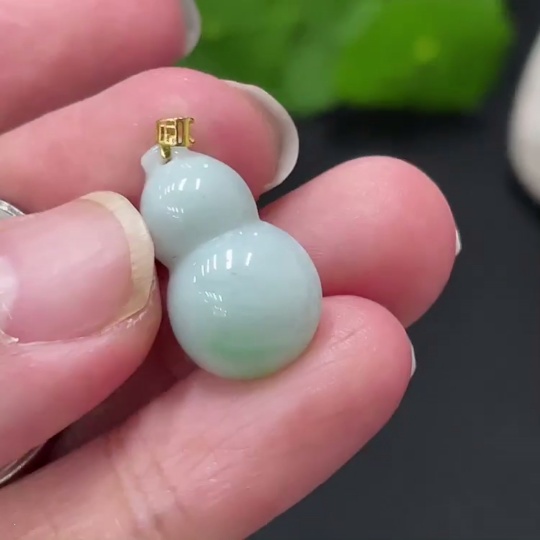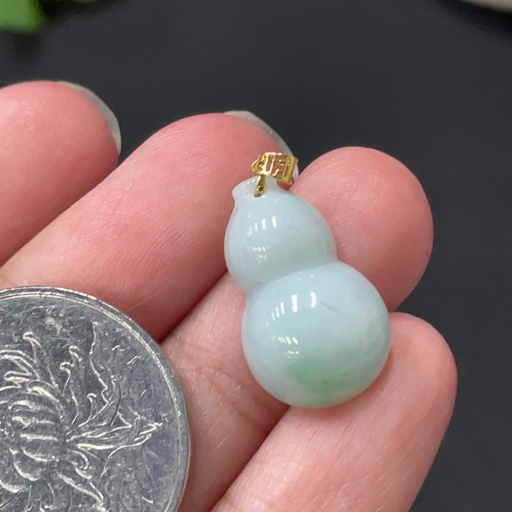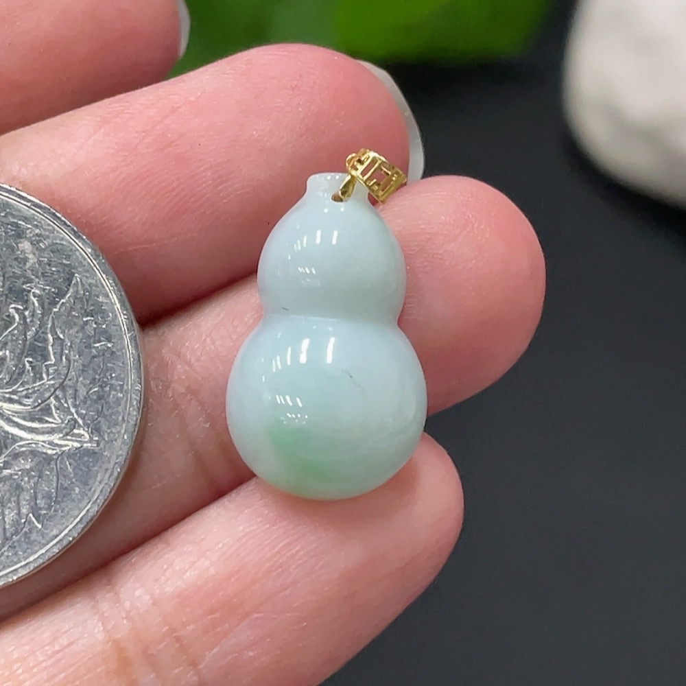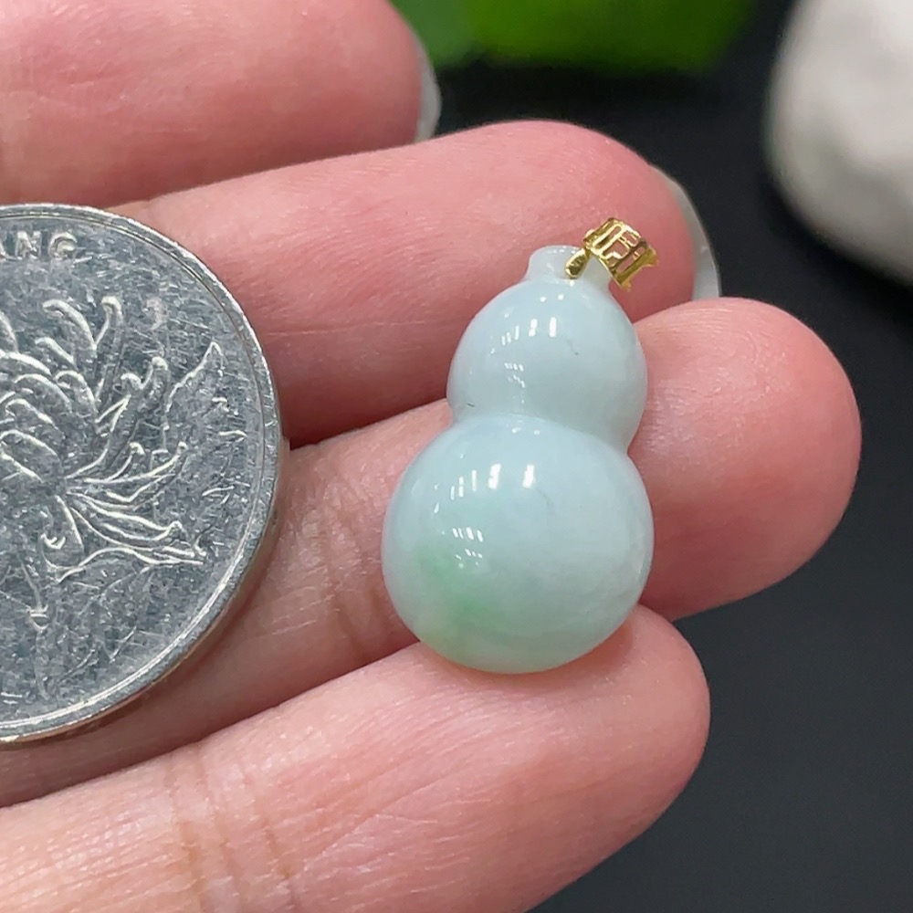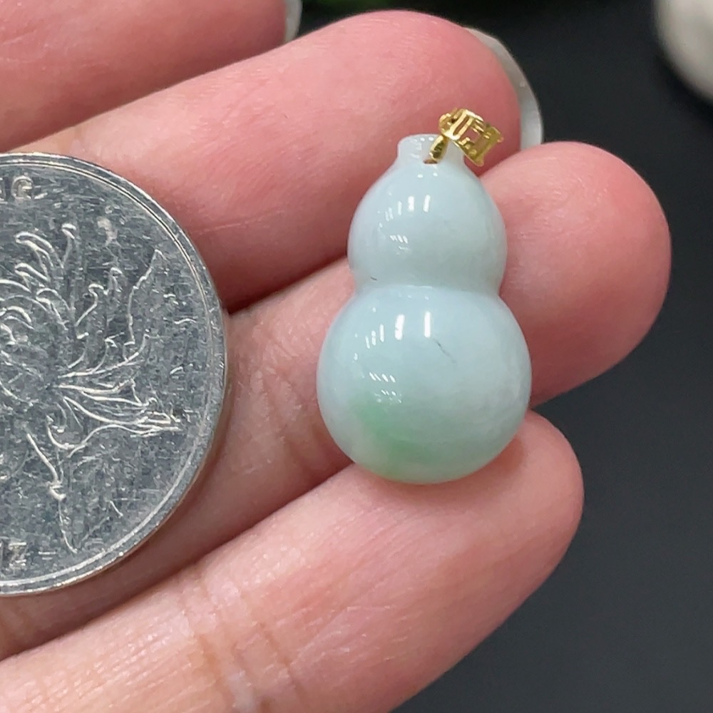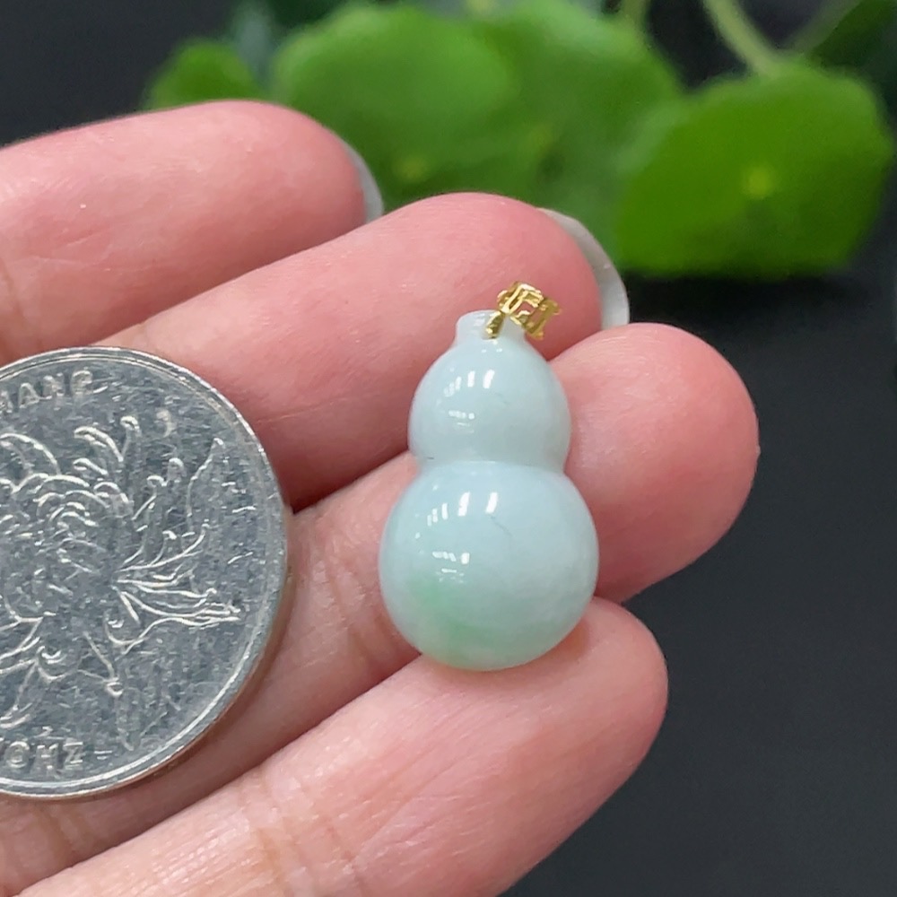 Jadeite Gourd Pendant with 18k Gold Clasp, Total Weight 2.056g