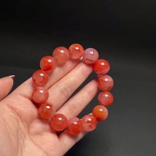 South Red Agate Bracelet, Approx. 14.4mm, Total Weight Approx. 57.98g, Visible Organic Matter