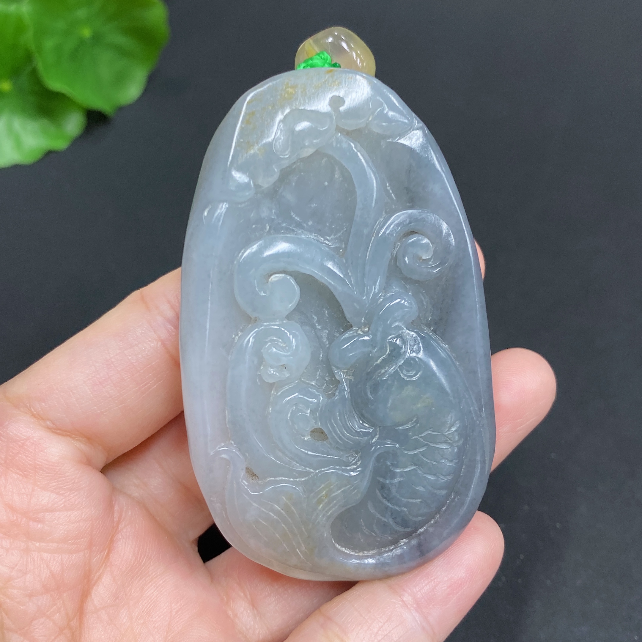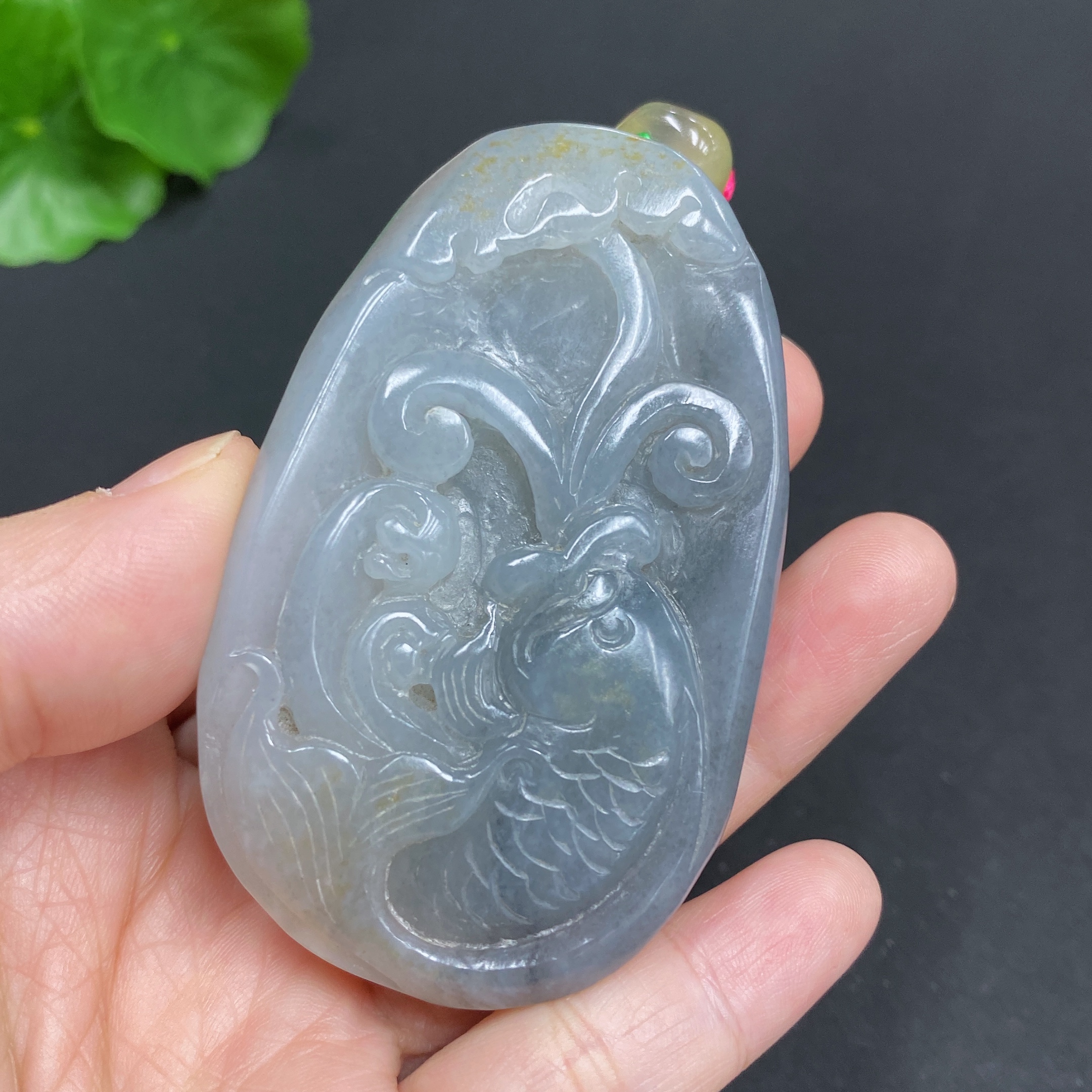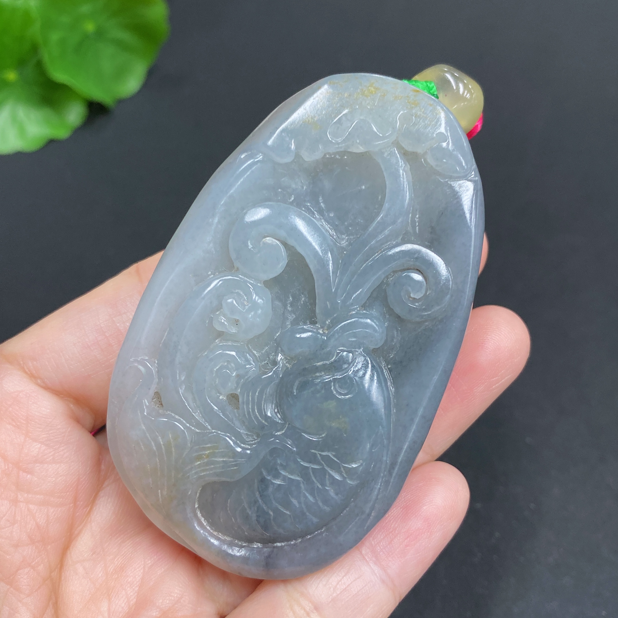 Hetian Jade Handheld Ornament - Abundance Every Year - Undetermined Skin Color Origin - Total Weight (Including Rope) Approx. 82g