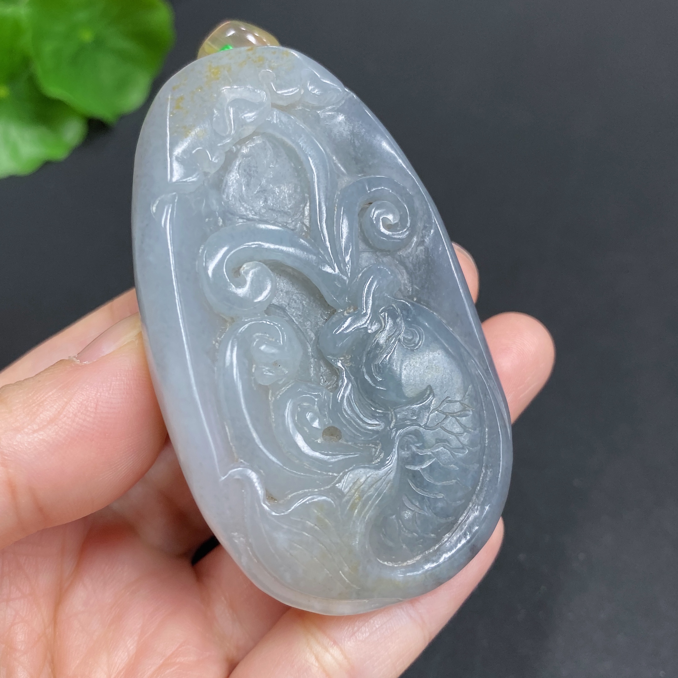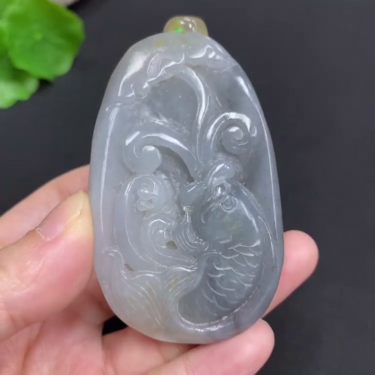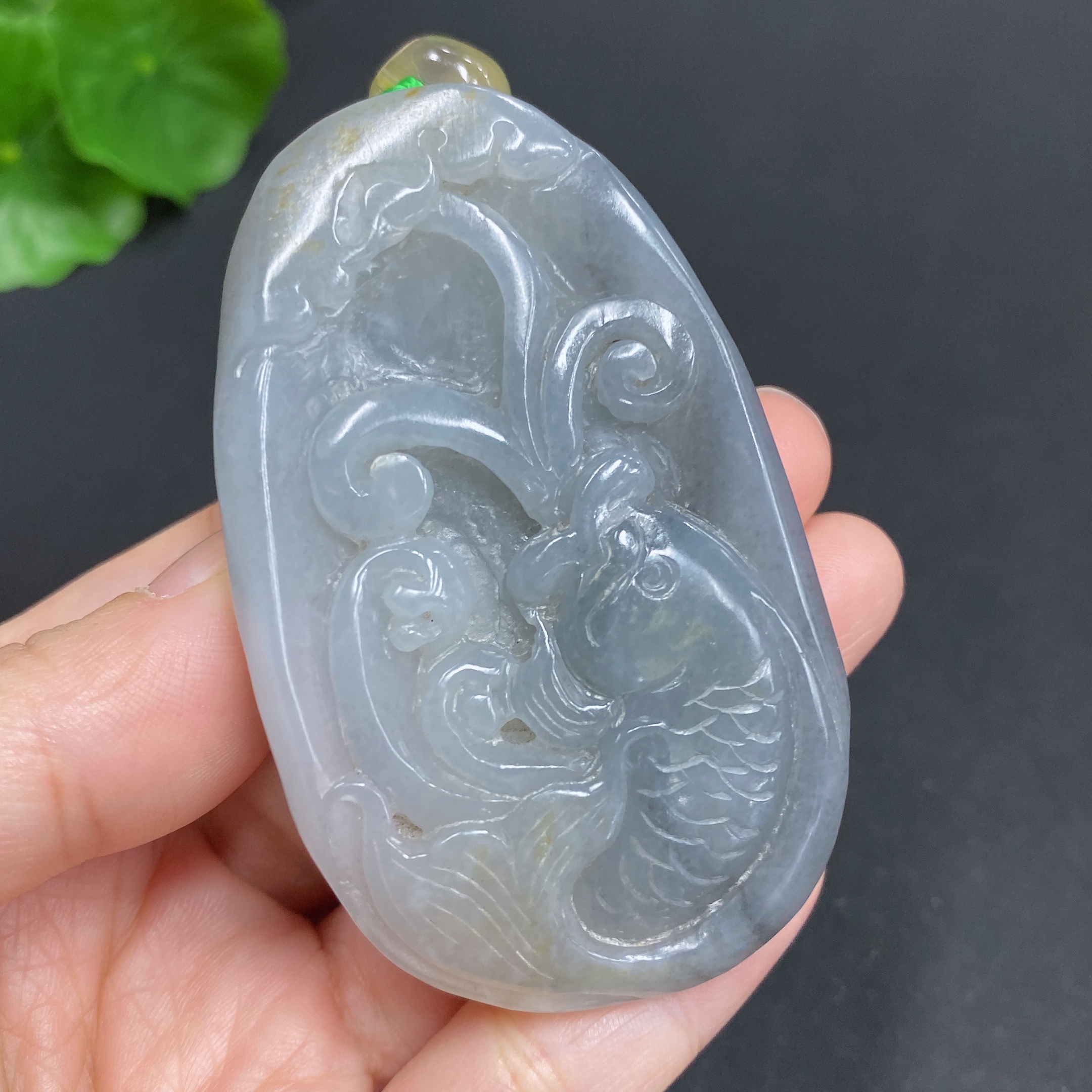 Hetian Jade Handheld Ornament - Abundance Every Year - Undetermined Skin Color Origin - Total Weight (Including Rope) Approx. 82g