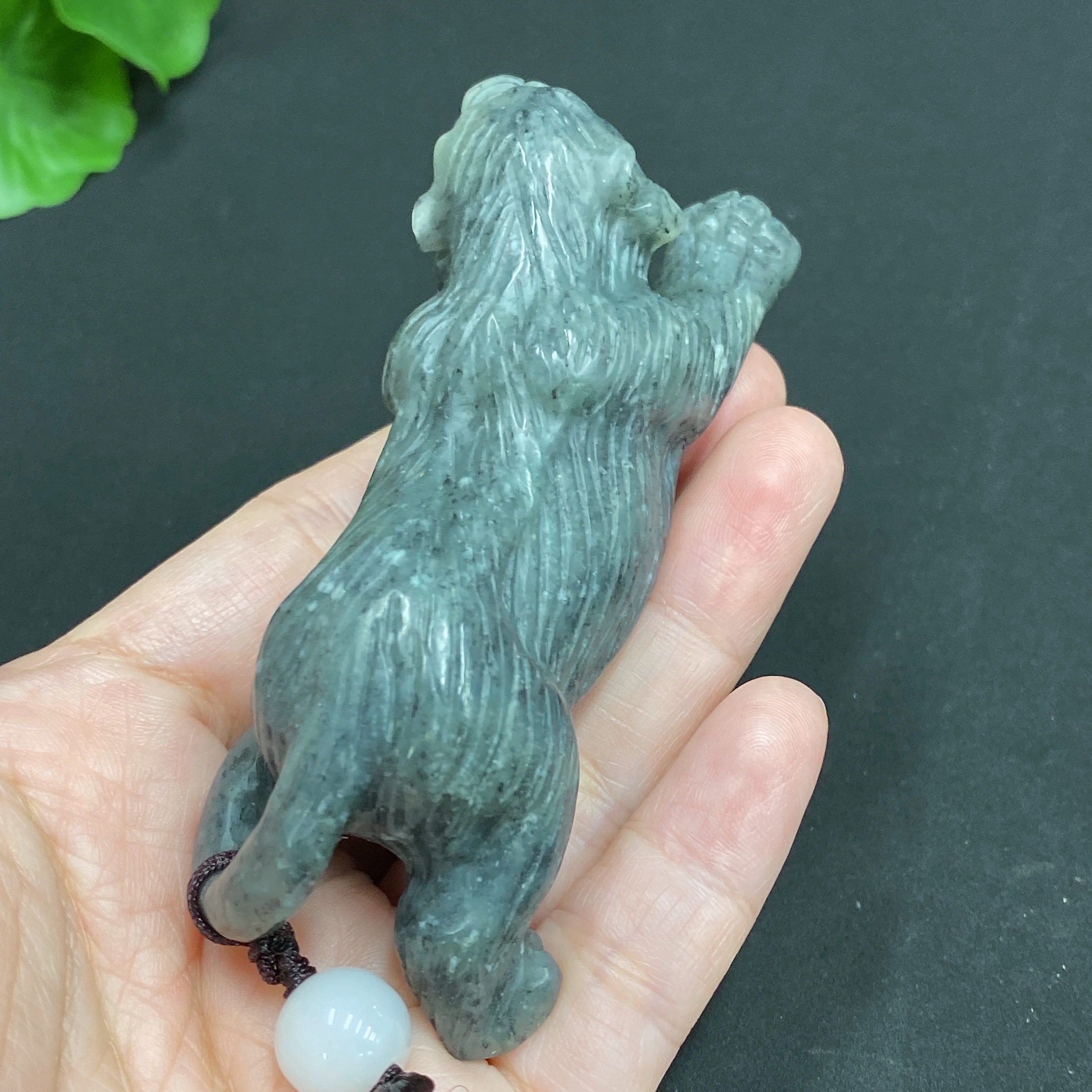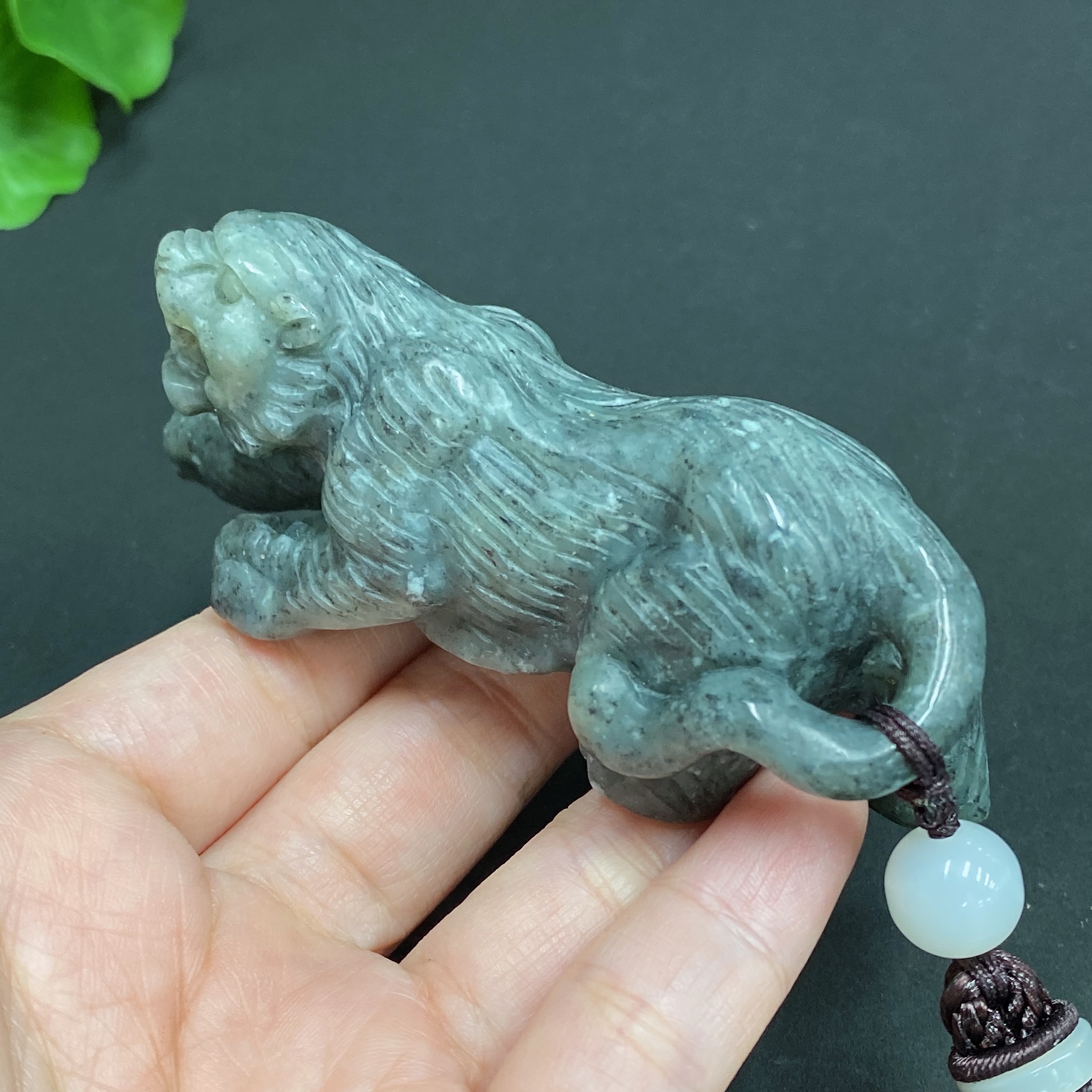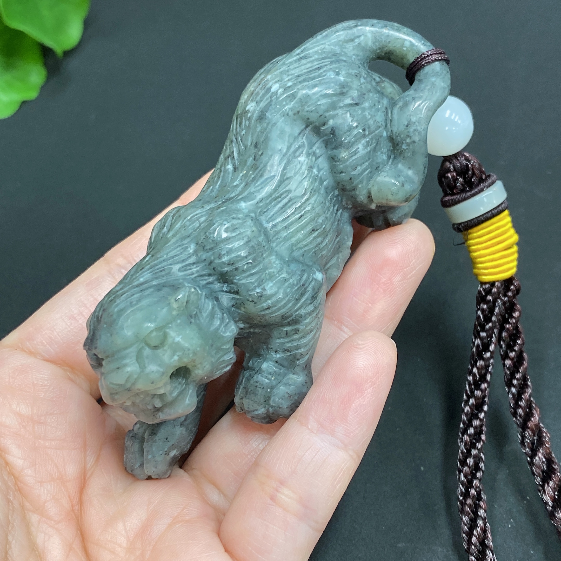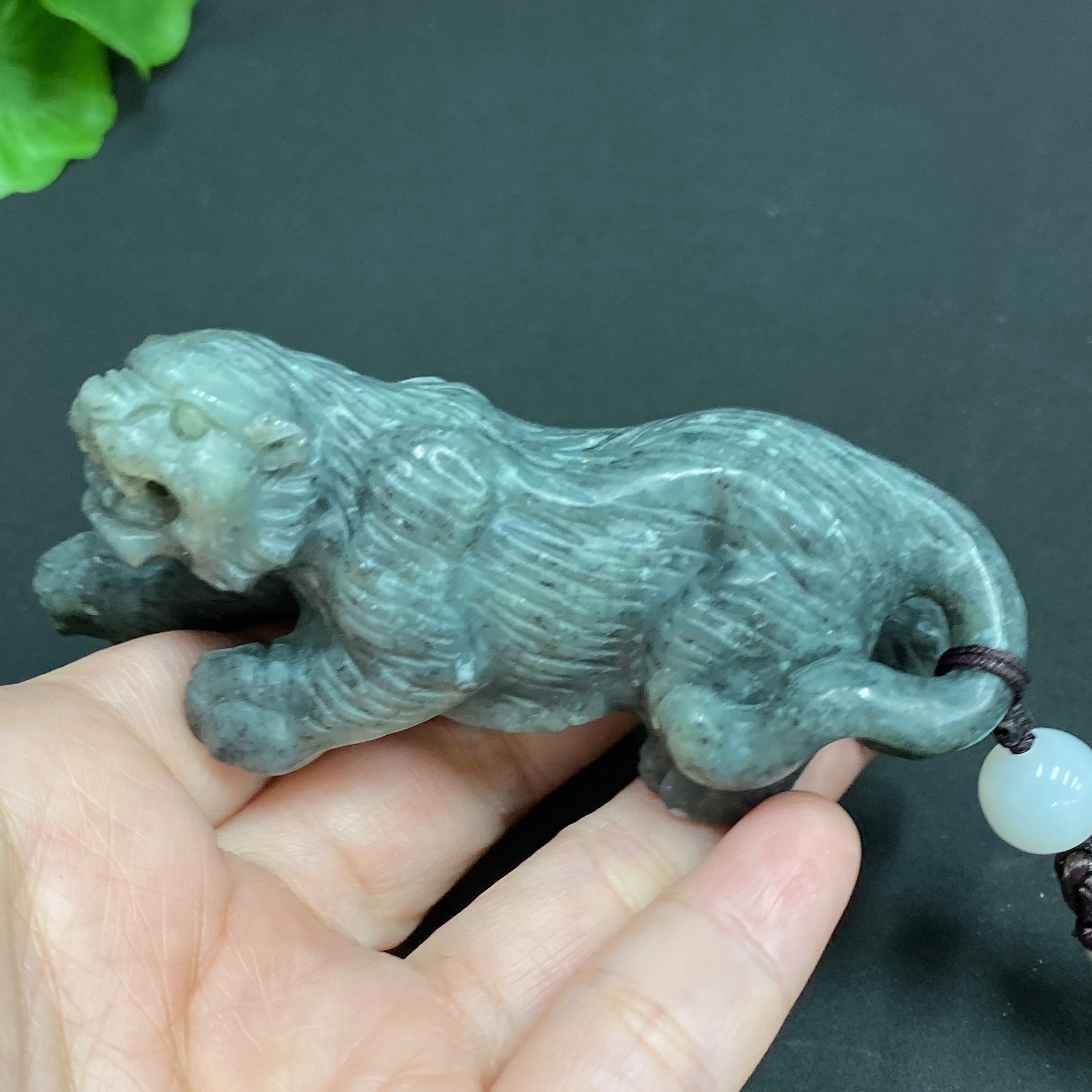 Trezaar - Hetian Jade Handheld Piece - Fierce Tiger - Total Weight Approx. 97g (with rope)