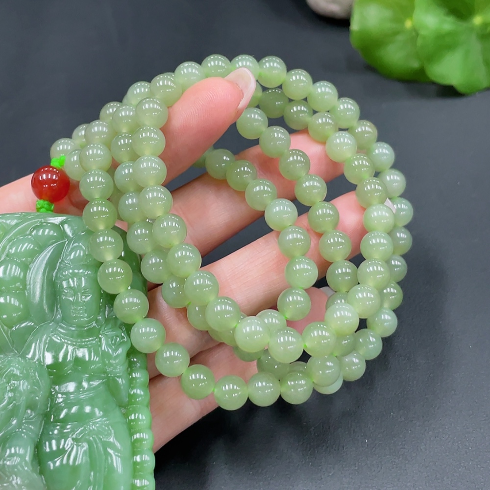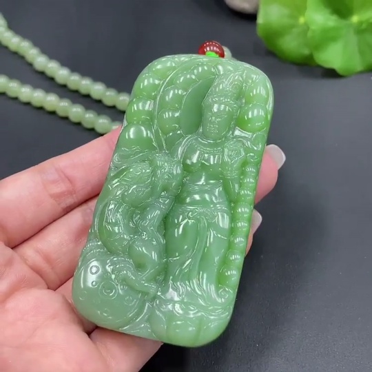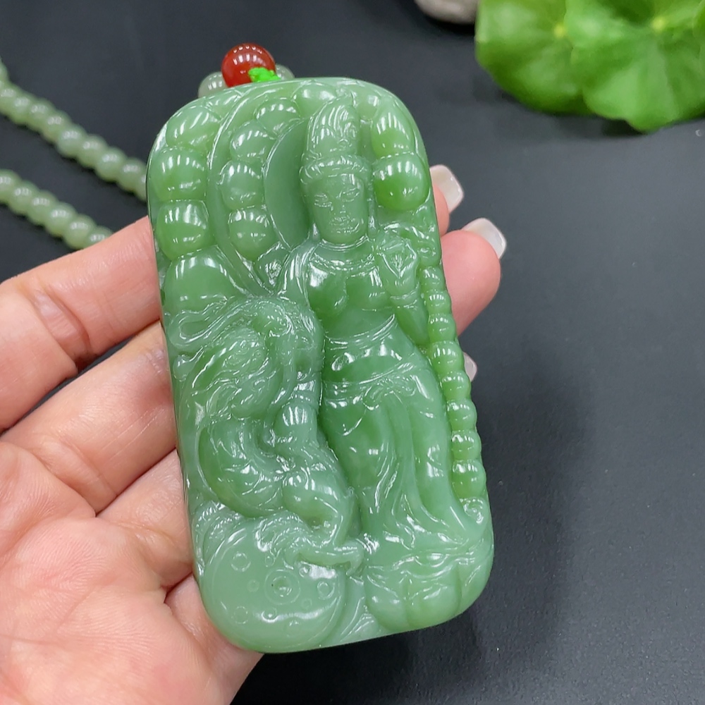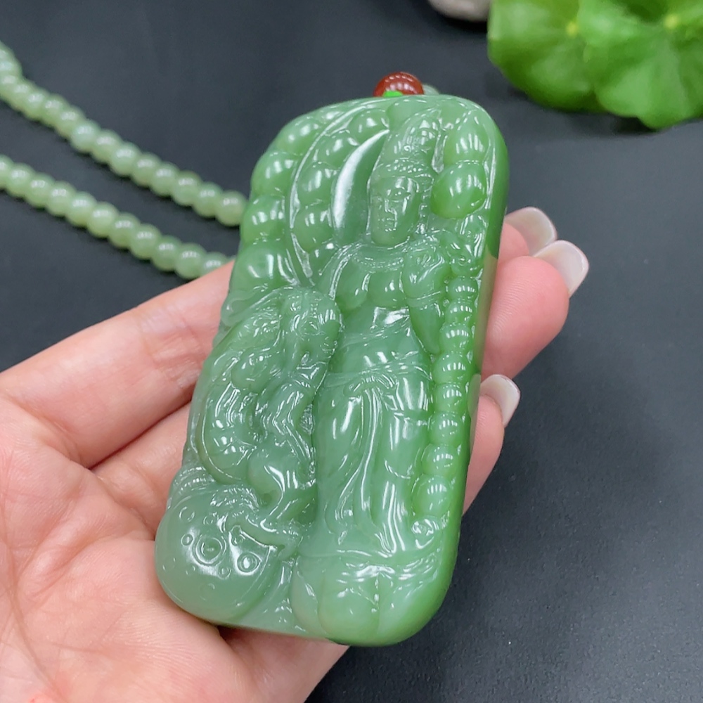 Hetian Jade Pendant - Imperial Dragon Guanyin with Red Beads (Non-Hetian Jade) Total Weight Approx. (Including Chain) 162.9g