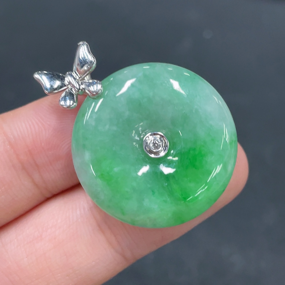 Jadeite Safety Pendant with 18k Clasp, Total Weight Approx. 8.28g