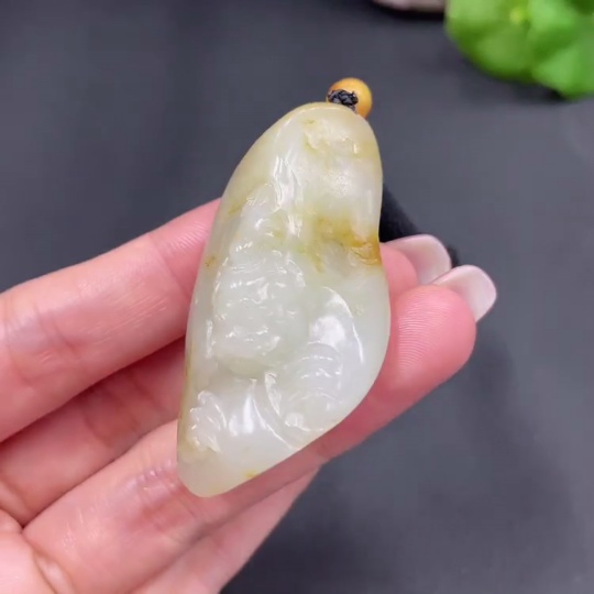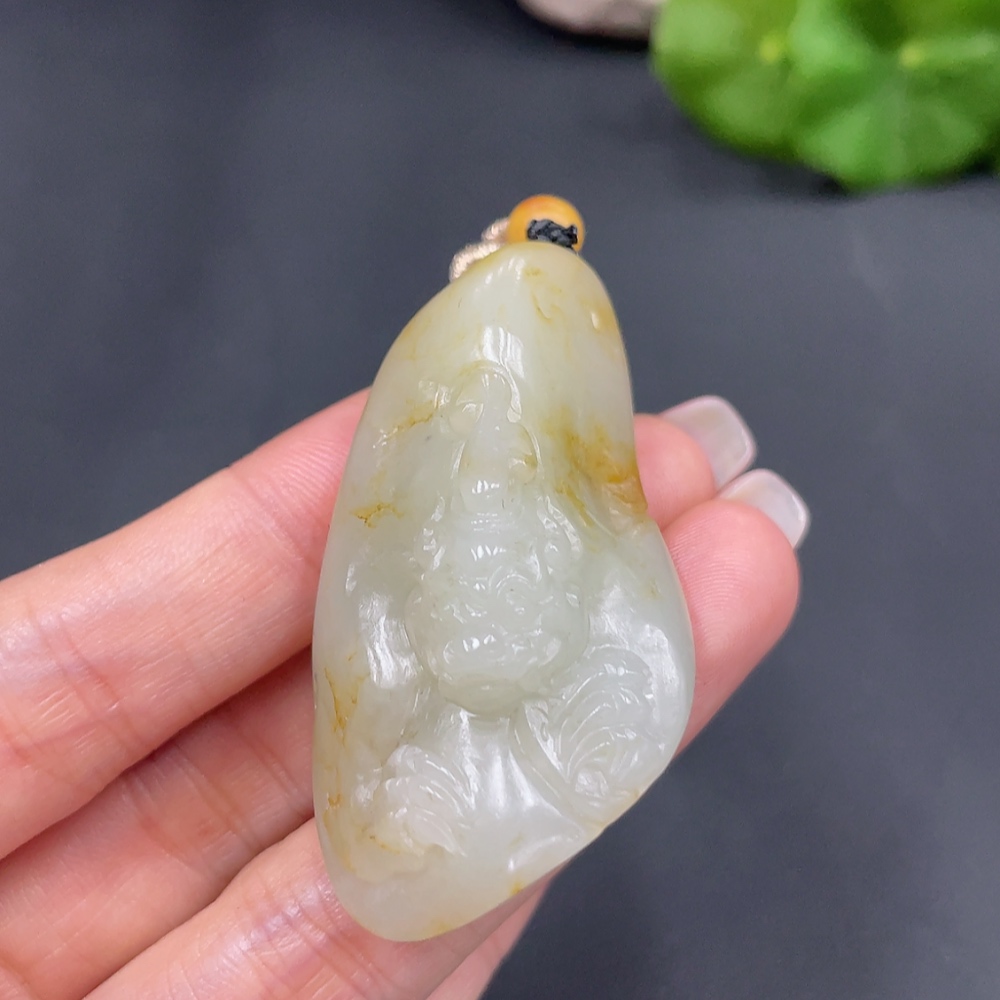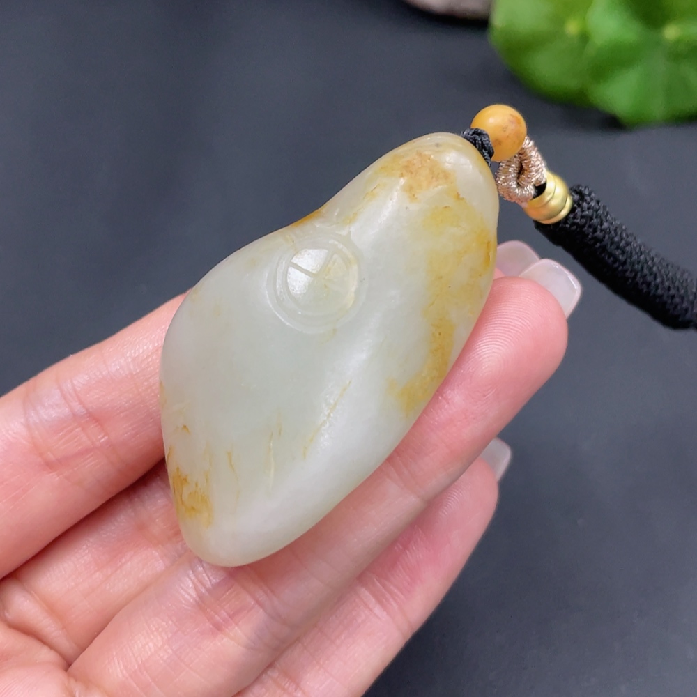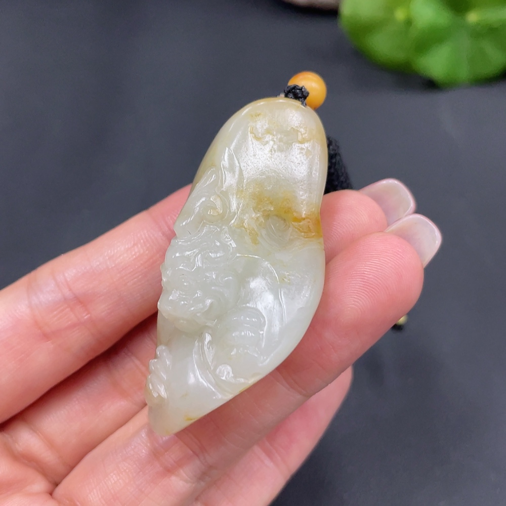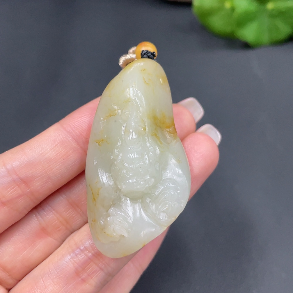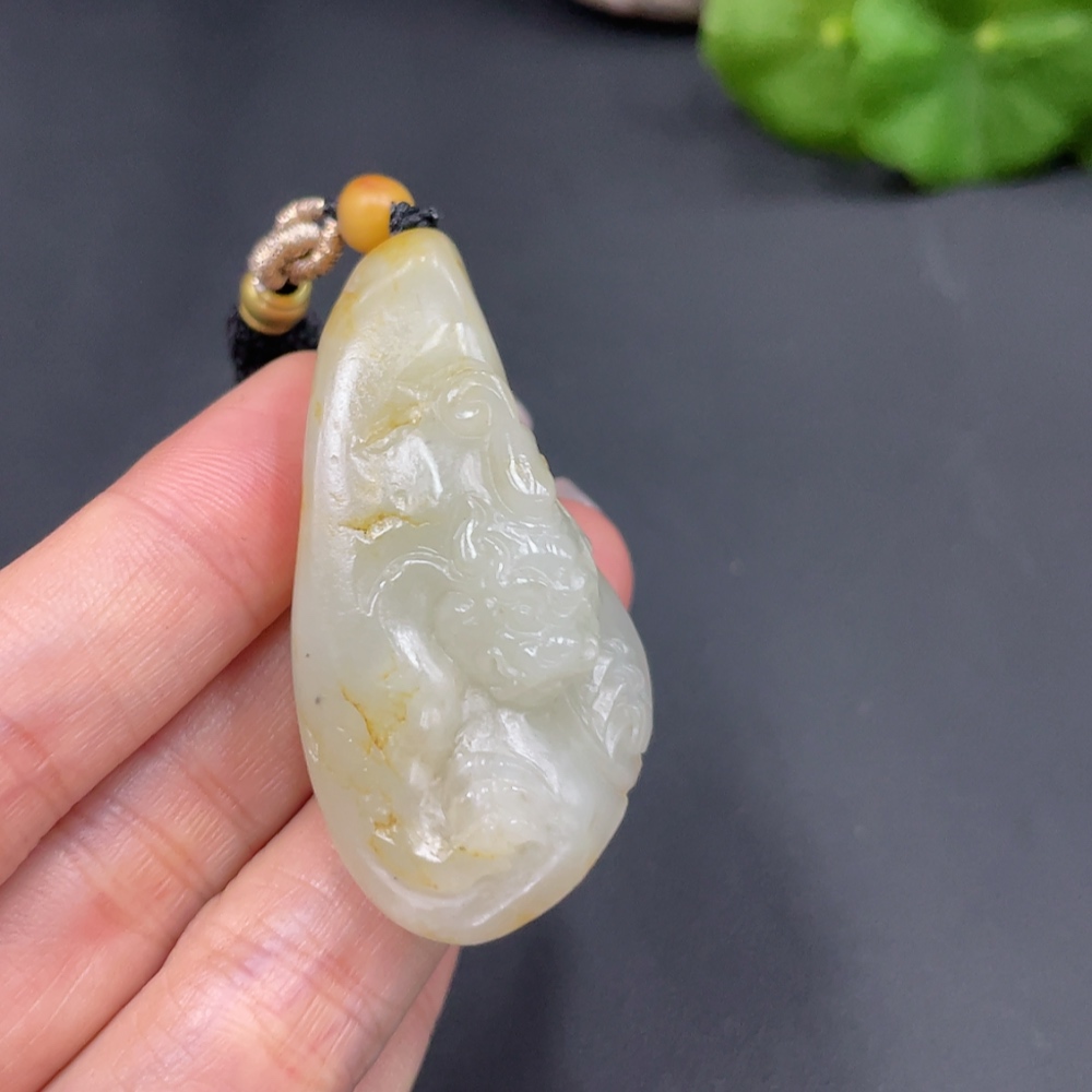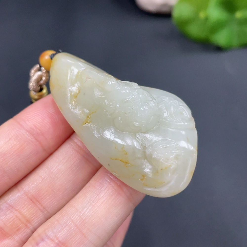 Hetian Jade Seed Material Pendant, Auspicious Beast, Total Weight Approx. (including cord) 37g, Undetermined Skin Color Origin