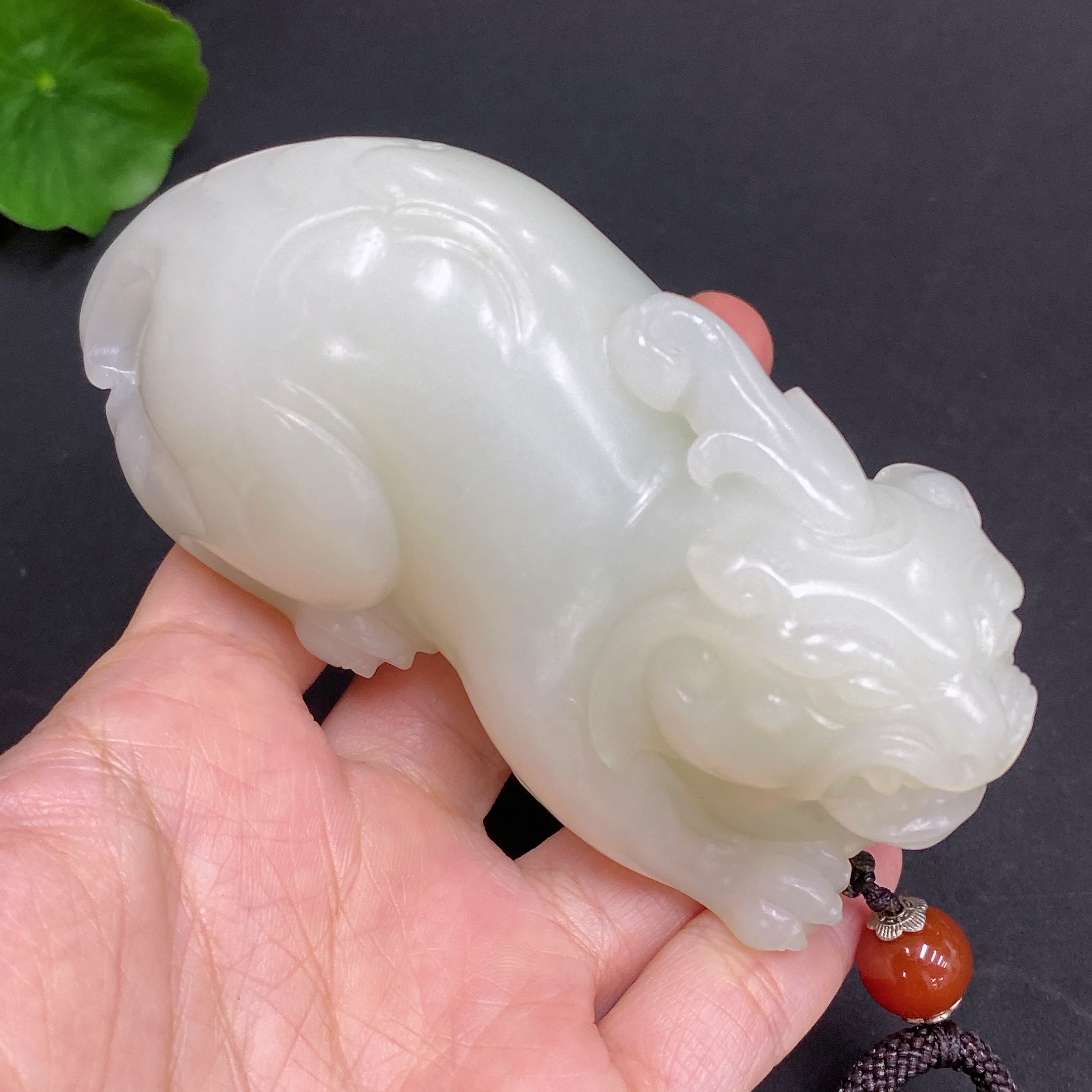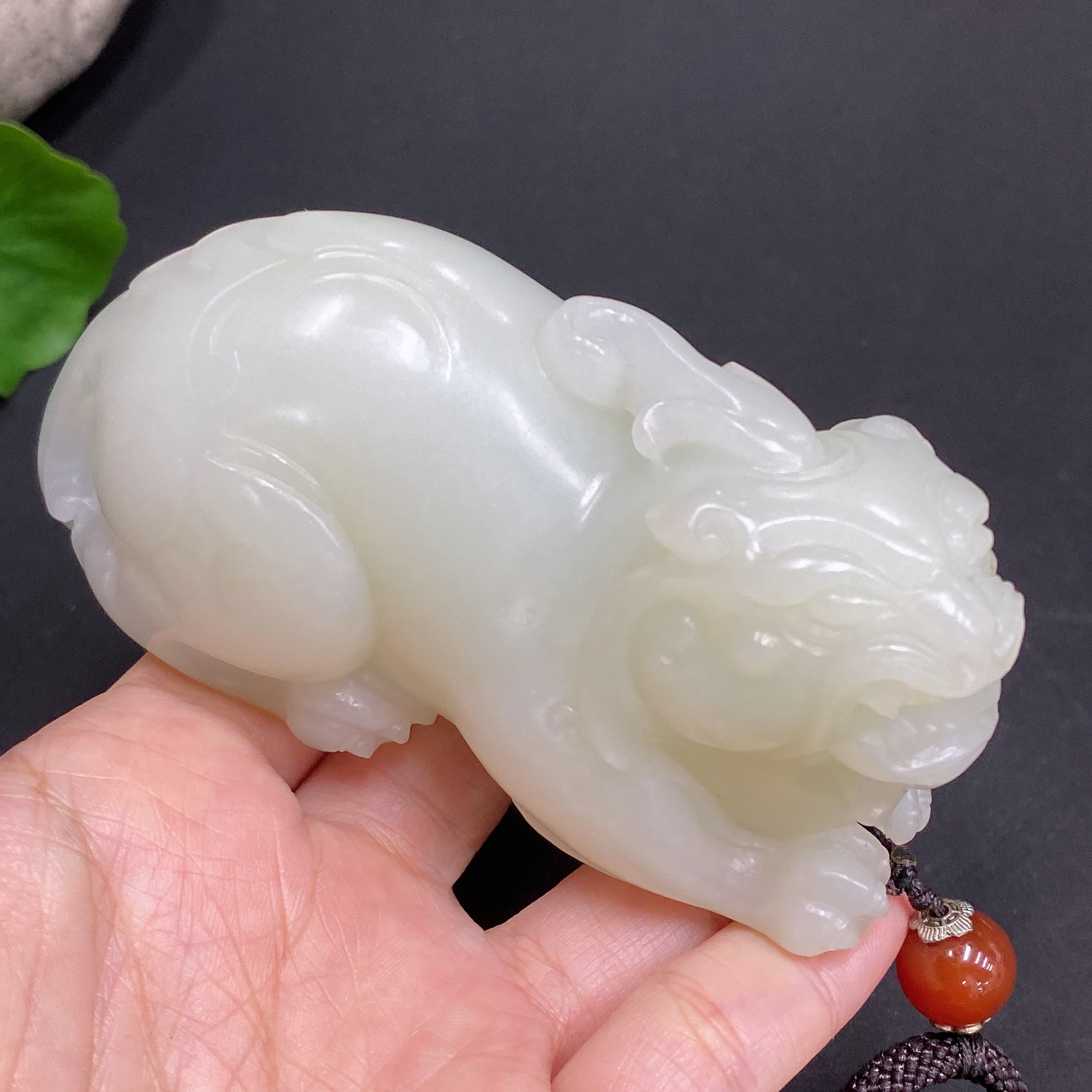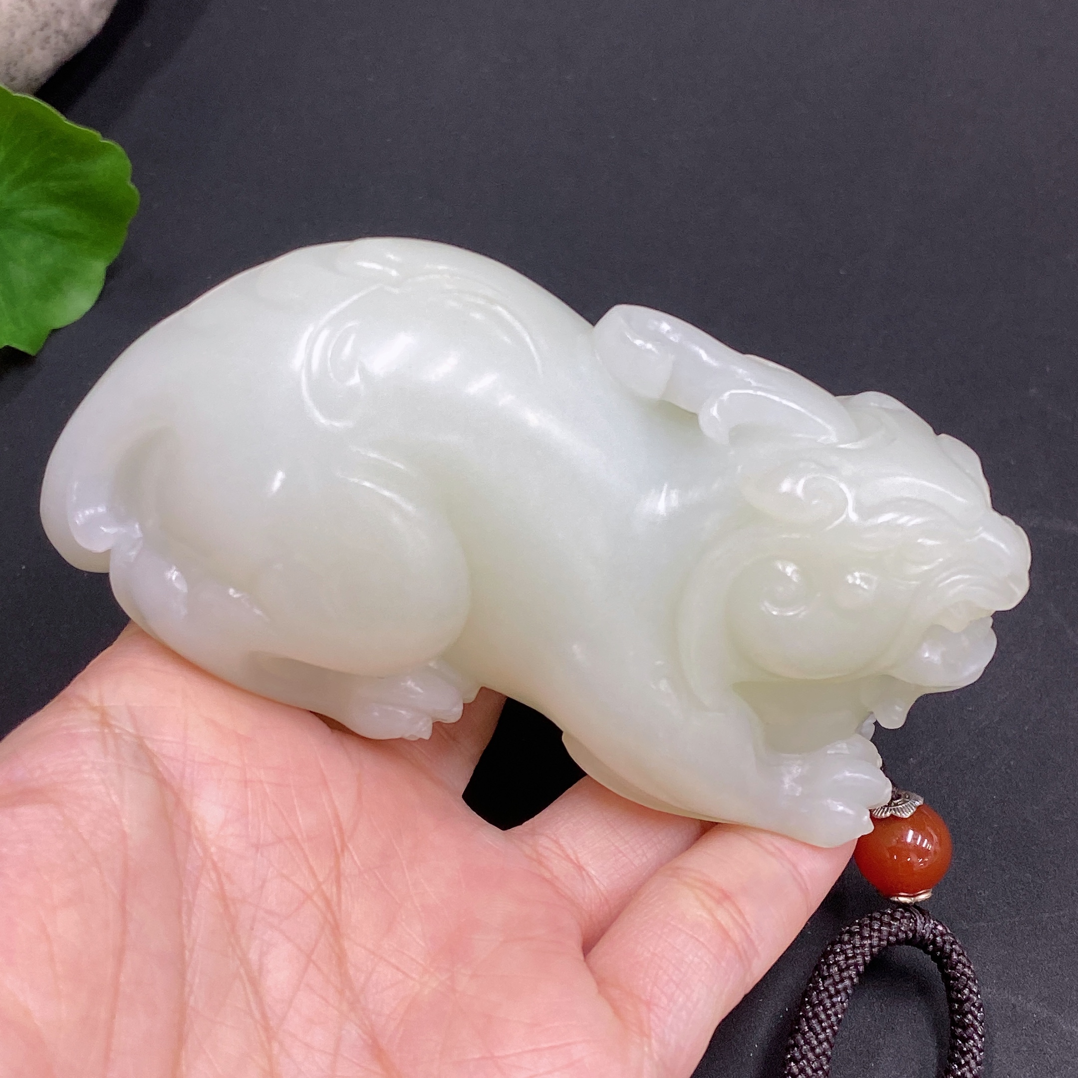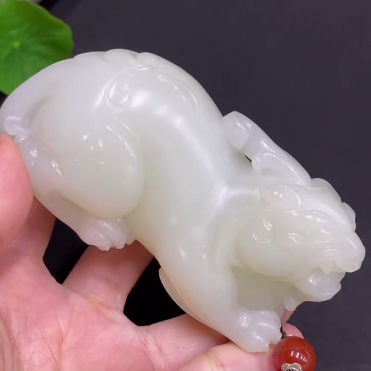 Hetian Jade Handheld Piece Auspicious Beast Total Weight Approx. (Including Rope) 273g