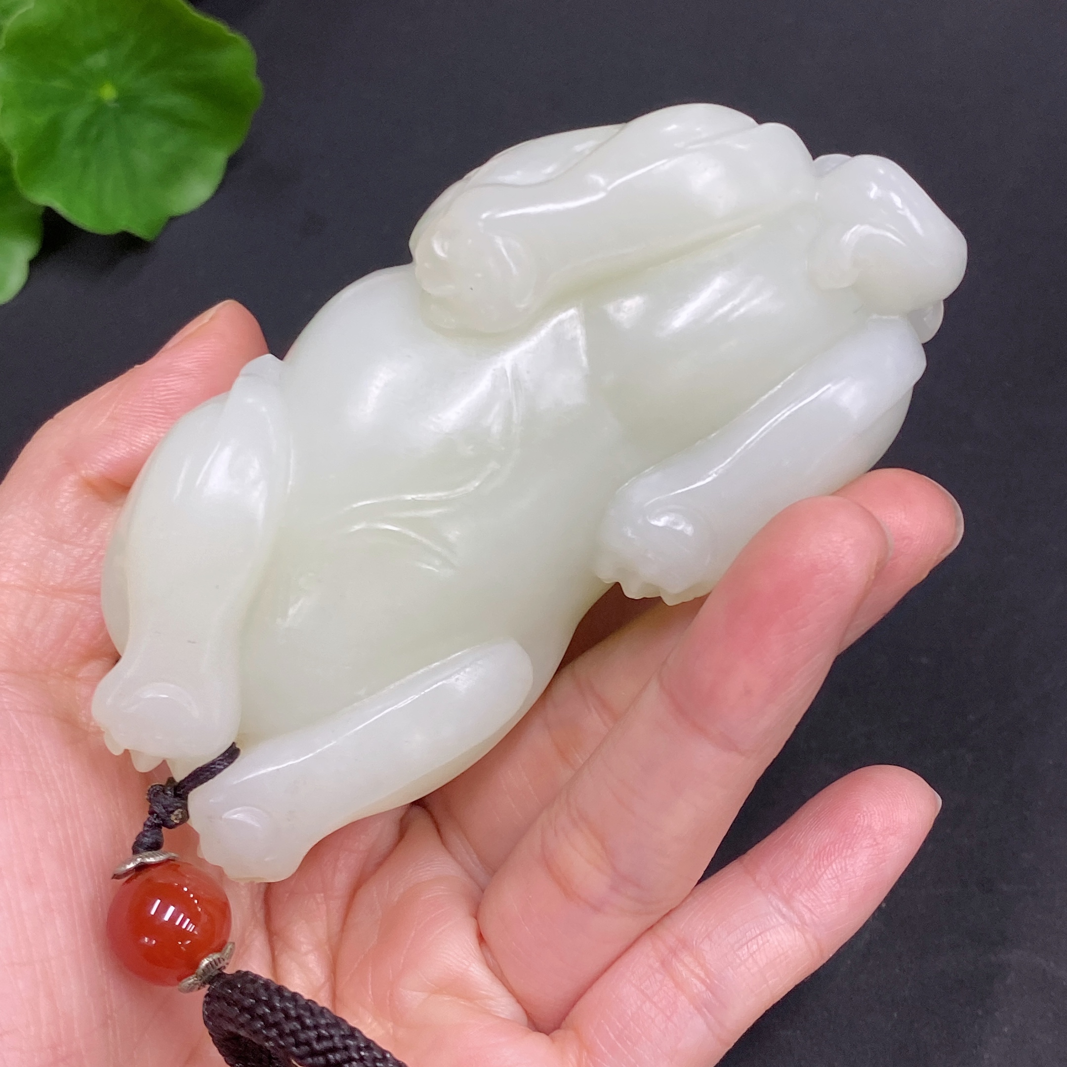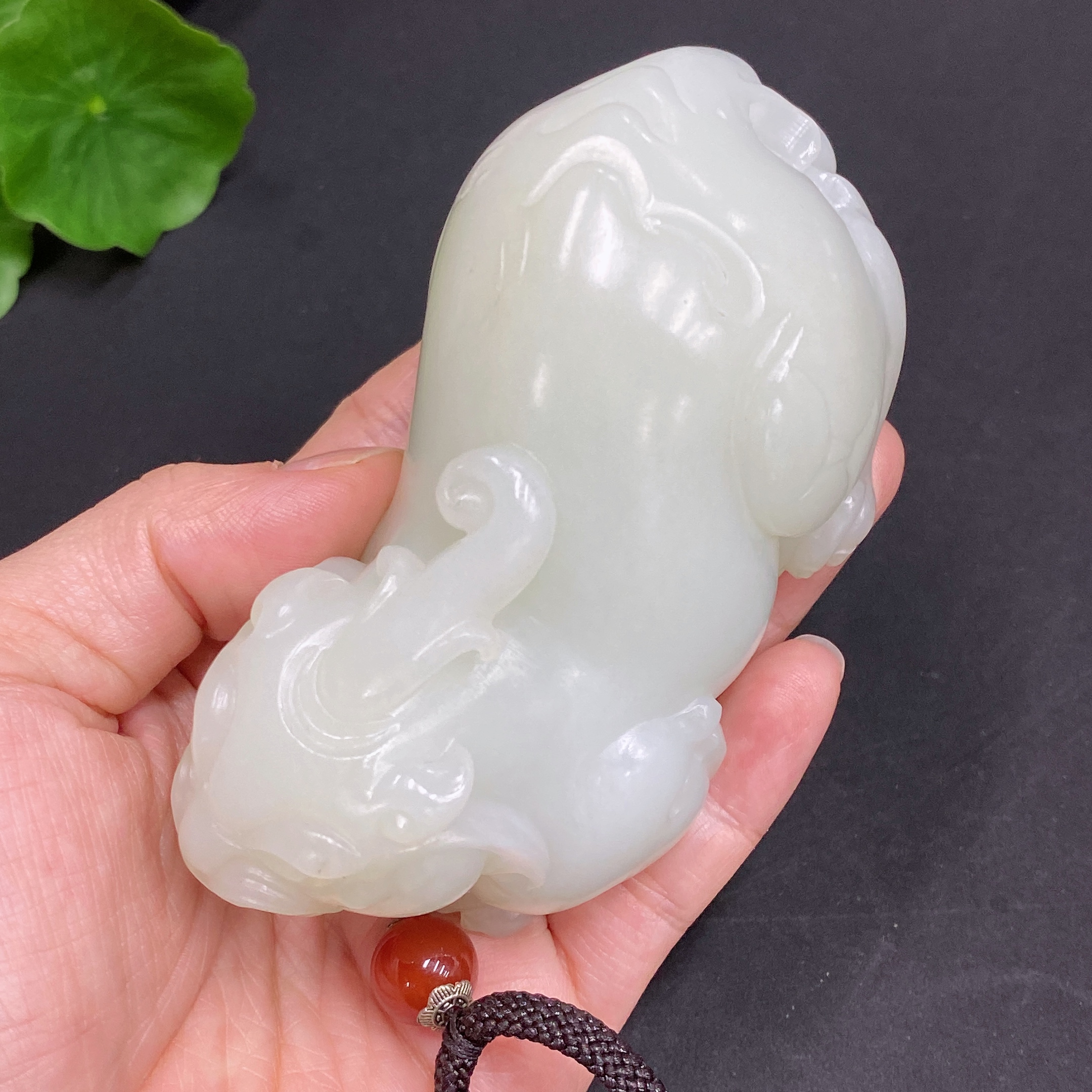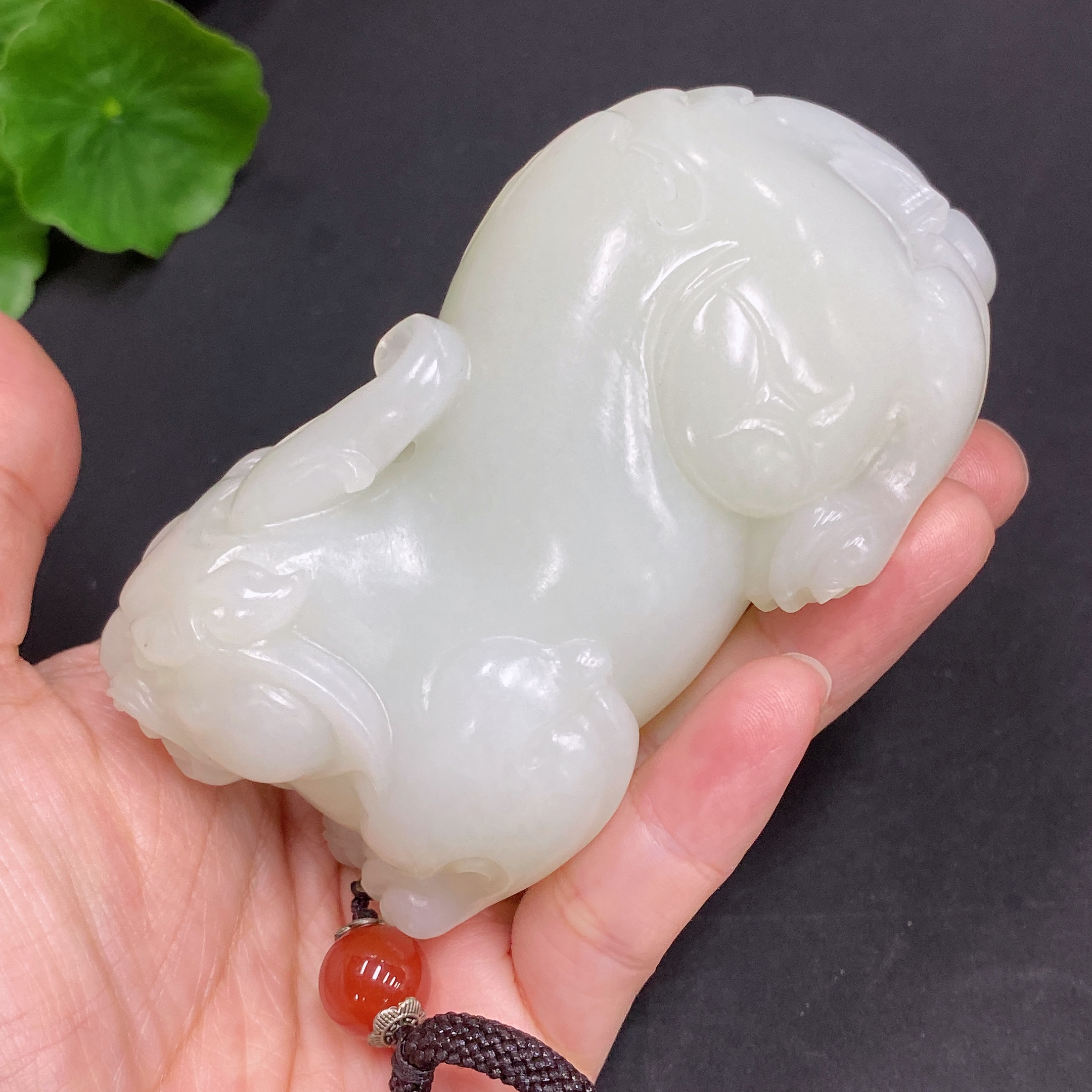 Hetian Jade Handheld Piece Auspicious Beast Total Weight Approx. (Including Rope) 273g