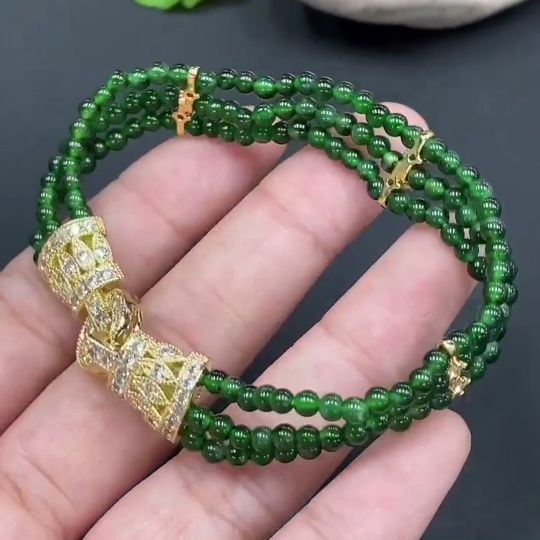 Jadeite Bracelet Approx. 3mm Beads Non-Gold-Inlaid Total Weight 12.333g