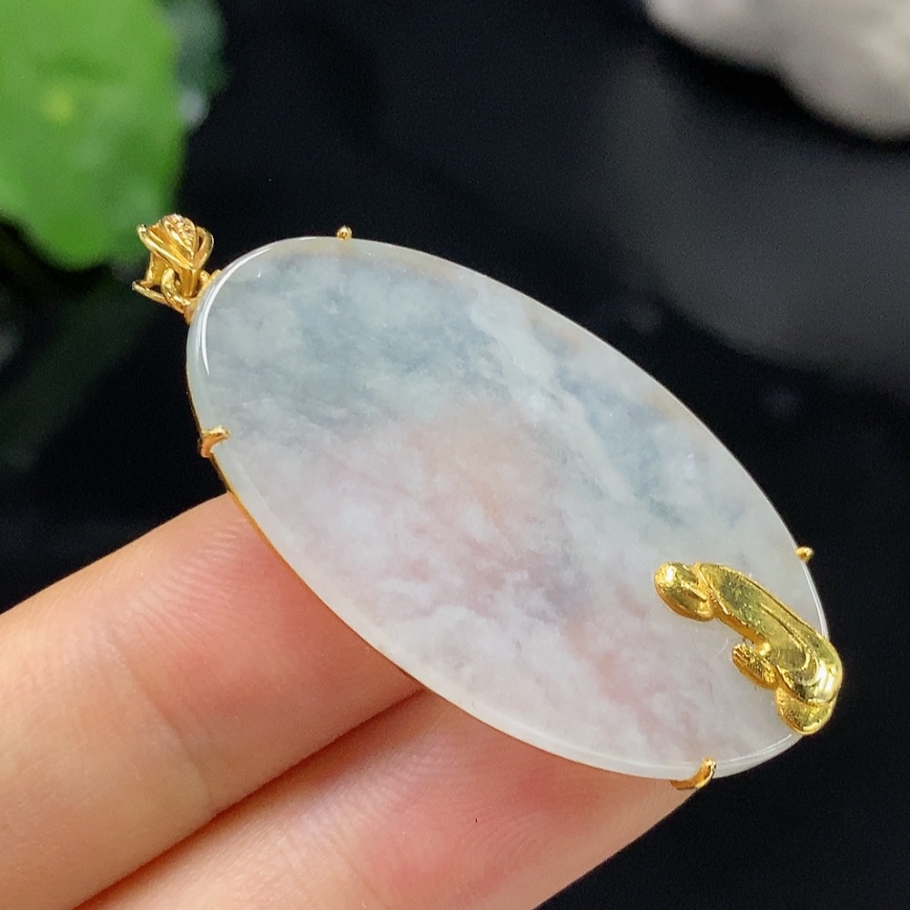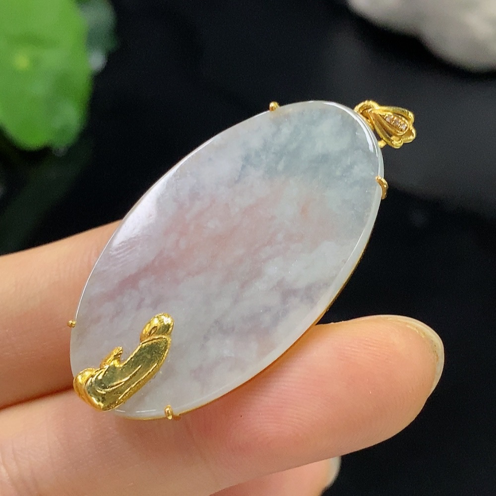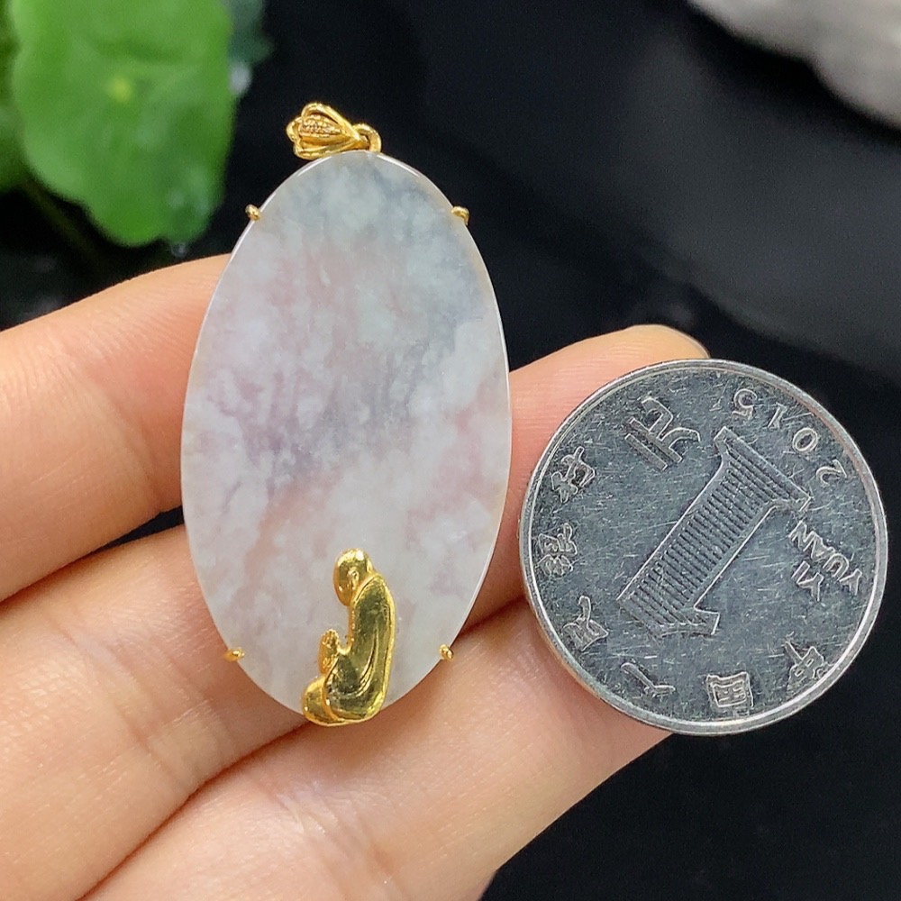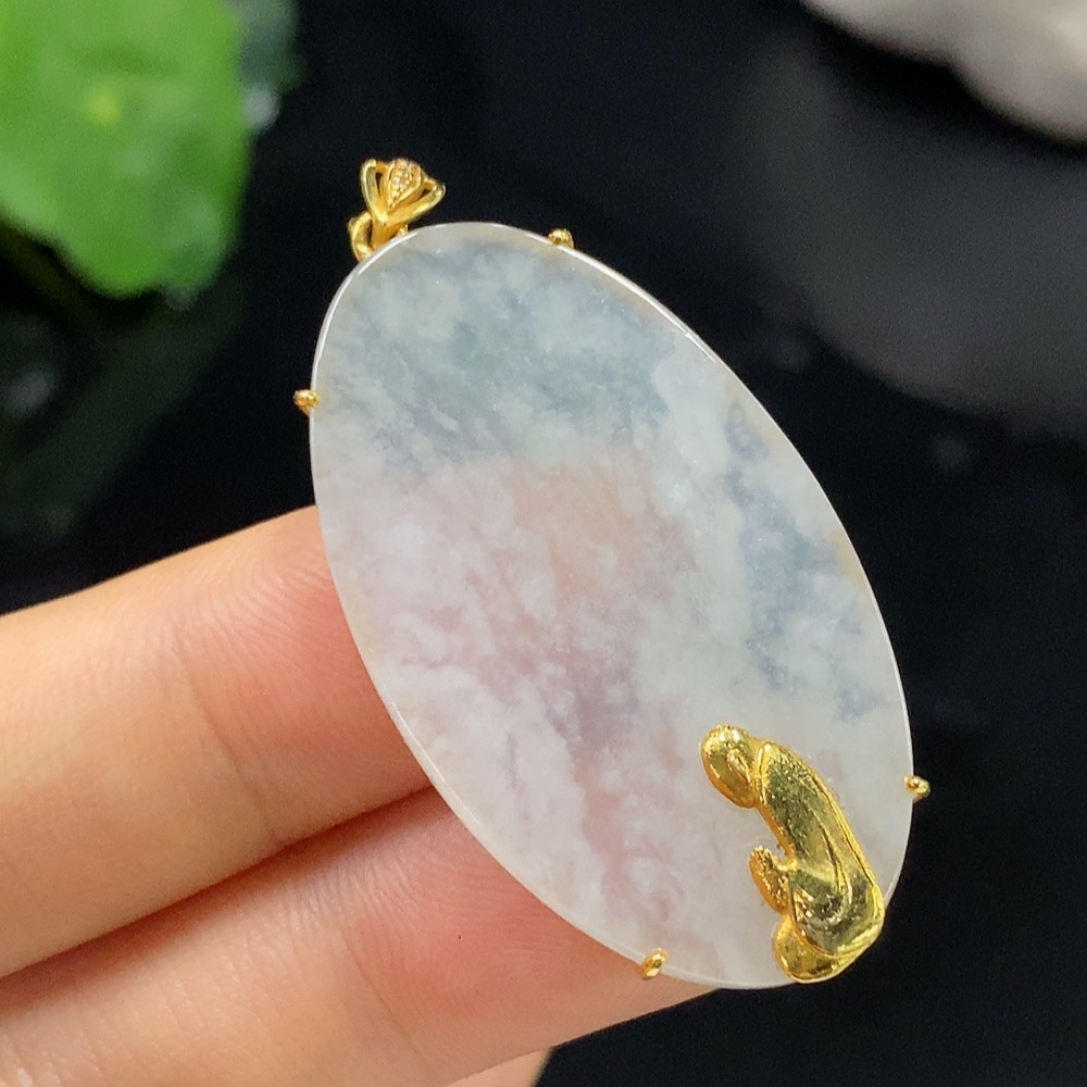 Jadeite Enlightenment Pendant 18K Gold Total Weight Approx. 6.1g