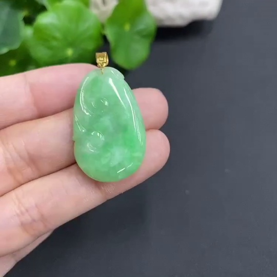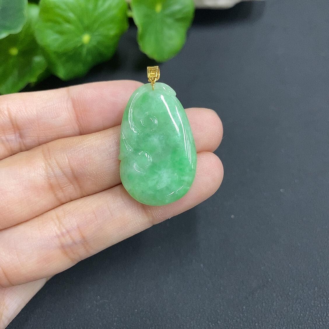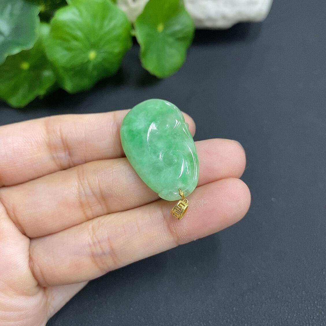 JadeiteRuyi Pendant with Crack and 18K Gold Clasp