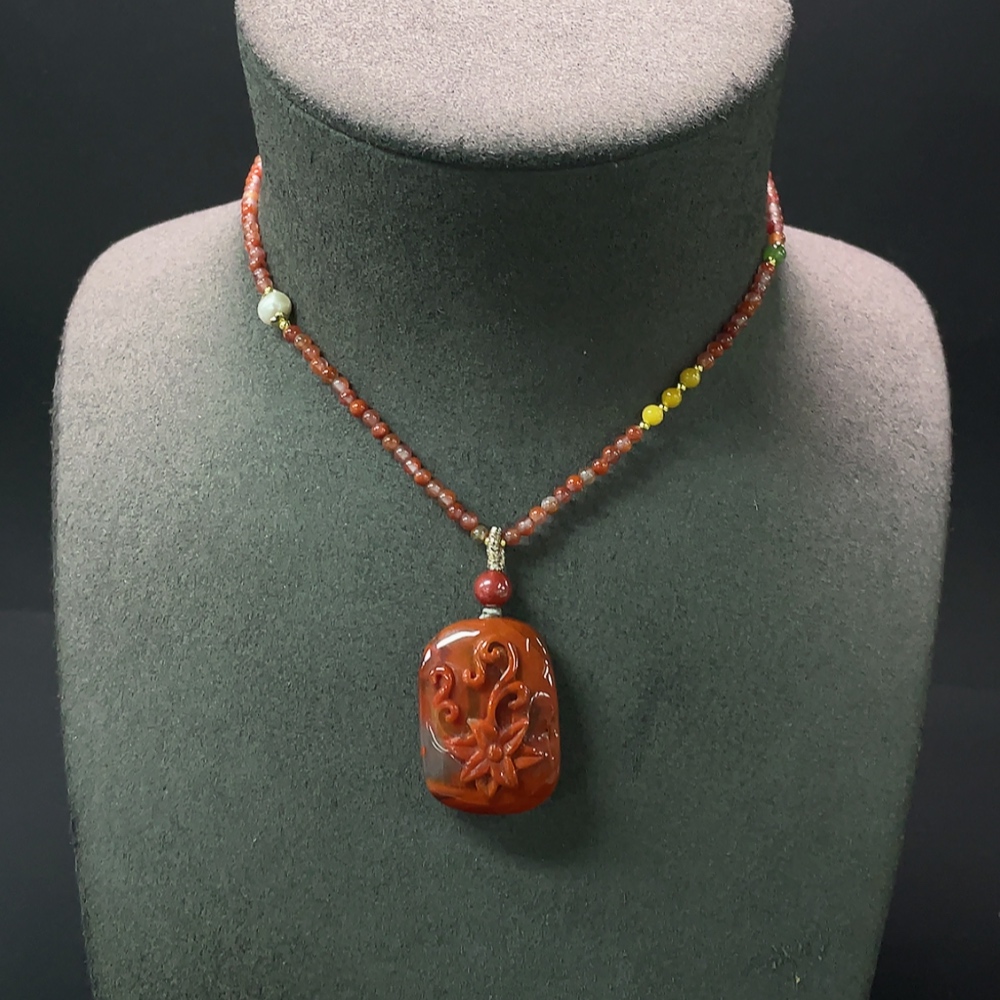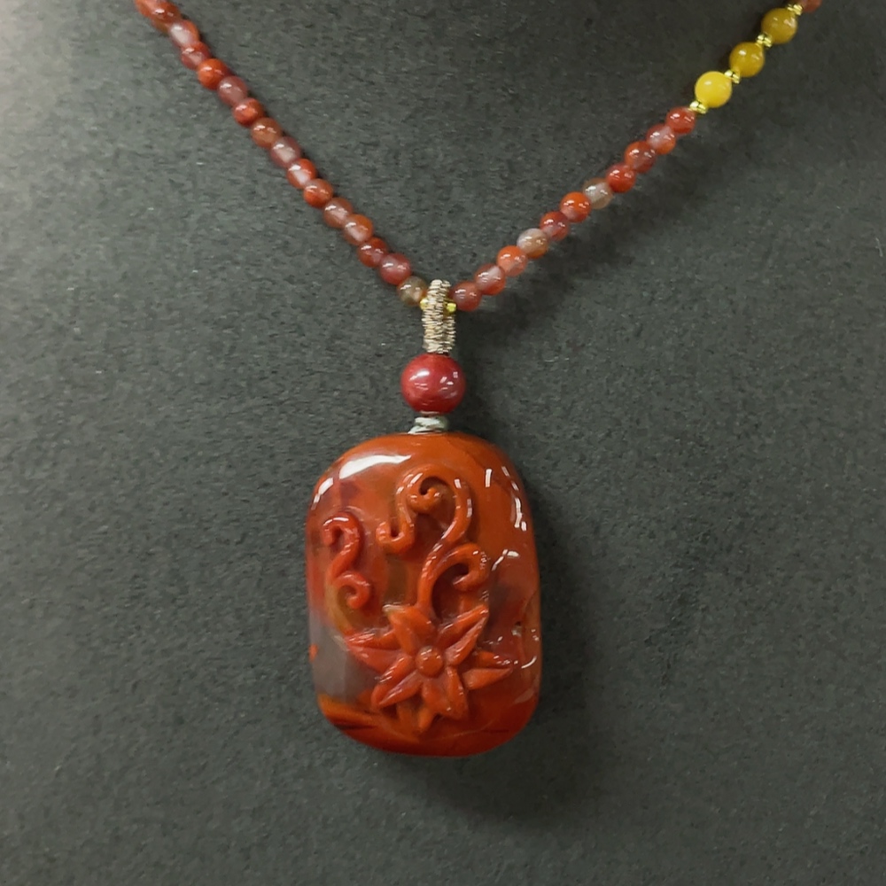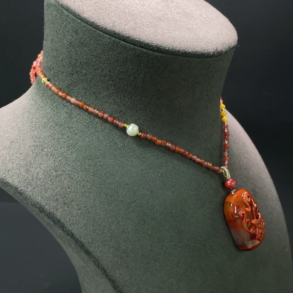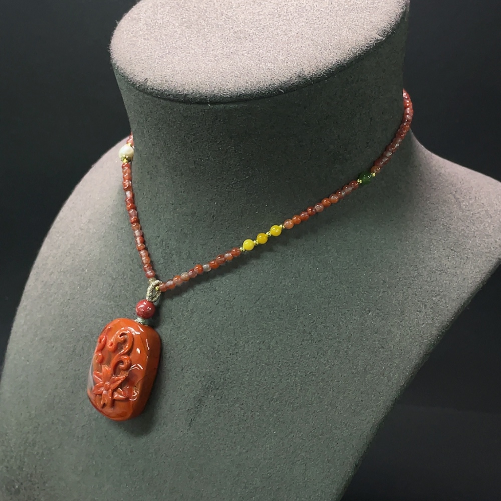 South Red Agate Pendant, Non-Gold Inlaid, Total Weight Approx. 22.3g