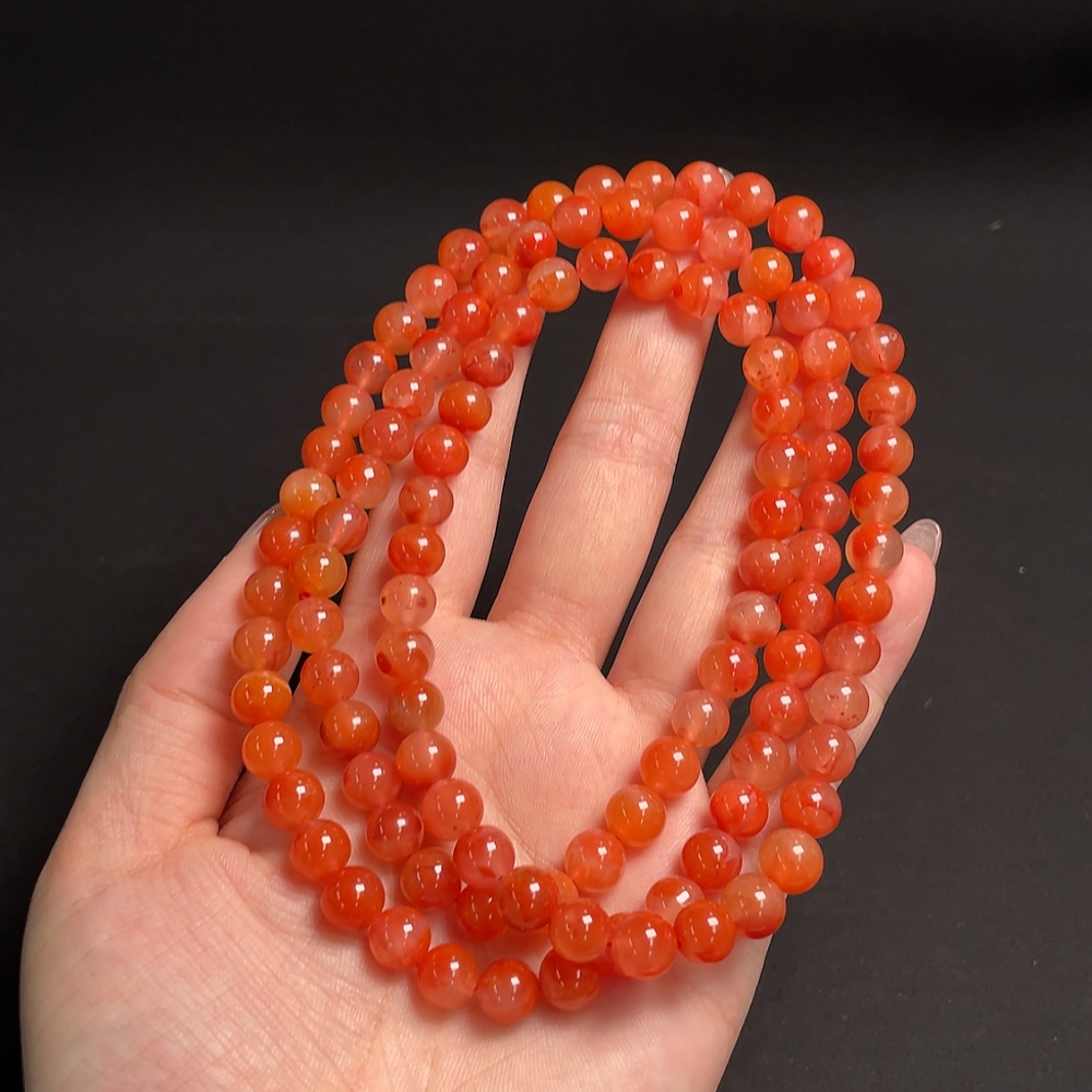 South Red Agate Bead Strand, Total Weight Approx. 66.11g, Bead Size About 7.4mm