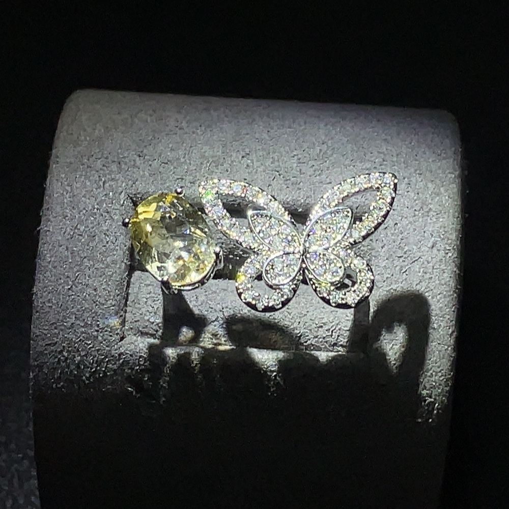 Crystal Ring Adjustable Non-Gold Inlaid Total Weight Approx. 3.16g