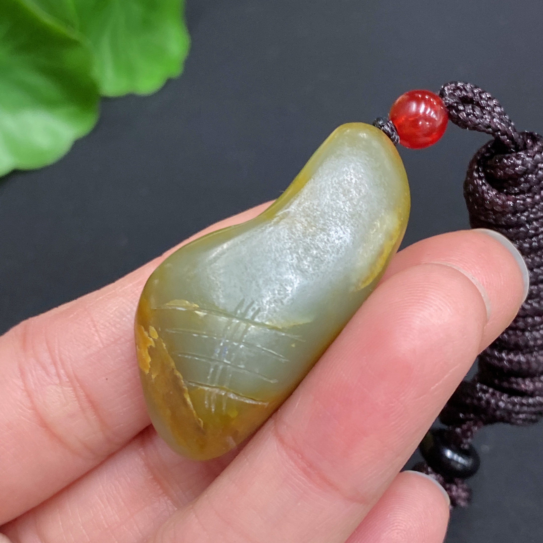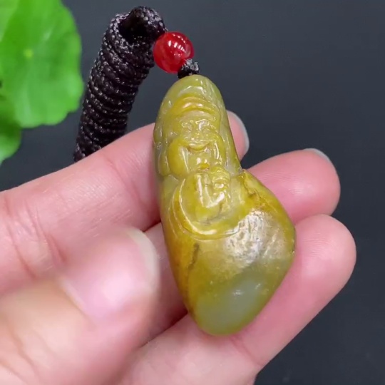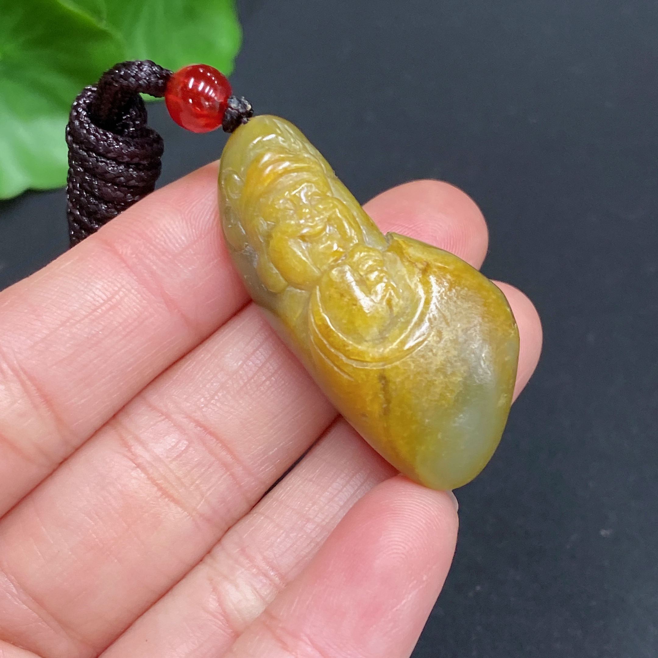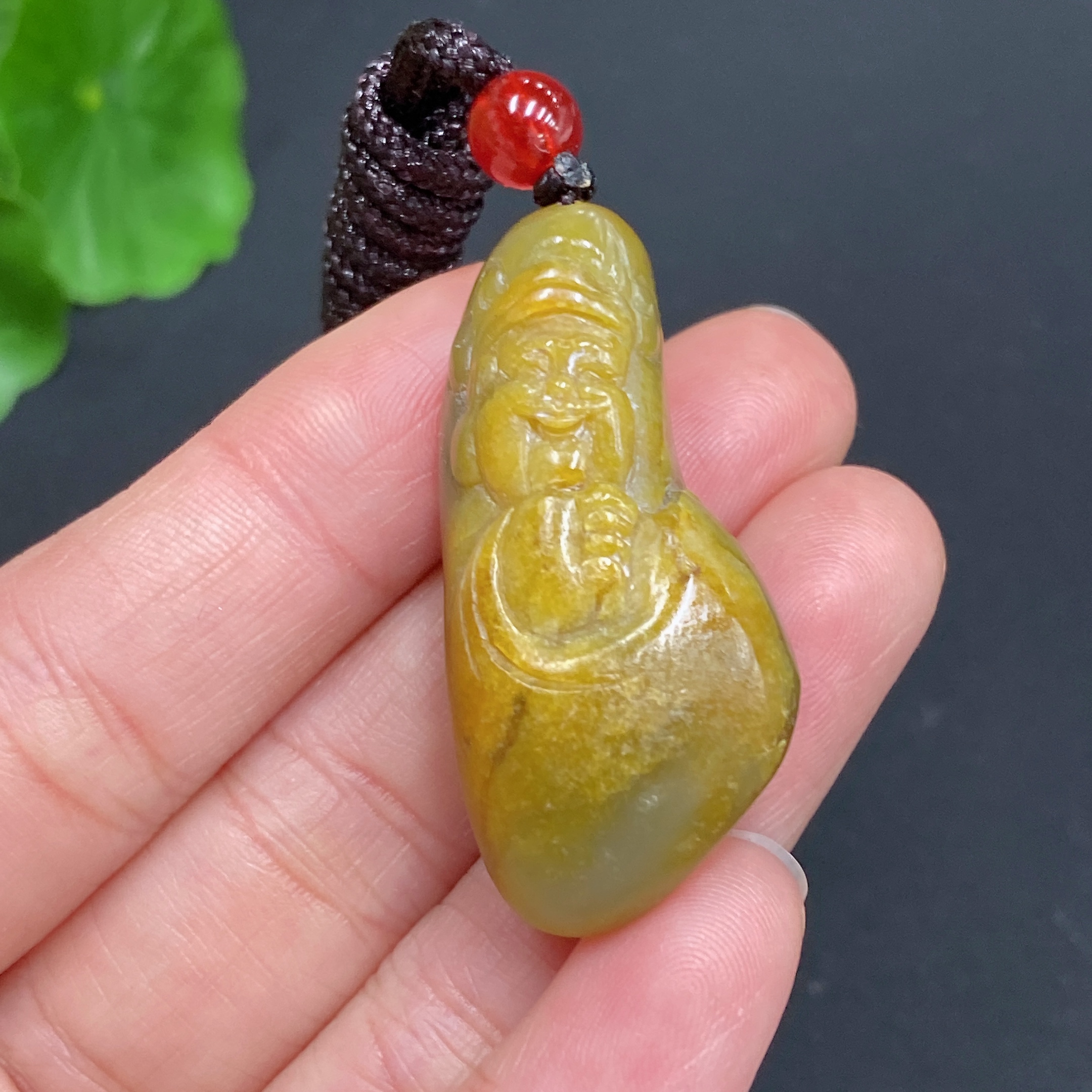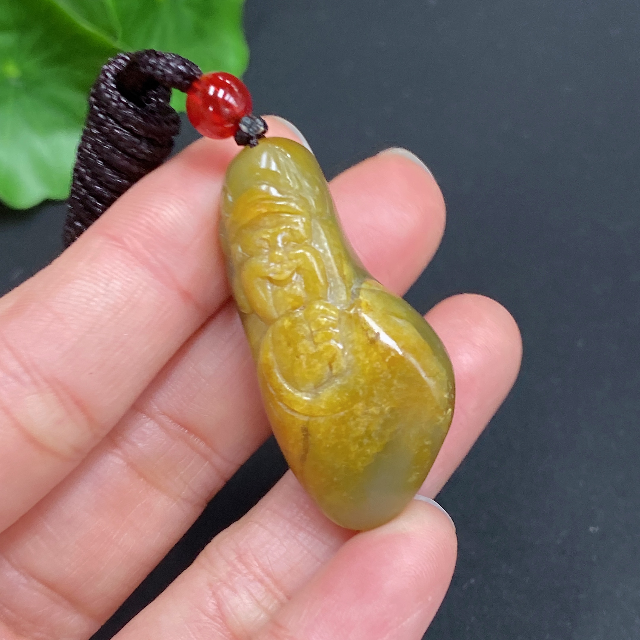 Hetian Jade Pendant - God of Wealth, Total Weight (including rope): 15.1g, Undetermined Skin Color Cause