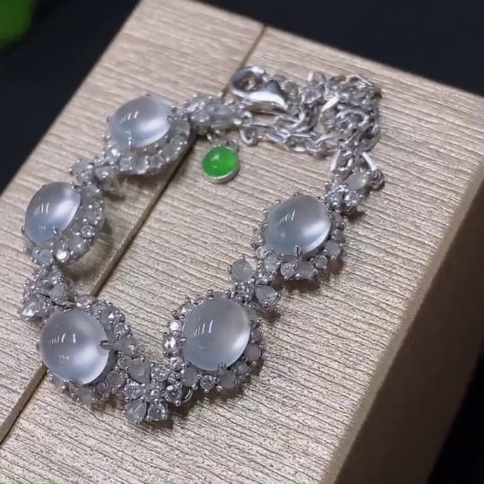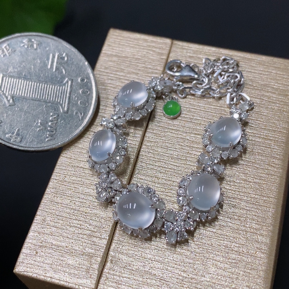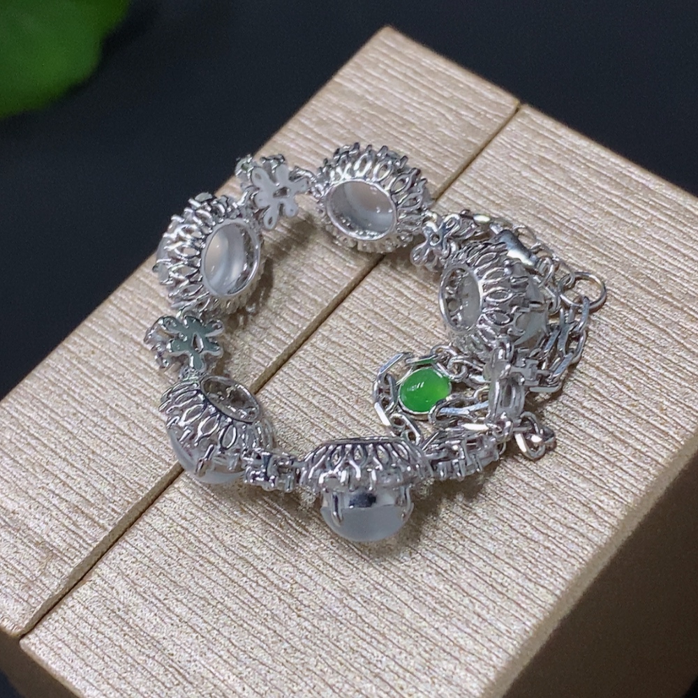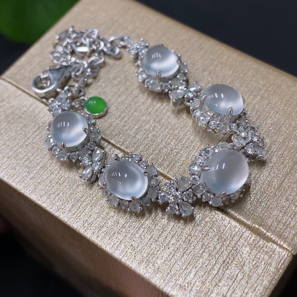 Jadeite Cabochon Bracelet, 18K Gold Setting, Total Weight Approx. 7.54g