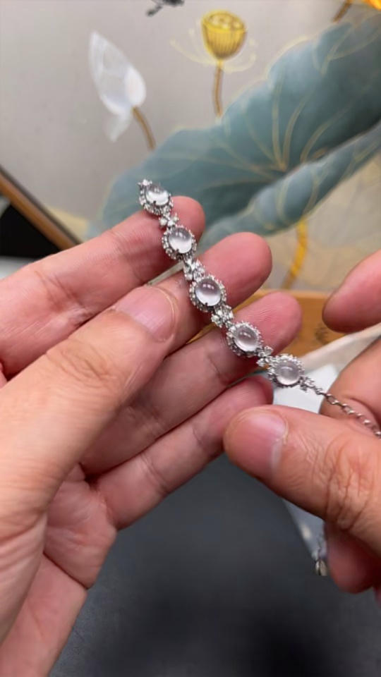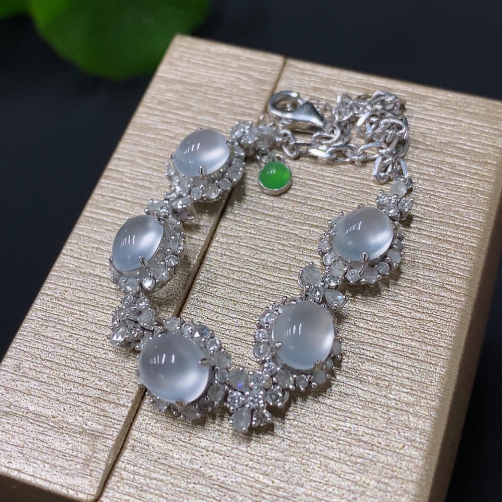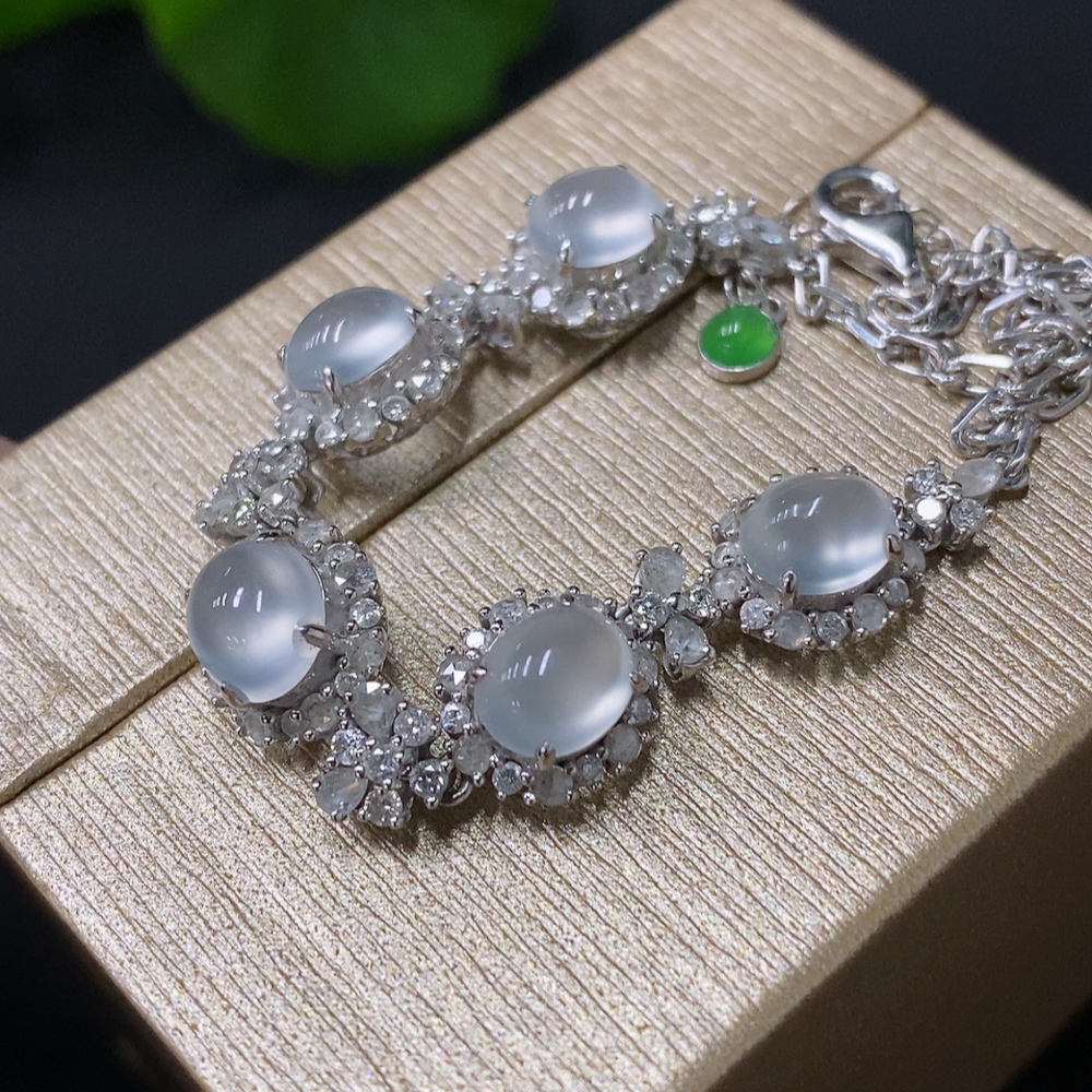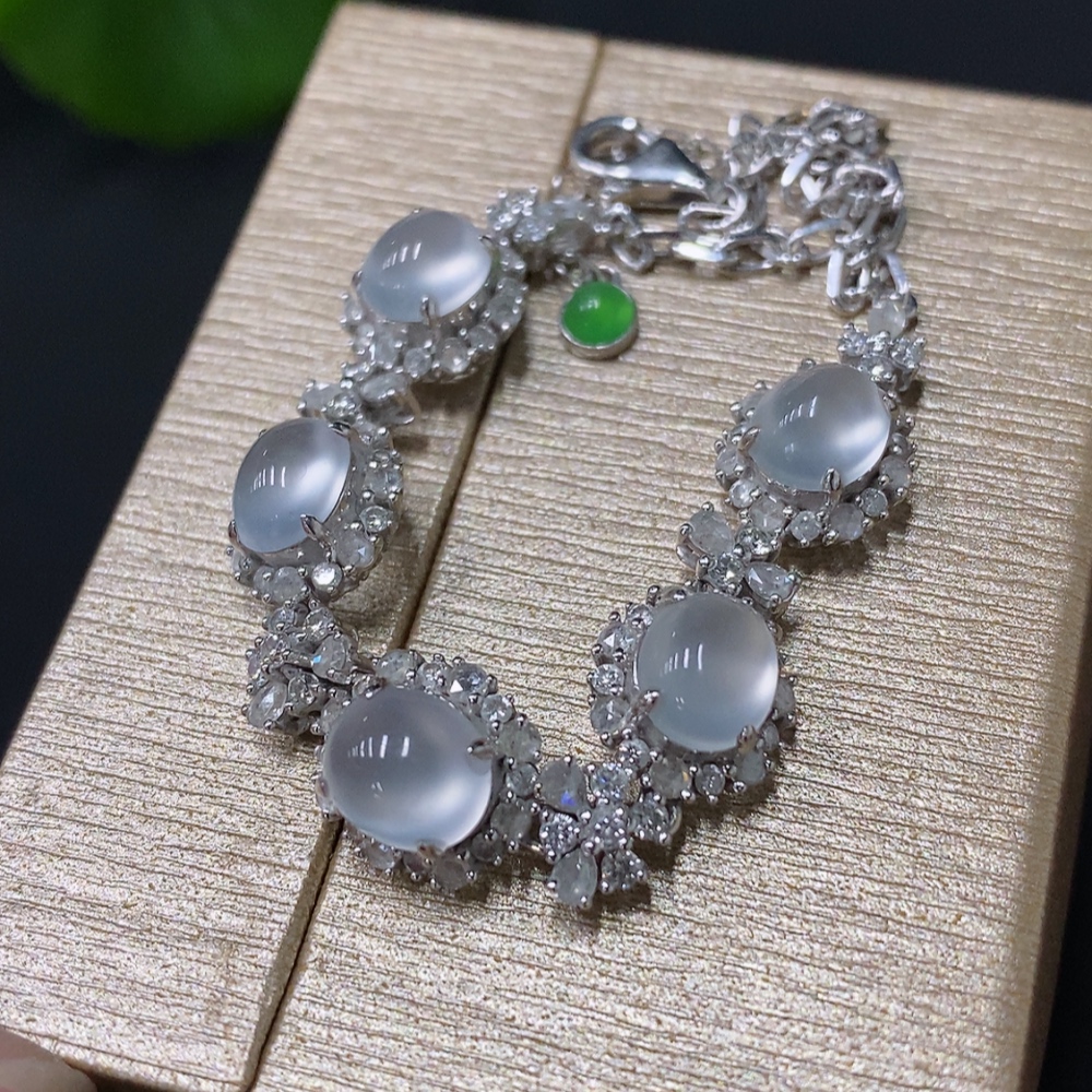 Jadeite Cabochon Bracelet, 18K Gold Setting, Total Weight Approx. 7.54g