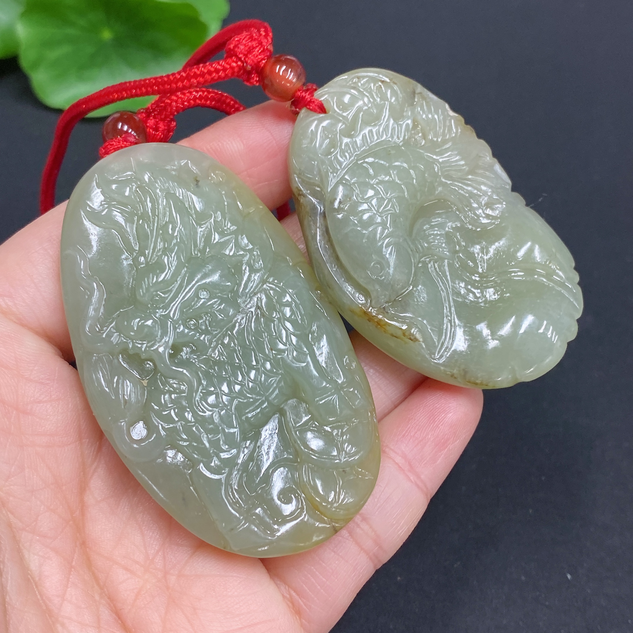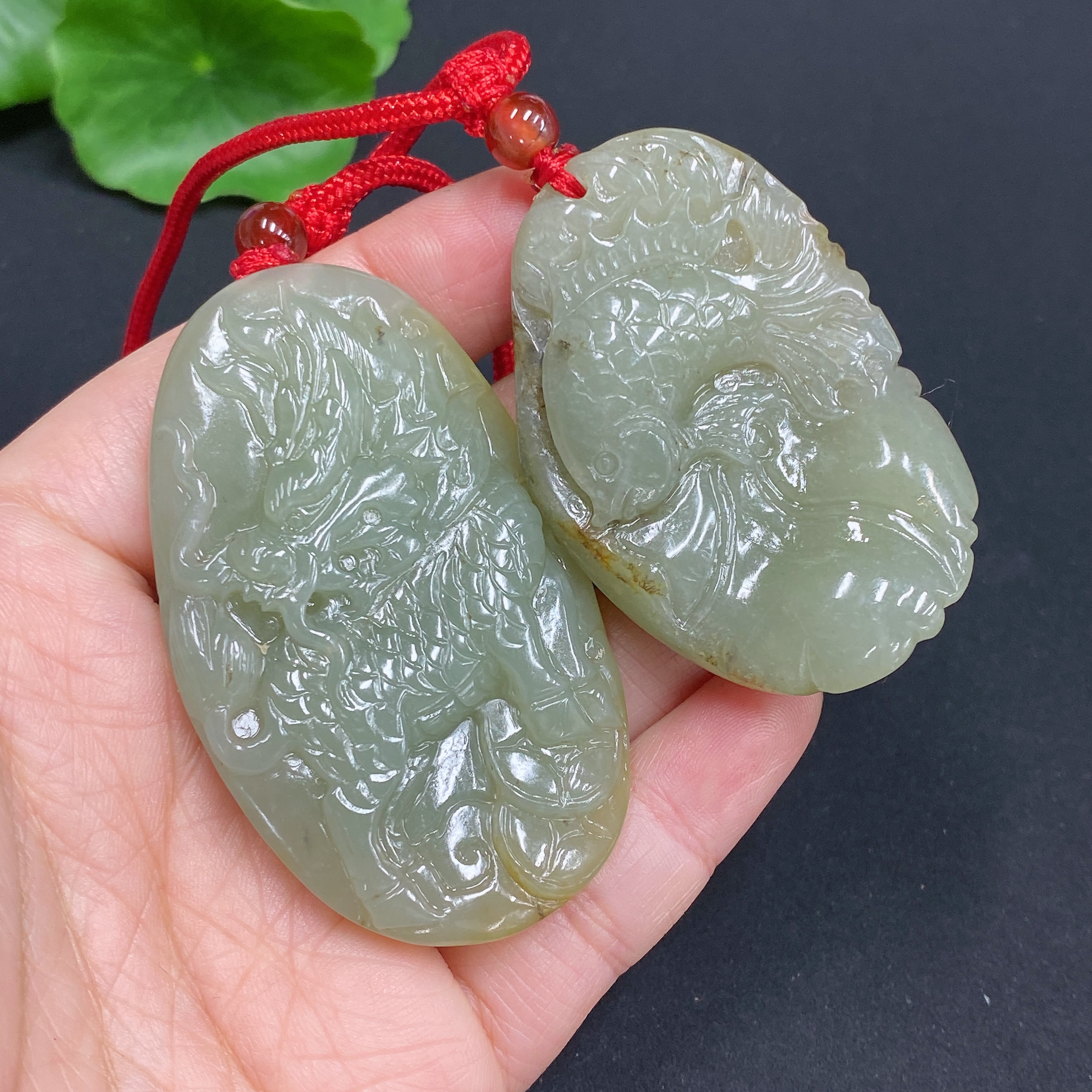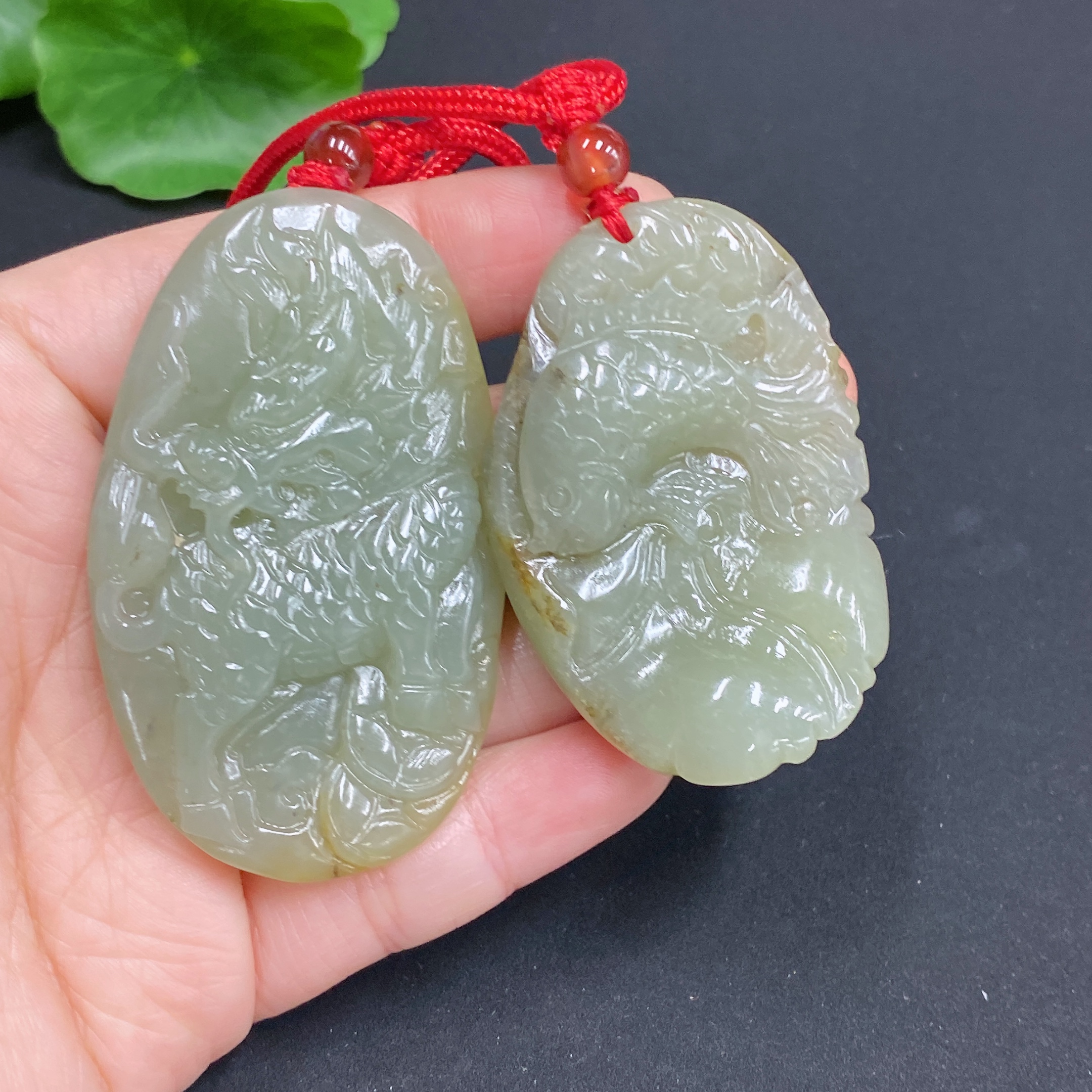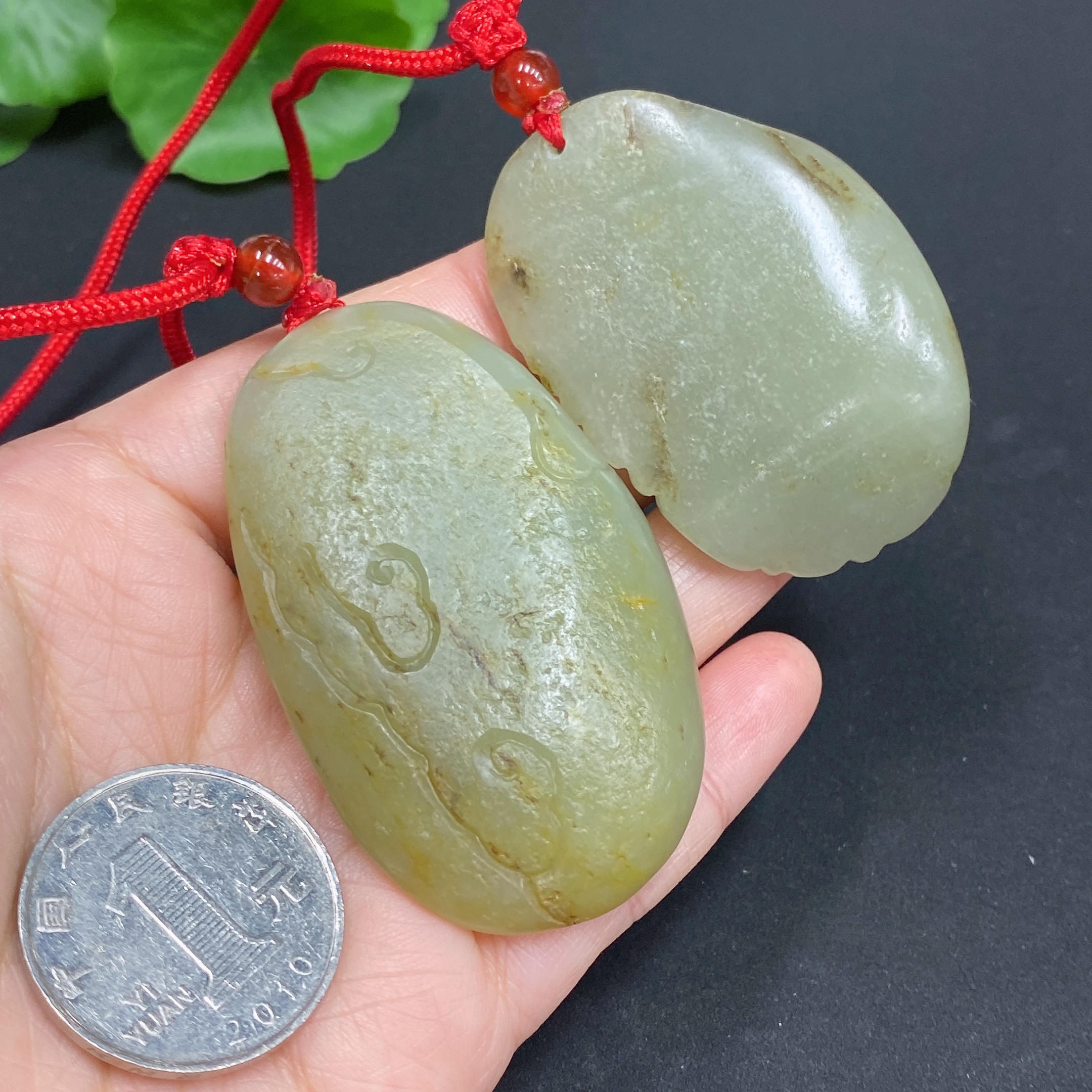 Hetian Jade Seed Material Pendant - Abundance Year After Year + Kylin, Undetermined Skin Color Cause, Total Weight Approx. (Including Rope) 66.8g