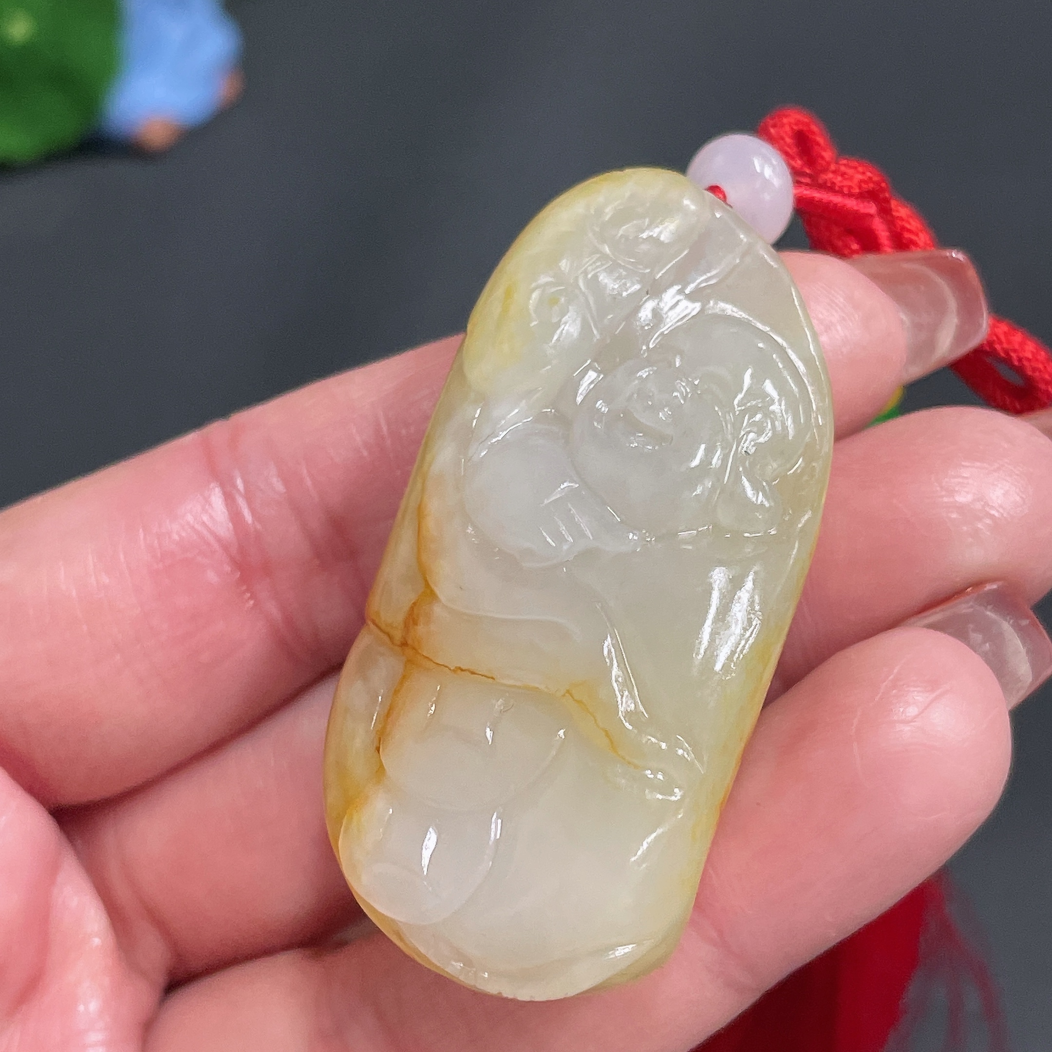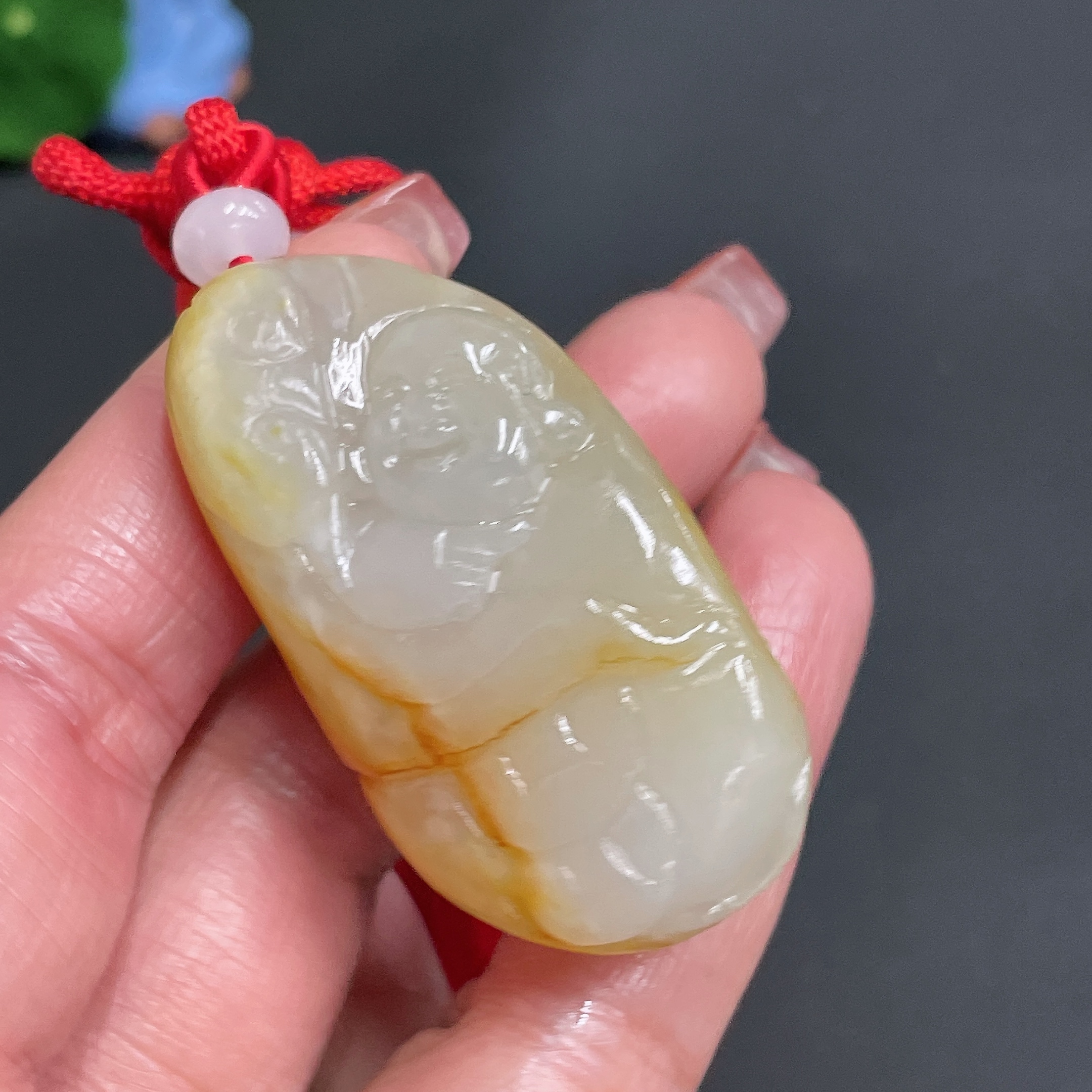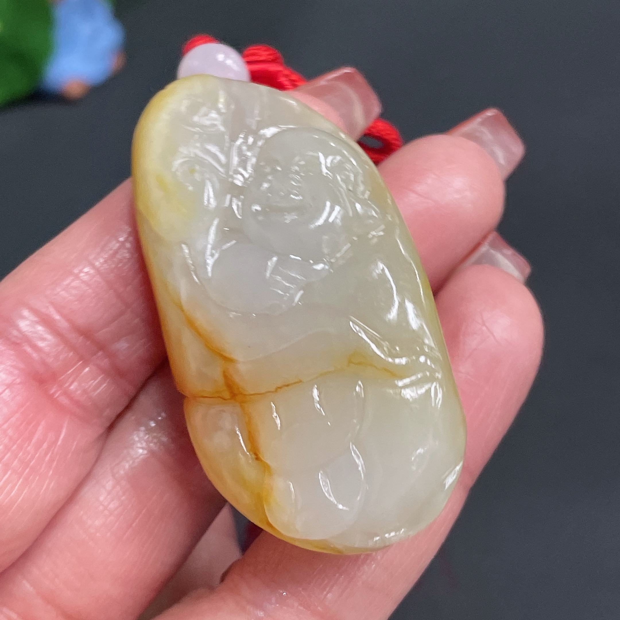 Hetian Jade Pendant - Buddha Figure - Undetermined Skin Color Origin - Non-Hetian Jade Beads - Total Weight Approx. [Including Rope] 47.8g