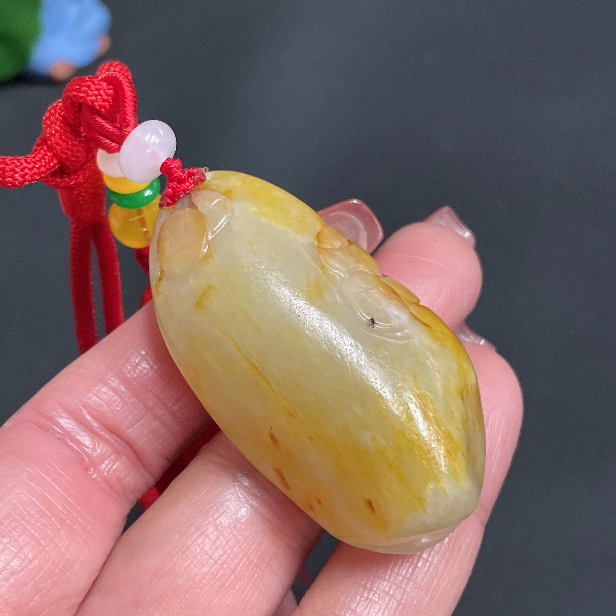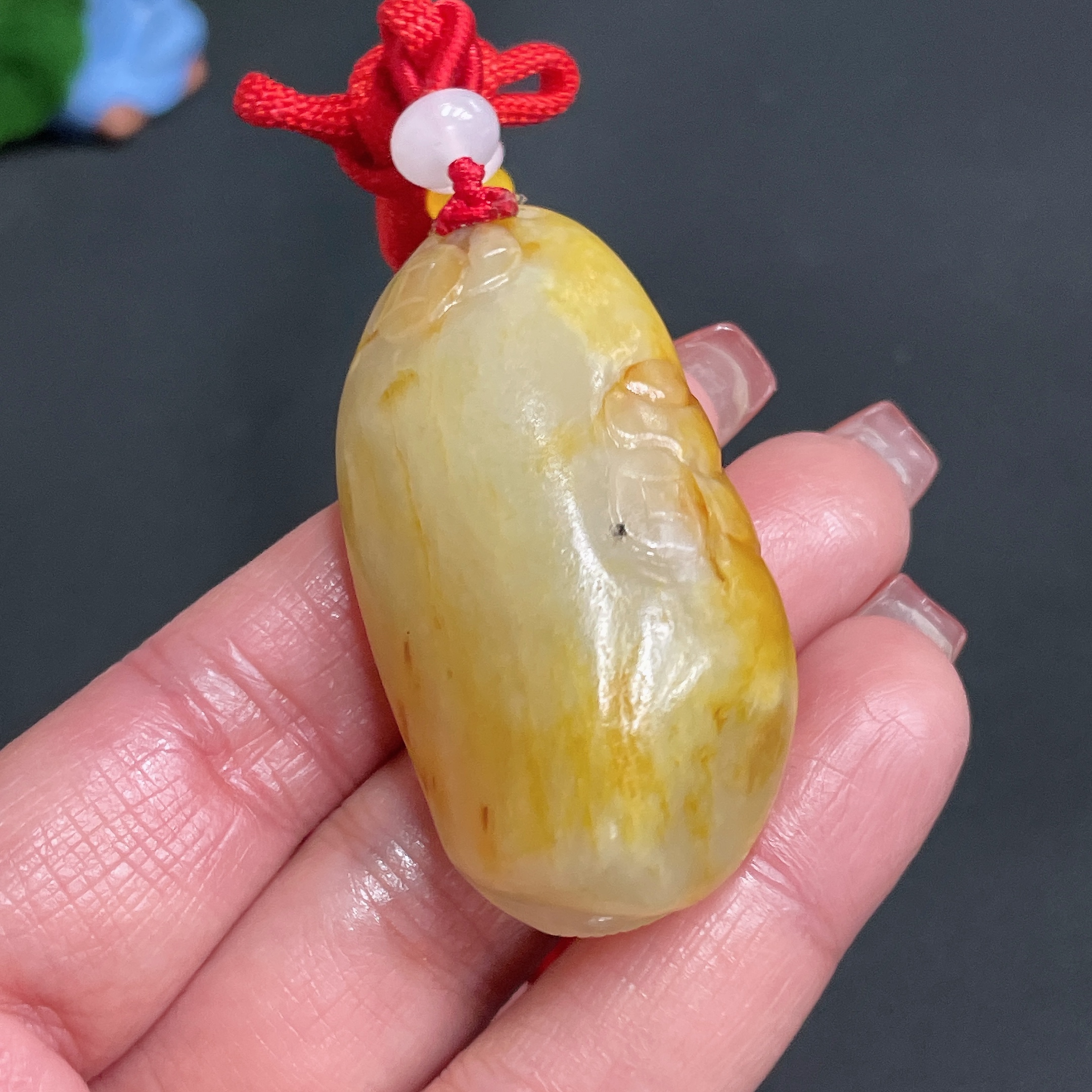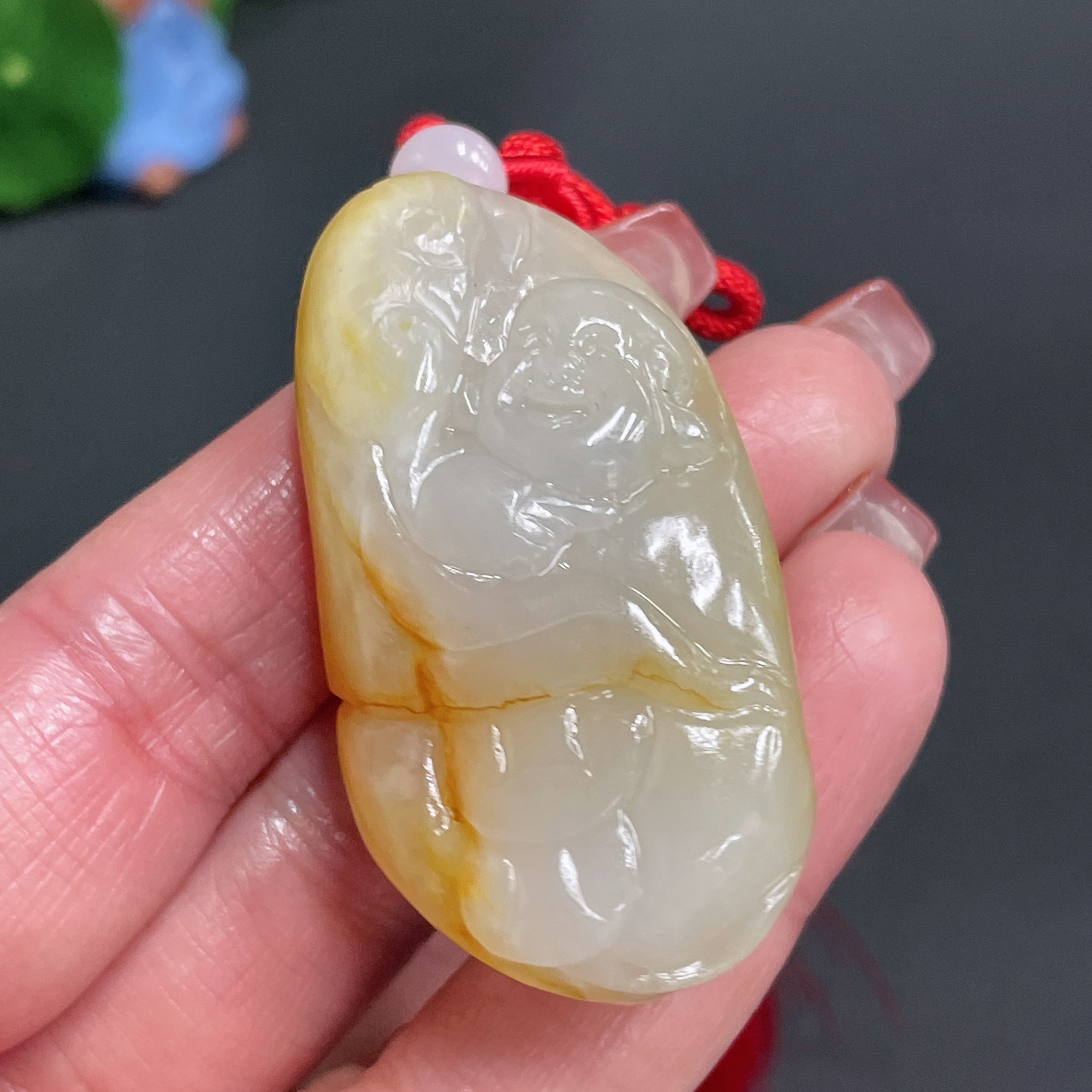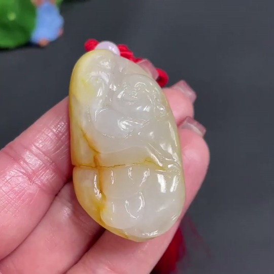 Hetian Jade Pendant - Buddha Figure - Undetermined Skin Color Origin - Non-Hetian Jade Beads - Total Weight Approx. [Including Rope] 47.8g