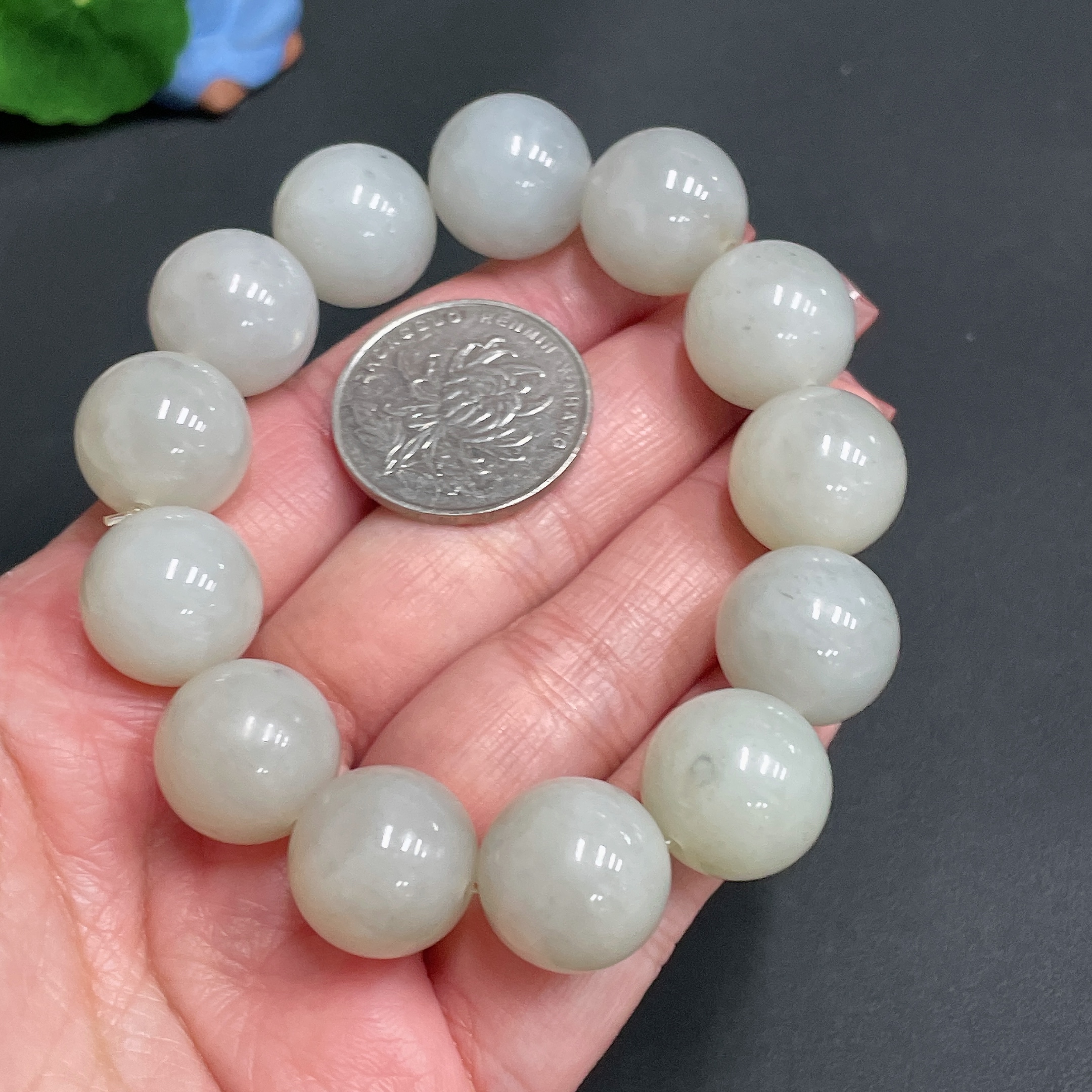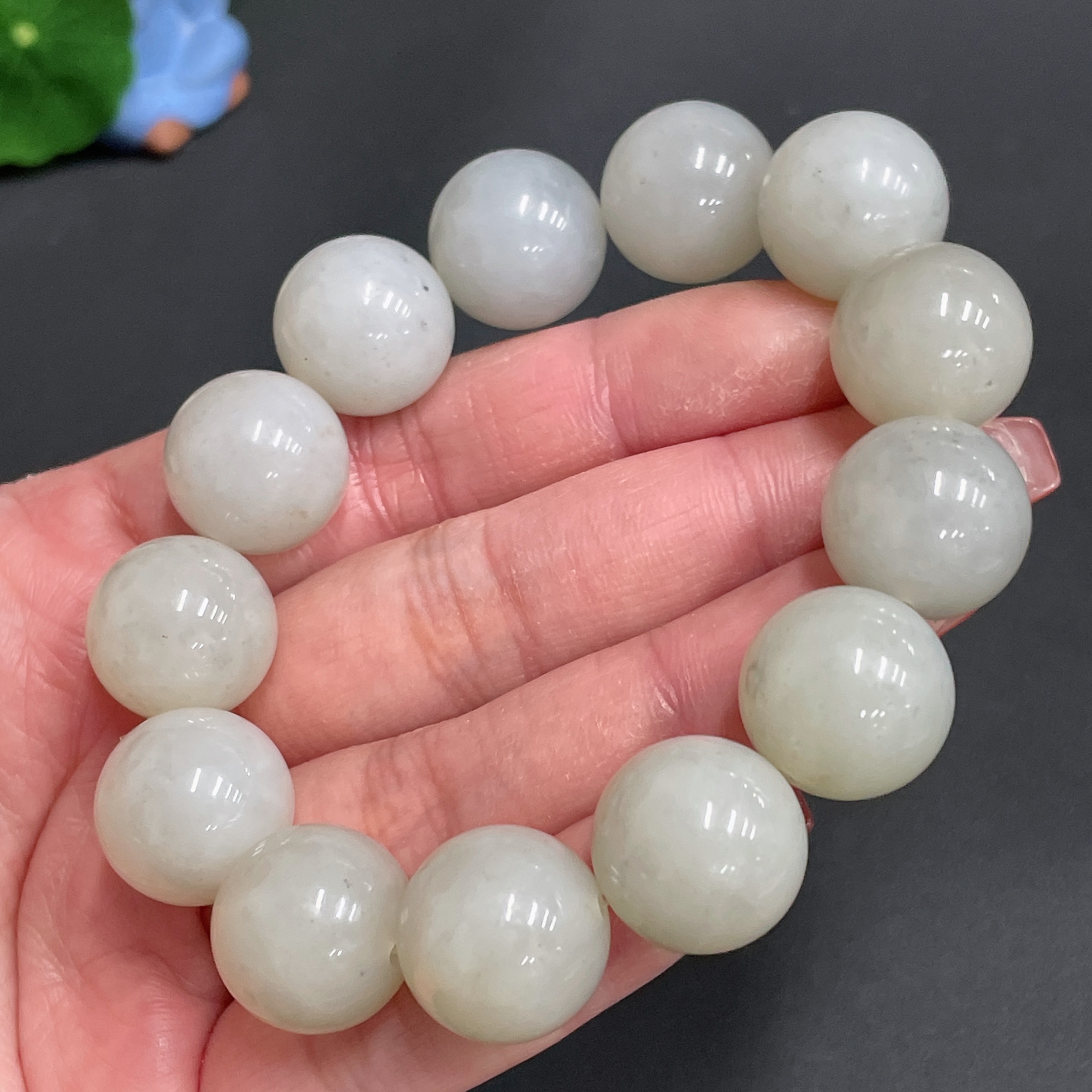 Hetian Jade Bracelet Approx. 15.9 mm Beads Total Weight Approx. 82.9g