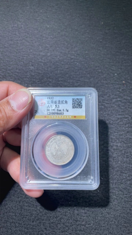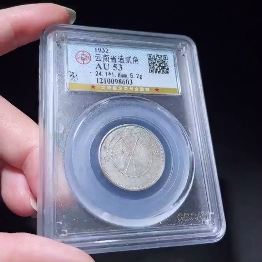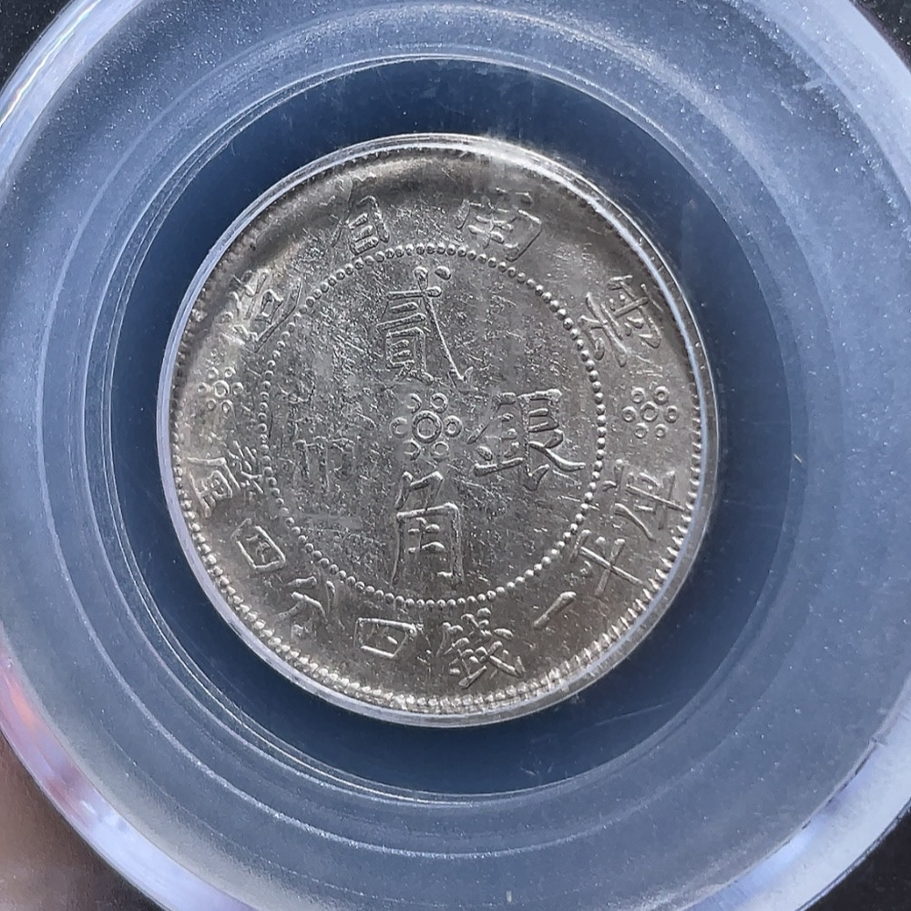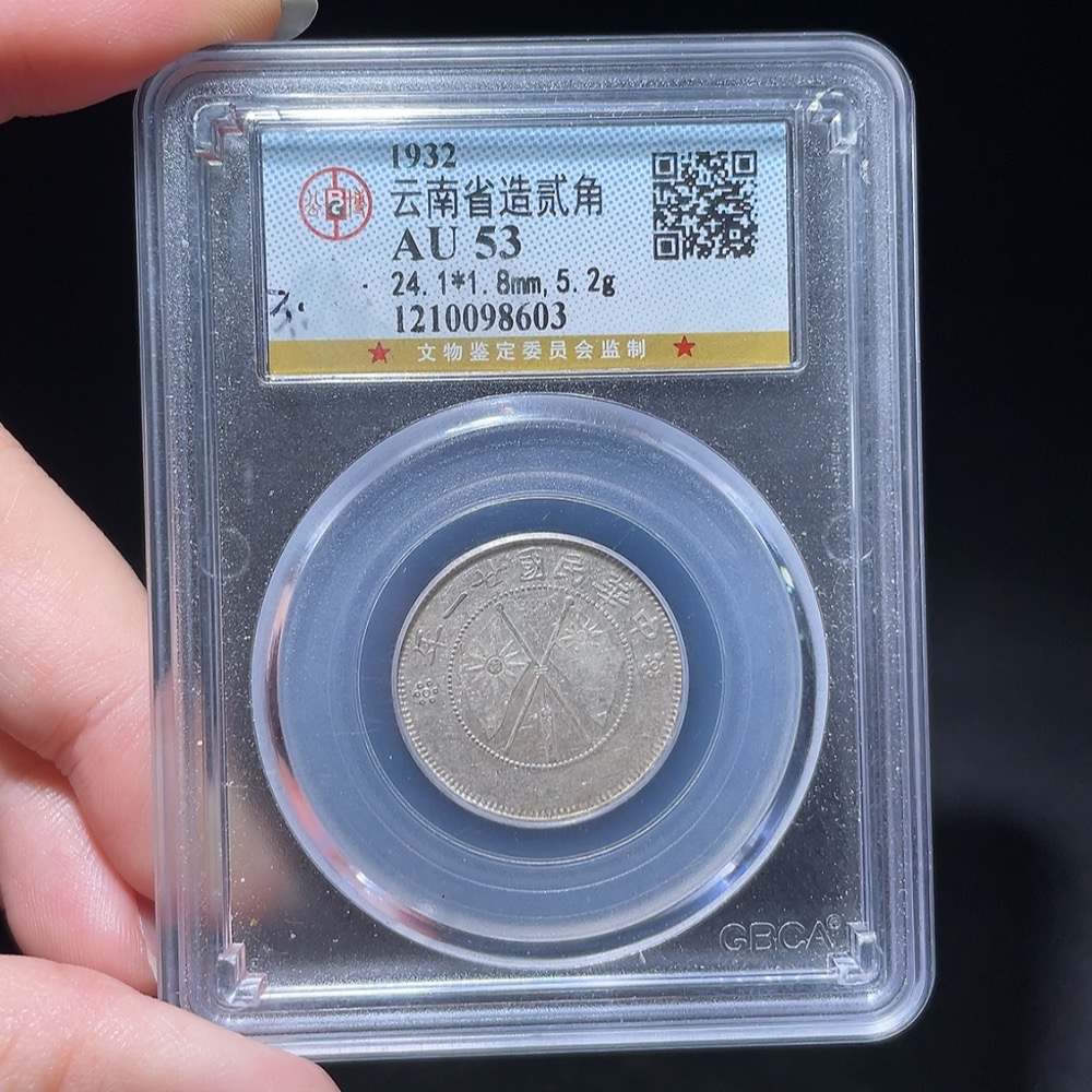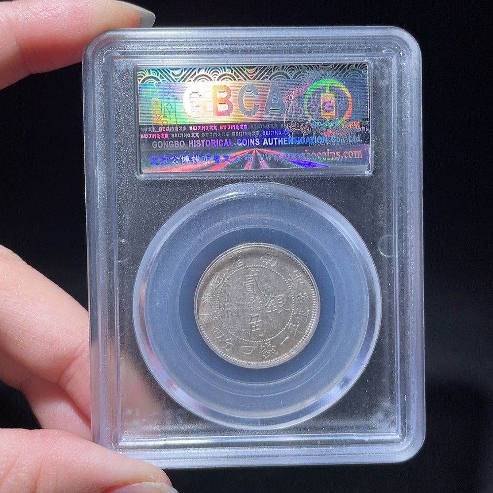 Silver Coin Yunnan Double Flag 20 Cents Silver Coin, GBCA AU53, with Original Luster and Sharp Strike