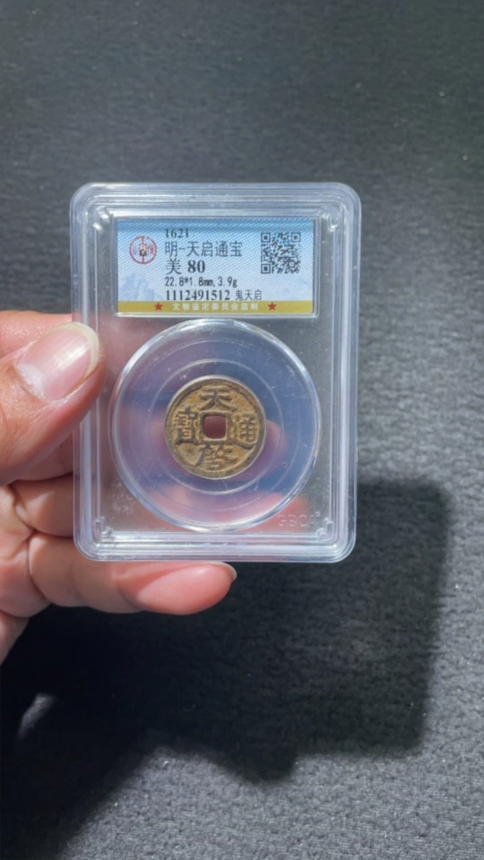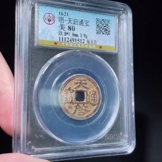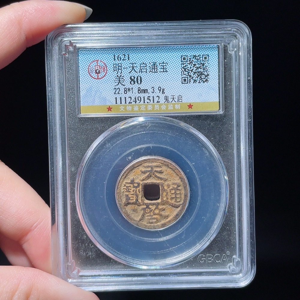 Ancient Coin, Ming Coin, Tianqi Tongbao, Ghost Tianqi, GBCA Graded 80 Points