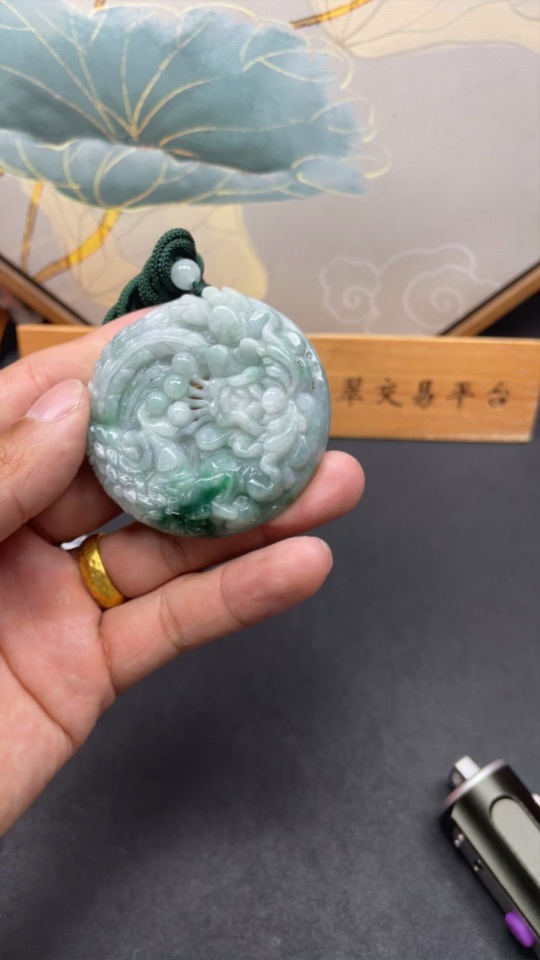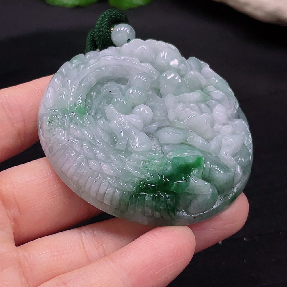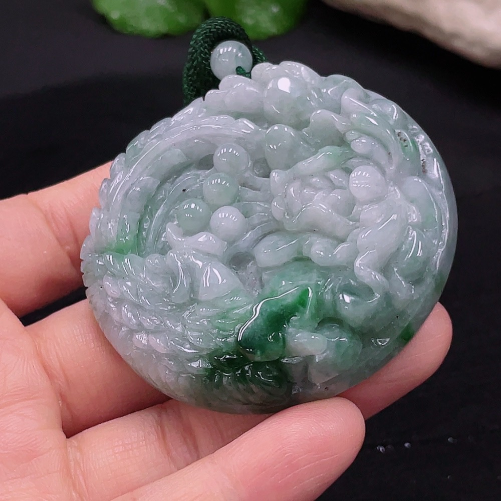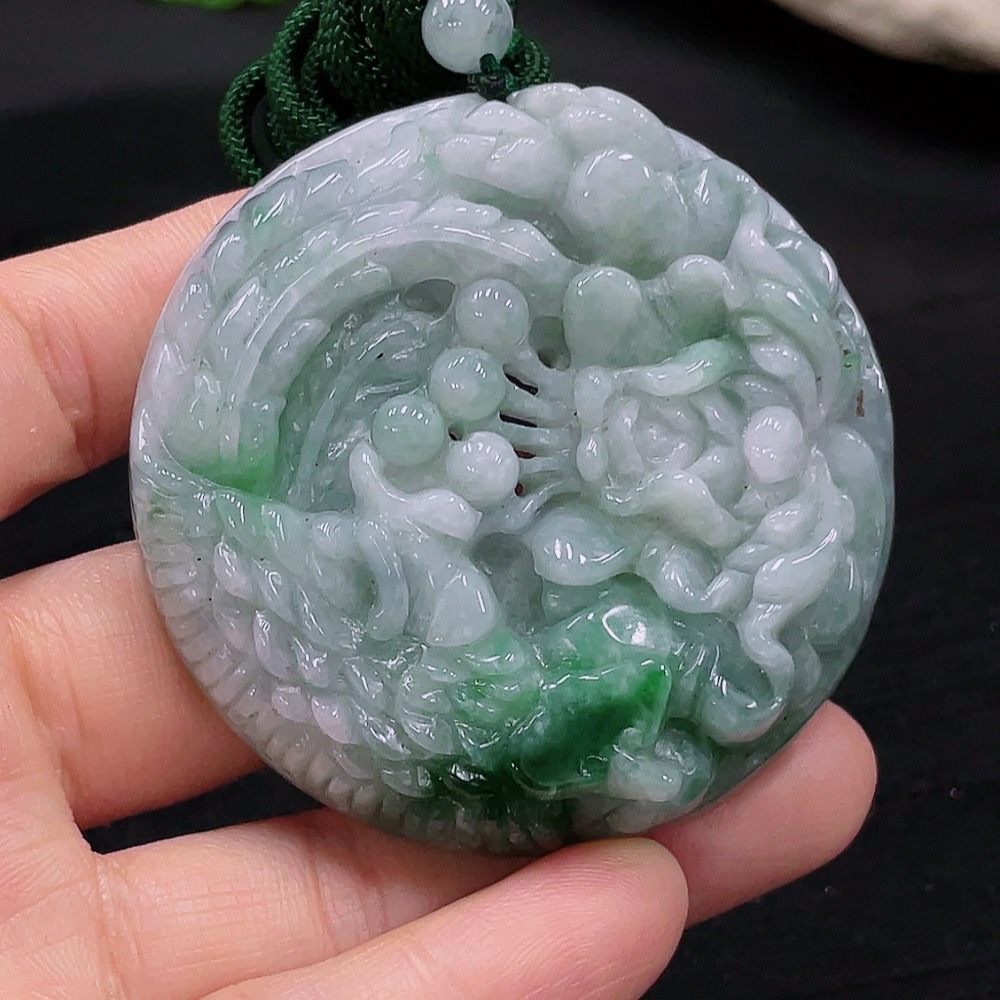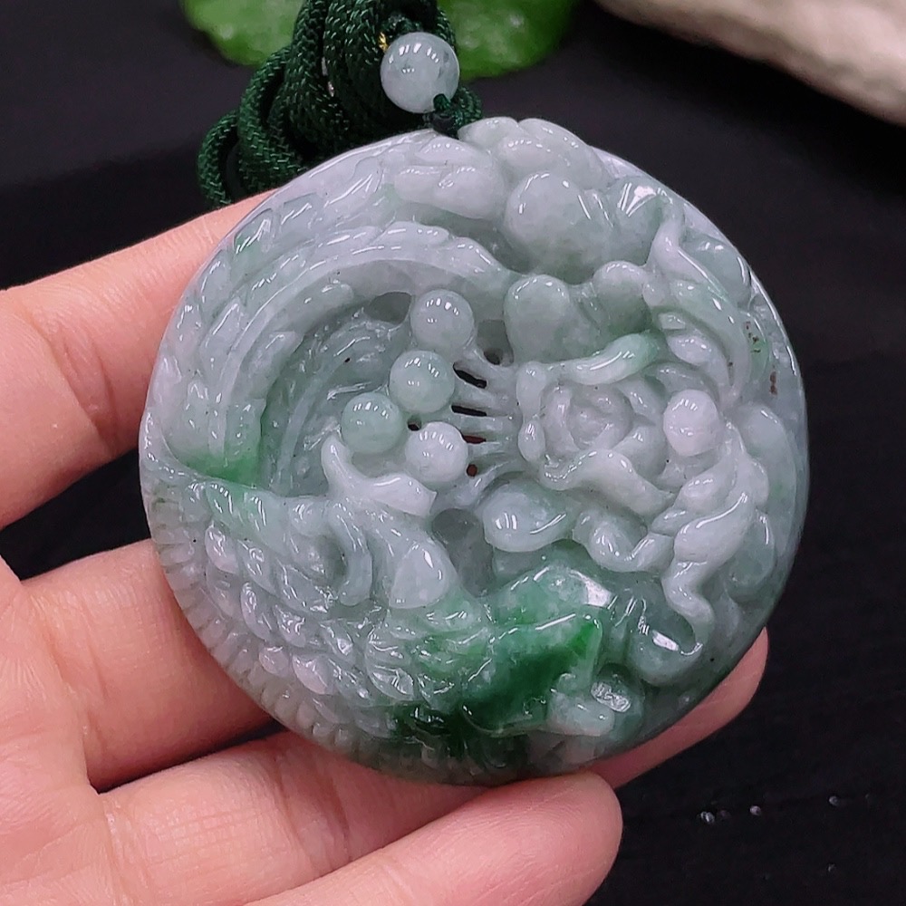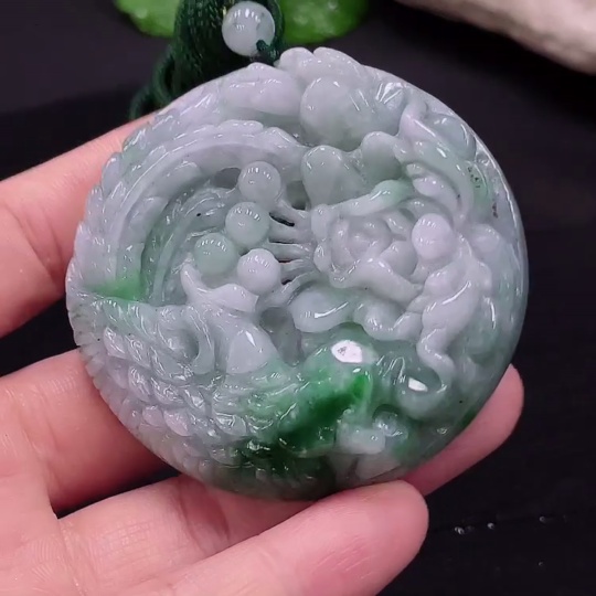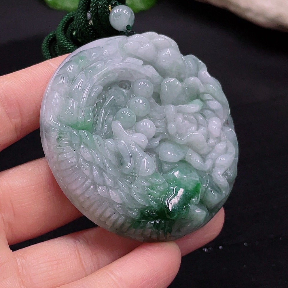 Trezaar - Jadeite Phoenix Among Peonies Pendant