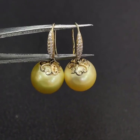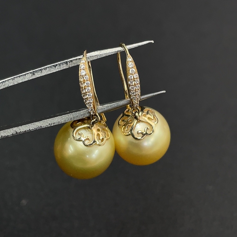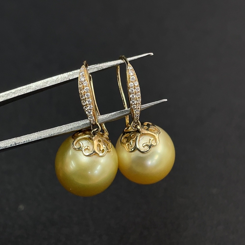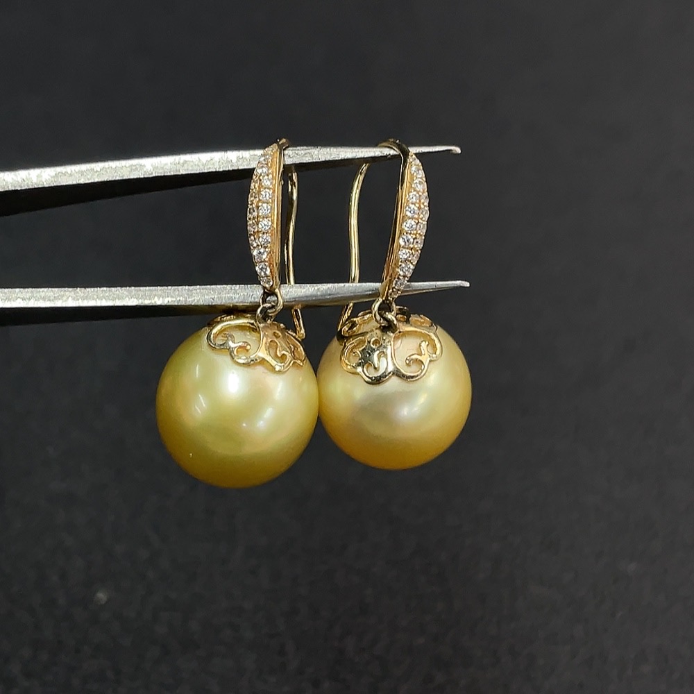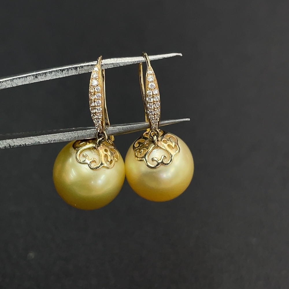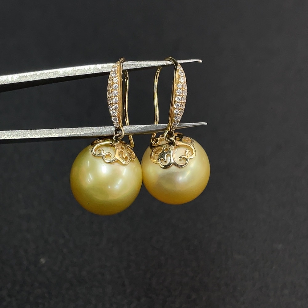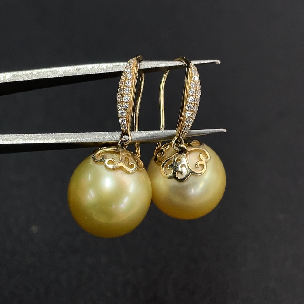 Seawater Pearl Earrings, Color Origin Undetermined, Gold Content 58%, Total Weight Approx. 6.34g, Size Approx. 11.8mm