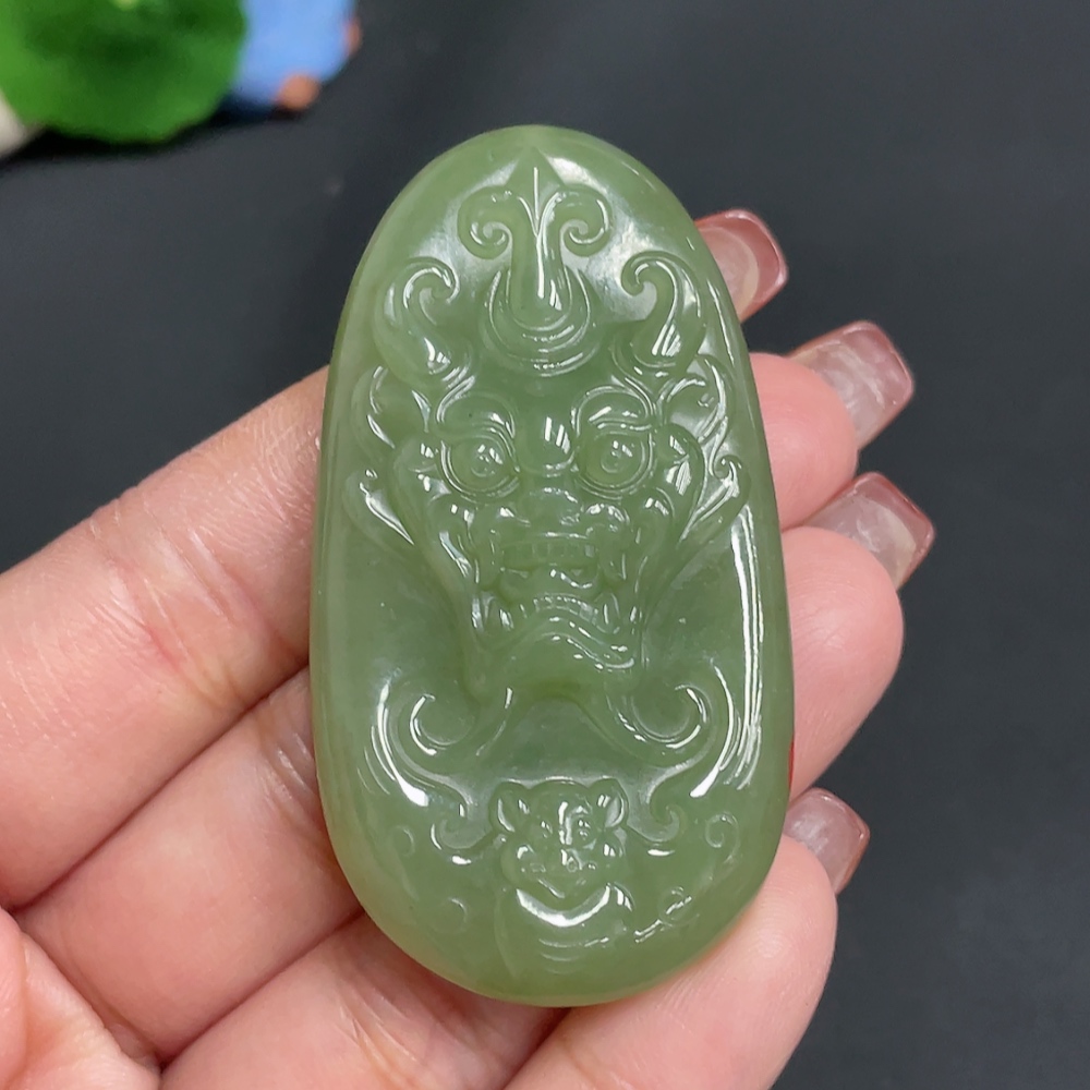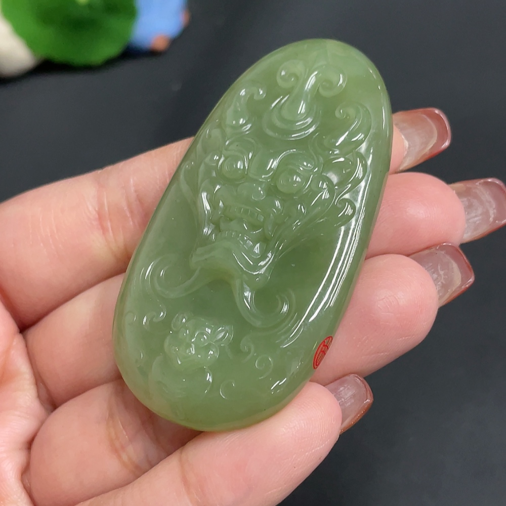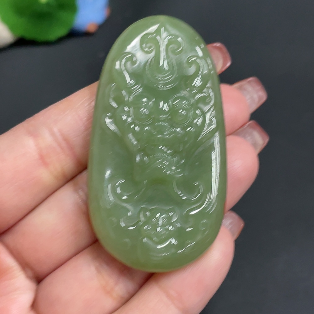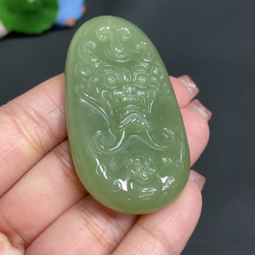 Hetian Jade Pendant Auspicious Beast Total Weight Approx. 35.8g