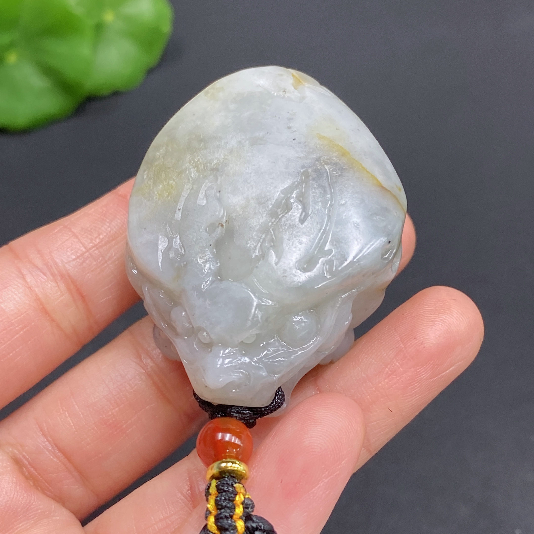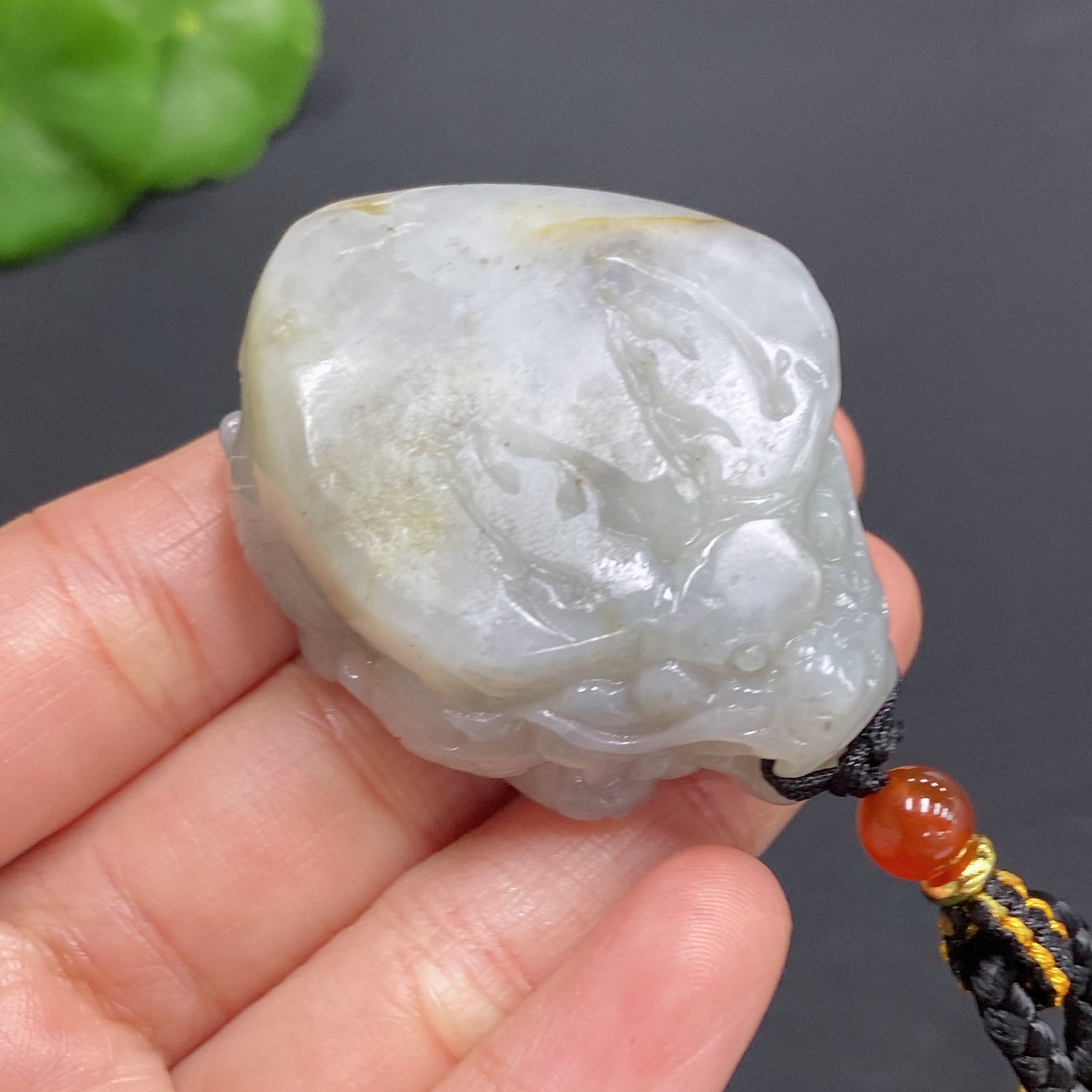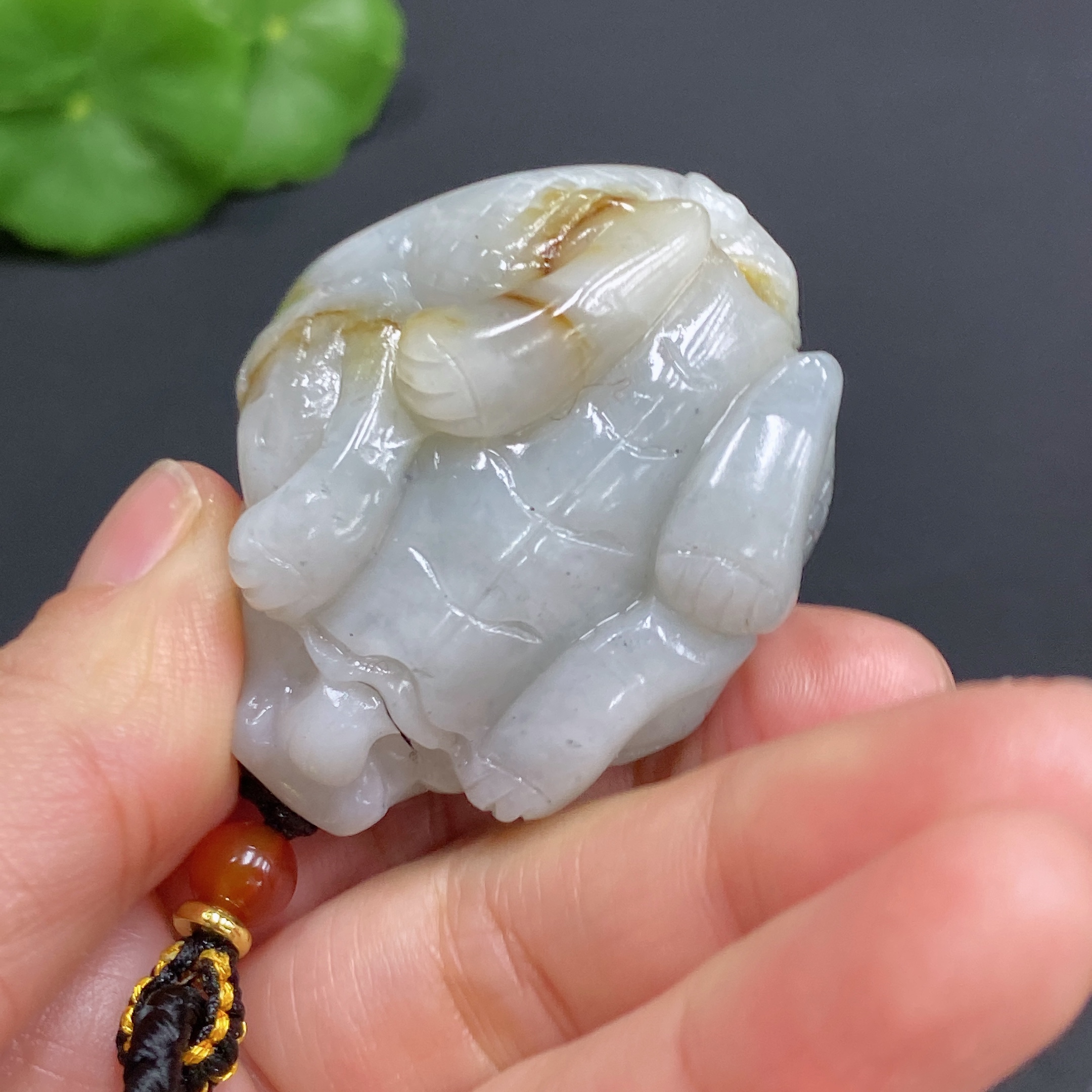 Hetian Jade Handheld Piece, Dragon Turtle, Total Weight (including rope): 52.8g, Undetermined Skin Color Origin