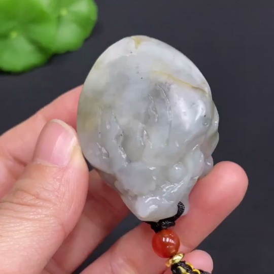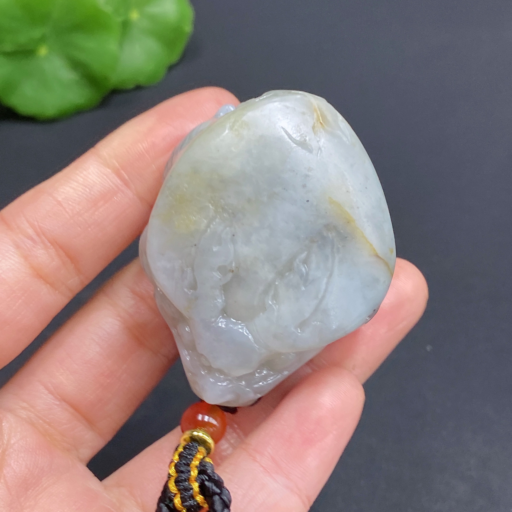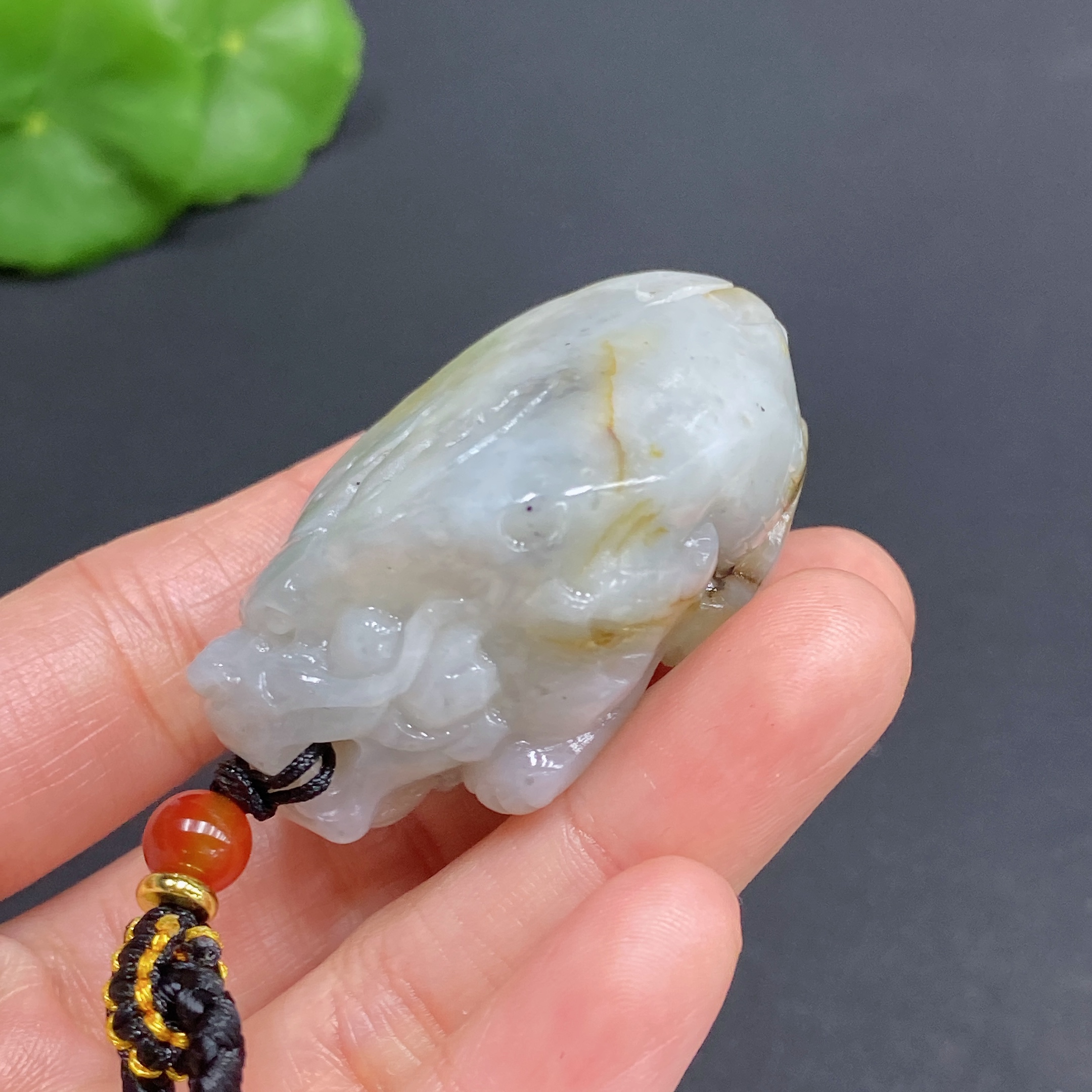 Hetian Jade Handheld Piece, Dragon Turtle, Total Weight (including rope): 52.8g, Undetermined Skin Color Origin
