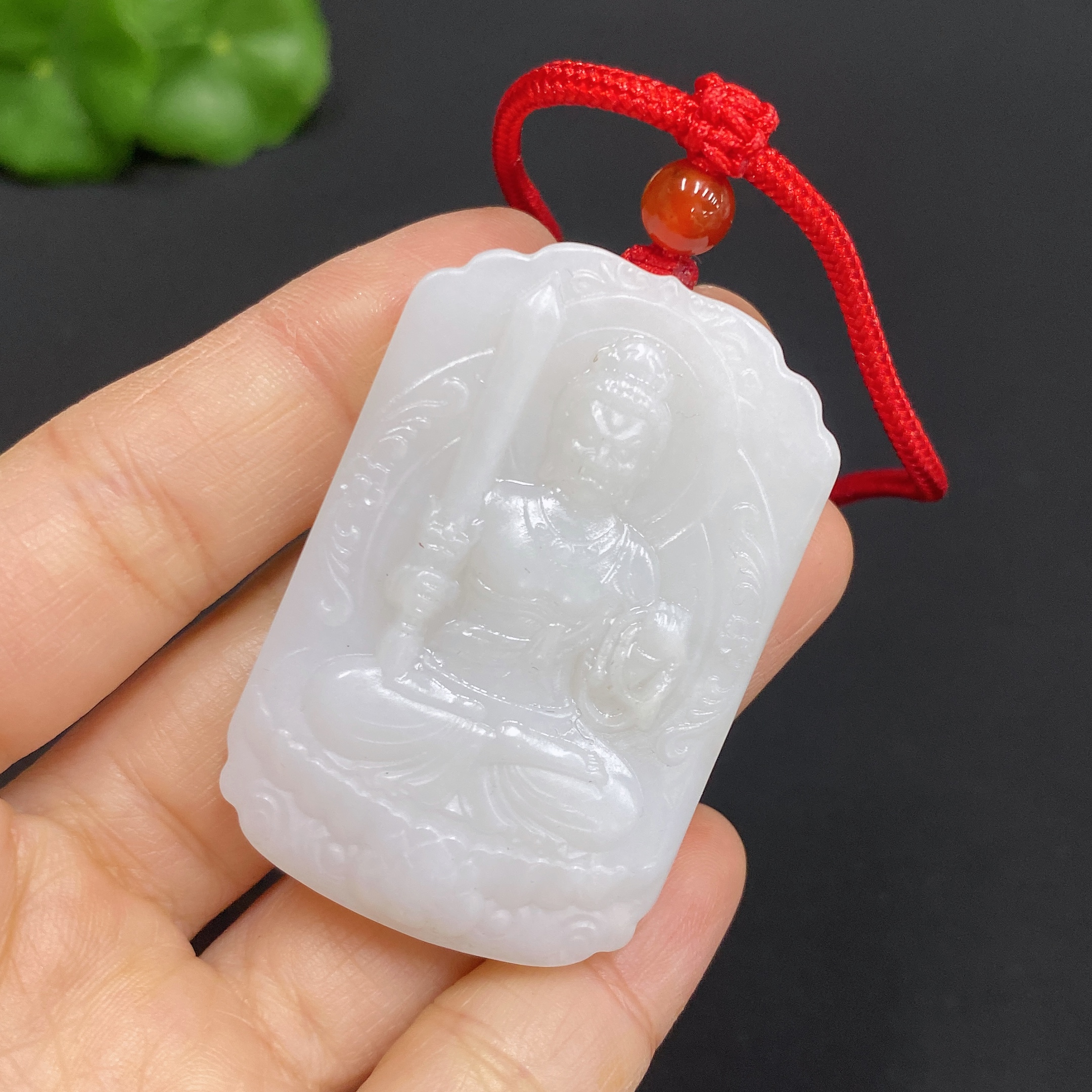 Hetian Jade Pendant - Fudō Myōō, Total Weight (including rope): 36.9g