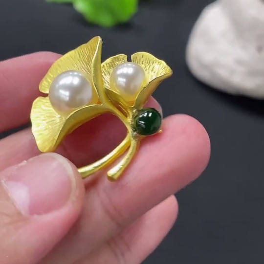 Jadeite Cabochon Inlaid Brooch Non-Gold Setting Total Weight Approx.6.11g Non-Natural Accent Stones Considered